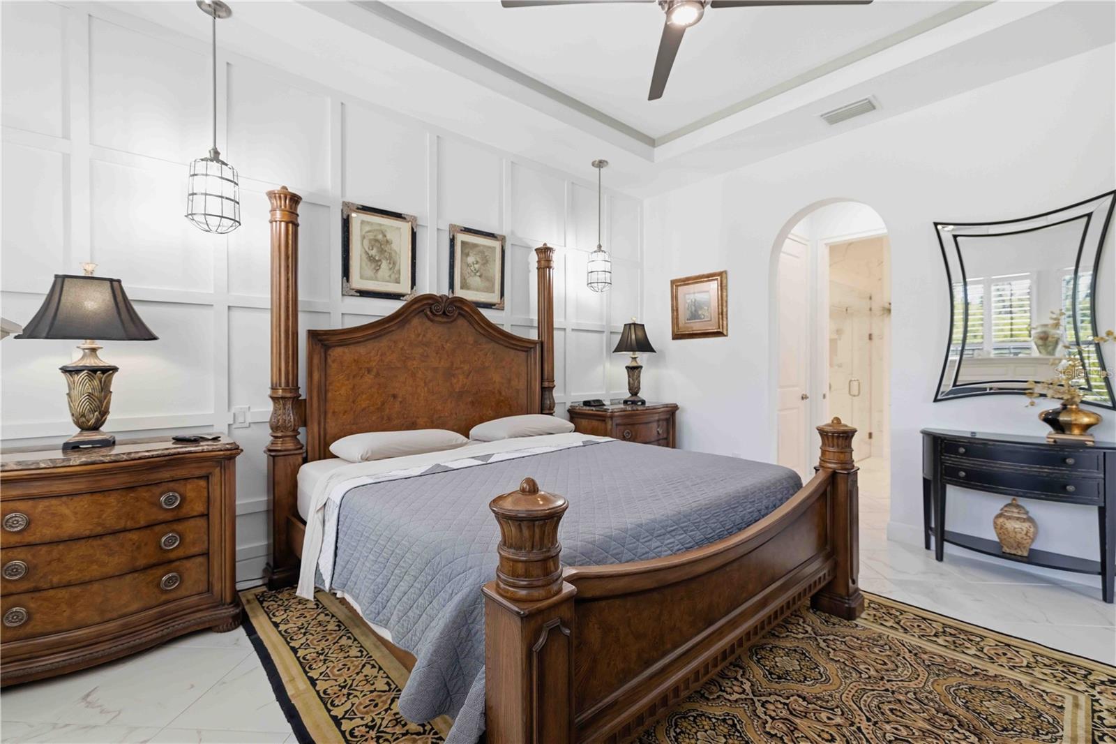 Welcome to an exceptional residence in the gated Arbor Grande of Lakewood Ranch, where timeless design and modern sophistication come together in perfect harmony. Crafted by CalAtlantic, this beautifully appointed 2-bedroom, 2-bath + office villa offers an elevated lifestyle defined by elegance, comfort, and ease. From the moment you enter, you are greeted by stunning plantation shutters, soaring 10-12-foot ceilings, refined tray details, and a seamless flow of natural light through expansive sliding glass doors crowned with transom windows. Bright inviting porcelain tile flooring extends throughout the home, creating a bright, cohesive aesthetic, while custom accent walls in the great room and primary suite add depth and designer character. At the heart of the home, a thoughtfully designed kitchen showcases quartz countertops, 42 inch upper cabinetry, spacious island and gas cooktop—perfectly positioned to connect with the dining and great room spaces for effortless entertaining. The owner’s suite is a serene retreat, featuring elegant tray ceilings, a striking accent wall, and a spa-inspired bath complete with dual vanities and a frameless glass shower. (The fireplace in primary bedroom does not convey.) A private enclosed den with barn doors offers versatility as a functional home office or welcoming guest space. Carefully selected light fixtures and ceiling fans throughout the home also adds to the charm Step outside to your extended screened lanai, where tranquil preserve and nature views provide a peaceful backdrop for everyday living. Pre-plumbed for natural gas, this space is ready to become your dream outdoor kitchen and entertaining haven. An outdoor grill is included for your outdoor entertainment needs. This homesite enhances both privacy and the connection to nature. Residents of Arbor Grande enjoy a curated collection of amenities including a clubhouse, fitness center, heated pools and spa, pickleball and bocce courts, and a private dog park—all just moments away. With direct access to Bob Gardner Park and close proximity to fine dining, shopping, and the Gulf Coast’s renowned beaches, the location is as desirable as the home itself. Adding to the appeal is a truly maintenance-free lifestyle, with the HOA providing exterior maintenance, landscaping, and yard care—allowing you to focus on what matters most, a serene well maintained community and home. Move in ready All measurements to be verified by buyers and their realtor.