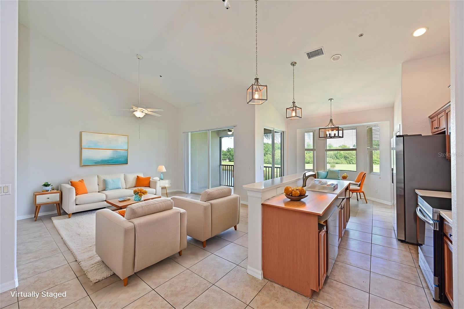 One or more photo(s) has been virtually staged. Golf course living with water views and affordability just became your reality! This newly painted unit features an open concept with soaring ceilings and new luxury vinyl flooring in the bedrooms. All you need to do is make the right decision and call this condo yours. One covered, dedicated parking spot sits directly in front of the stairs leading to your front door. Inside, your imagination will bring the space to life. For those looking to acquire an income producer, this unit has a long history of returns that will make any accountant smile, and it’s ready to go. The location feels like it's in the country, yet it's close to everything you need. You will have easy access to numerous amenities, including a clubhouse with a restaurant, a recreation center, a fitness center, and courts for tennis, pickleball, volleyball, and bocce ball—plus two pools and a hot tub. You are also located near highways that afford easy commuting to Tampa, St. Pete, Sarasota, and Lakewood Ranch. Enjoy a short drive to multiple world-class beaches like Anna Maria Island and Siesta Key. There are plenty of shopping options, from Costco and Target to the new Whole Foods (opening soon), Aldi, and more! New restaurants open weekly, and several medical facilities are just minutes away. Make sure to come check this one out!