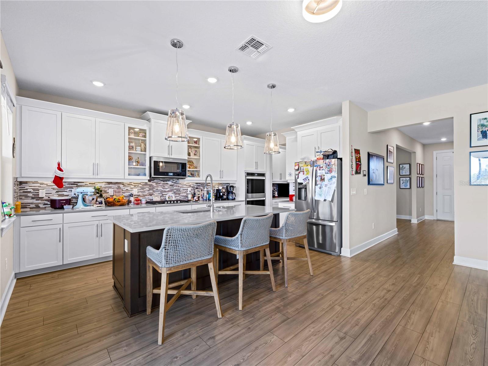 Energy-efficient home built in November 2022, offering over 3,100 square feet of thoughtfully designed living space! This Florida-style layout is perfect for entertaining, featuring 5 bedrooms, 3 bathrooms, and a climate-controlled 3-car garage. The fully fenced backyard ensures privacy, while the first-floor flex space is ideal for a formal dining room or versatile use. Upstairs, a spacious game room provides a dedicated area for work, play, and relaxation. The open-concept kitchen overlooks the great room and covered lanai, offering breathtaking water and preserve views. Enjoy added privacy with a rear preserve that cannot be developed. Located in Lakewood Ranch’s sought-after Savanna community, this home is close to world-class shopping, dining, A-rated schools, and outdoor recreation. Residents enjoy serene wetland and wooded views, plus exclusive amenities like a resort-style pool, clubhouse, fitness center, dog park, and playgrounds. Easy access to I-75 and SR 64 ensures a short commute to Sarasota, Bradenton beaches, and major employment hubs. Known for its energy-efficient features, this home helps you live a quieter, healthier lifestyle while reducing utility costs.