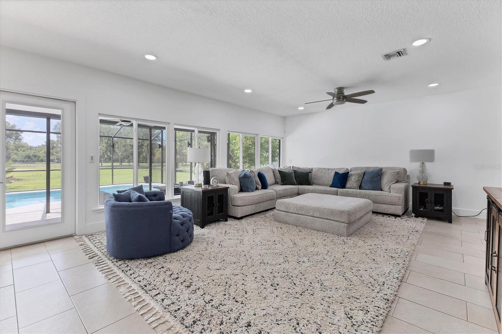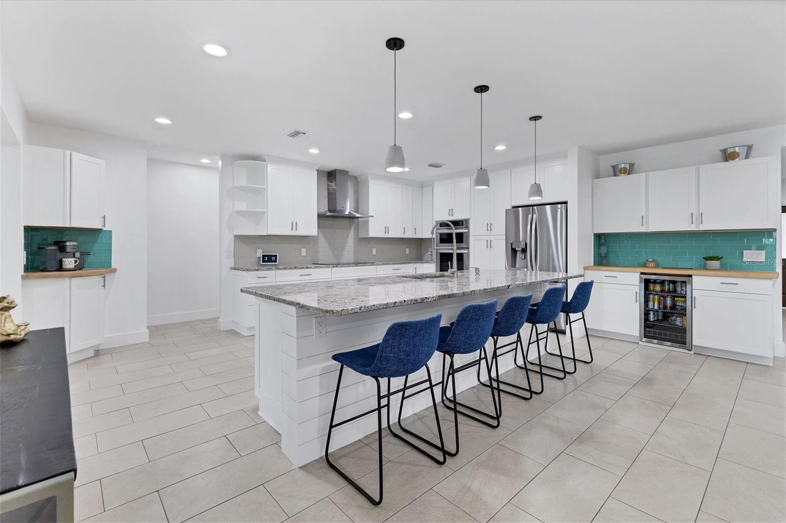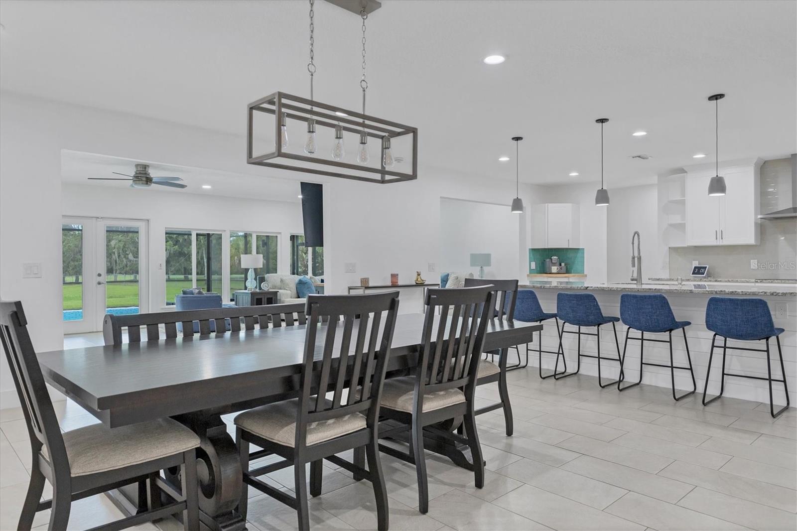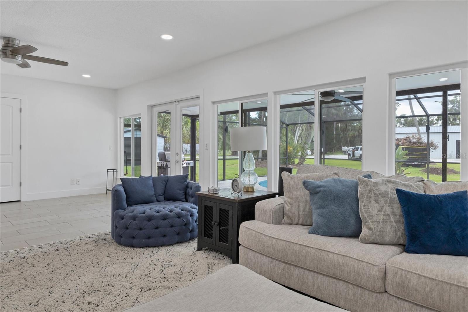 Exceptional 3-bedroom estate in Bradenton, featuring an office/den that can easily be converted to a fourth bedroom, an in-law suite, and 3.5 baths, all set on 2.5 acres—a perfect blend of space, comfort, and tranquility! Upon approach, you'll be welcomed by a canopy of mature oaks, palms, and pitch apple trees, creating a naturally private setting that leads the way to a circular driveway and a charming paver front porch with a tongue and groove ceiling. Inside, you'll find beautiful neutral tile flooring, and in the living room, a propane-ready fireplace set against a shiplap focal point wall creates a cozy atmosphere. The expansive chef’s kitchen is thoughtfully designed, featuring an oversized center island with a breakfast bar and cooktop, sleek white shaker-style cabinets, and a coffee bar. Granite-topped counters and a glass tile backsplash add elegance, while a butcher block-topped dry bar with a beverage refrigerator completes the space. The formal dining room is fully open to the kitchen allowing for easy conversation when hosting friends and family. Adjacent to the kitchen is a spacious family room, featuring a wall of windows and a French door that offer stunning views of the pool and the expansive backyard beyond. The ensuite master bedroom retreat offers French doors for direct access to the pool, a custom-designed walk-in closet, dual sinks set on a quartz-topped vanity, a shower-tub combo, and an additional step-in shower. The two guest bedrooms also feature custom walk-in closets, and the guest baths are beautifully appointed with quartz countertops and elegant finishes. Inside the garage, which features durable epoxy flooring, a staircase leads to a multigenerational living apartment. This space is equipped with a mini-split A/C system, a walk-in closet, skylight, kitchenette with quartz countertops and a full-size refrigerator, while the bathroom includes a step-in shower, a quartz-topped vanity, and modern fixtures. Step outside to a spacious screened-in pool area with epoxy coated decking and an open air paver patio overlooking a large backyard. A smaller storage shed is conveniently located, and a standout feature is the shell driveway leading to a 60x40 detached building with multiple doors, ideal for car, boat, and motorcycle enthusiasts. Additional home highlights include the 2023 metal roof, impact windows throughout, 6” baseboards, security system and much more. If you're looking for a home with abundant indoor and outdoor living spaces, this is the one. Contact us today to arrange your private showing.