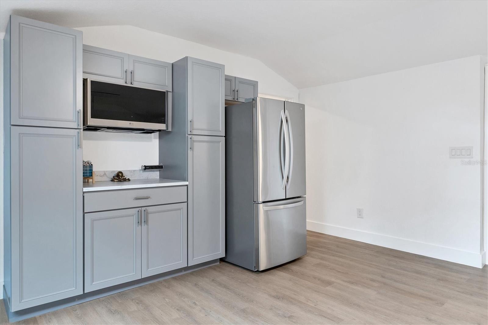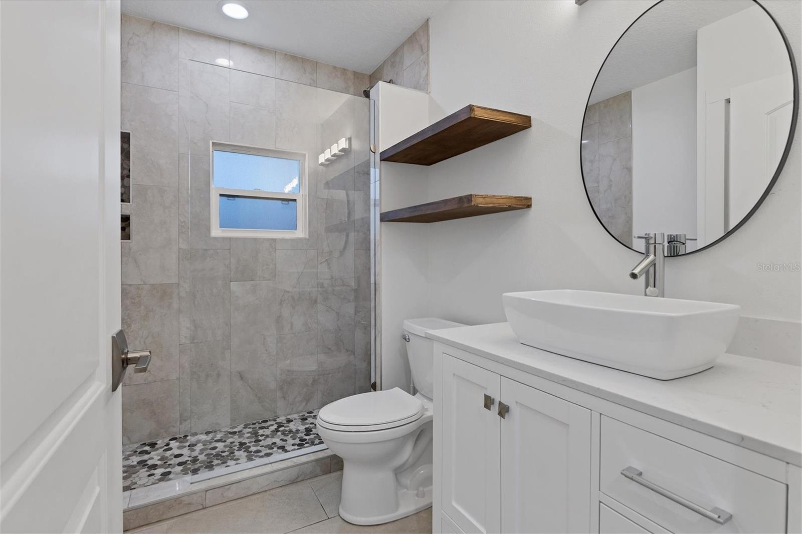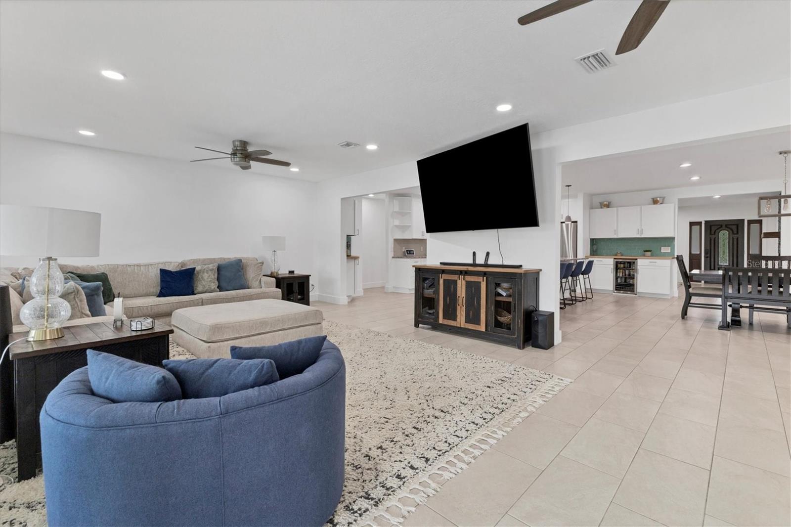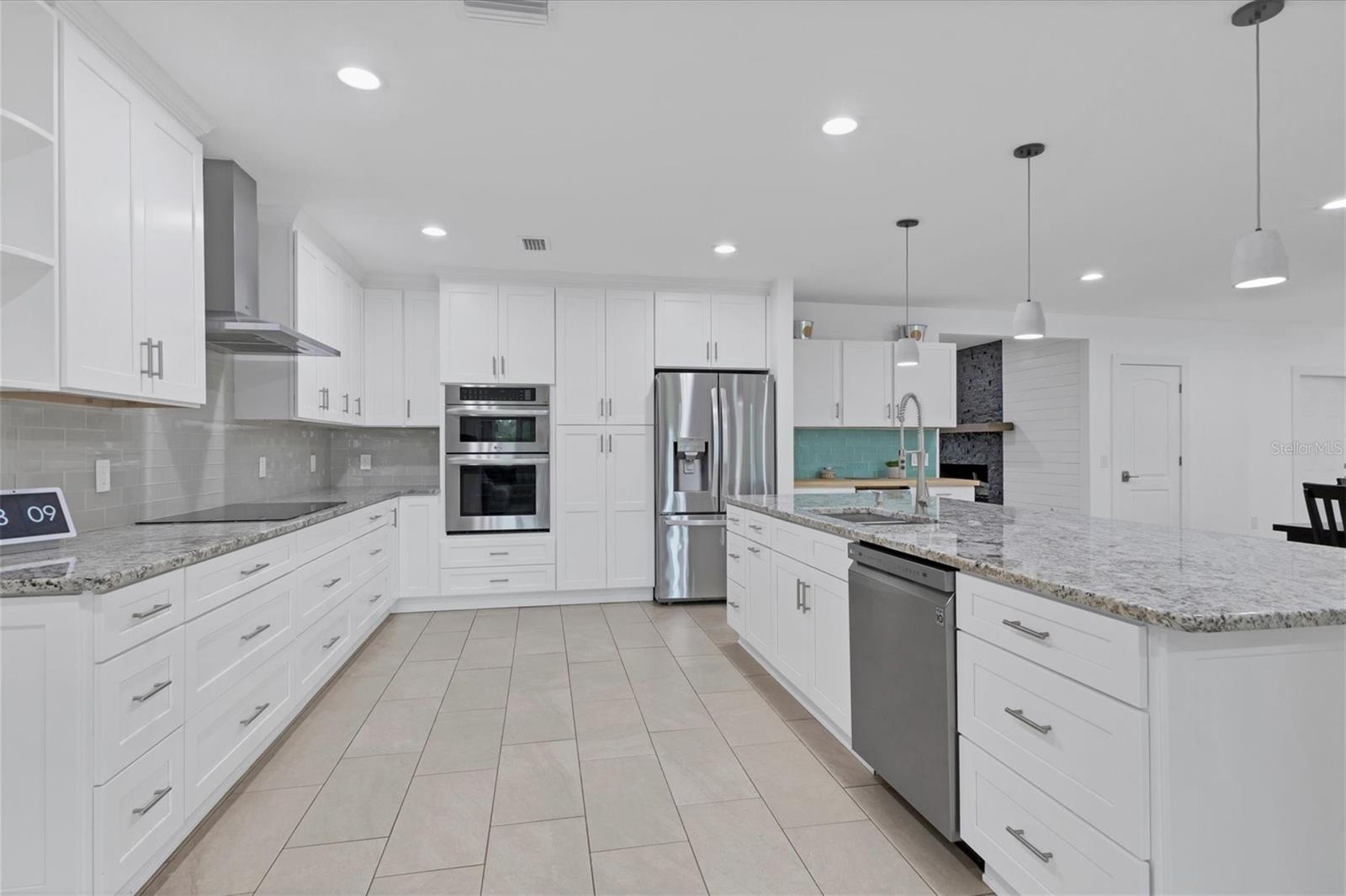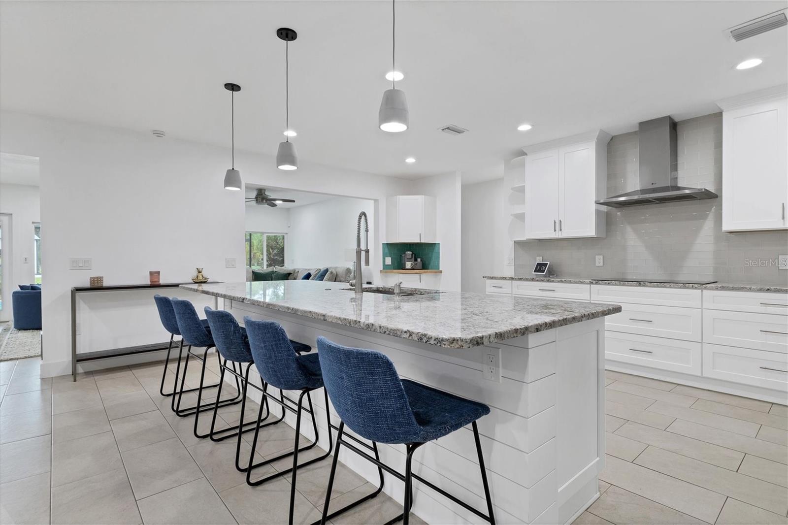 Exceptional 3-bedroom estate in Bradenton, featuring an office/den that can easily be converted to a fourth bedroom, an in-law suite, and 3.5 baths, all set on 2.5 acres—a perfect blend of space, comfort, and tranquility! Upon approach, you'll be welcomed by a canopy of mature oaks, palms, and pitch apple trees, creating a naturally private setting that leads the way to a circular driveway and a charming paver front porch with a tongue and groove ceiling. Inside, you'll find beautiful neutral tile flooring, and in the living room, a propane-ready fireplace set against a shiplap focal point wall creates a cozy atmosphere. The expansive chef’s kitchen is thoughtfully designed, featuring an oversized center island with a breakfast bar and cooktop, sleek white shaker-style cabinets, and a coffee bar. Granite-topped counters and a glass tile backsplash add elegance, while a butcher block-topped dry bar with a beverage refrigerator completes the space. The formal dining room is fully open to the kitchen allowing for easy conversation when hosting friends and family. Adjacent to the kitchen is a spacious family room, featuring a wall of windows and a French door that offer stunning views of the pool and the expansive backyard beyond. The ensuite master bedroom retreat offers French doors for direct access to the pool, a custom-designed walk-in closet, dual sinks set on a quartz-topped vanity, a shower-tub combo, and an additional step-in shower. The two guest bedrooms also feature custom walk-in closets, and the guest baths are beautifully appointed with quartz countertops and elegant finishes. Inside the garage, which features durable epoxy flooring, a staircase leads to a multigenerational living apartment. This space is equipped with a mini-split A/C system, a walk-in closet, skylight, kitchenette with quartz countertops and a full-size refrigerator, while the bathroom includes a step-in shower, a quartz-topped vanity, and modern fixtures. Step outside to a spacious screened-in pool area with epoxy coated decking and an open air paver patio overlooking a large backyard. A smaller storage shed is conveniently located, and a standout feature is the shell driveway leading to a 60x40 detached building with multiple doors, ideal for car, boat, and motorcycle enthusiasts. Additional home highlights include the 2023 metal roof, impact windows throughout, 6” baseboards, security system and much more. If you're looking for a home with abundant indoor and outdoor living spaces, this is the one. Contact us today to arrange your private showing.