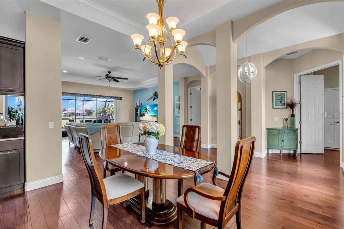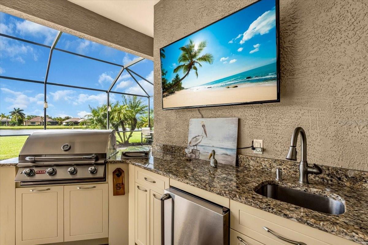 SELLER WILL PAY $10,000 TO BUYERS FOR CLOSING COSTS OR RATE BUY DOWN! Welcome to luxury living at its finest in the prestigious, gated Enclave at Country Meadows—an intimate community of just 68 executive homes. This expanded Aruba model by Medallion Homes was designed to be wider in the living, dining and kitchen areas as well as the primary bedroom and walk in closets. This stunning home offers over 2,600 square feet of elegantly designed living space on nearly half an acre, featuring breathtaking pond views and a captivating color-changing fountain. Step inside to discover 3 bedrooms, 3 full baths, plus a spacious den, all designed with impeccable craftsmanship. The gourmet kitchen is a chef’s dream, featuring New Cambria quartz countertops, a built-in microwave, convection oven, warming drawer, and a 36" gas cooktop powered by a 250 gallon buried propane tank—also serving the water heater, dryer and outdoor kitchen. The primary suite is a private retreat, offering direct access to the enclosed, resort-style saltwater pool, equipped with new salt generator and newer pool pump. Enjoy a spa-like ensuite with a soaking tub, dual sinks, an expansive walk-in shower, and two custom walk-in closets. The open living area boasts a seamless indoor-outdoor flow with a wall of sliding glass doors that fully retract. The split floor plan is perfect for entertaining out of town company and the pool bath allows for easy access in and out of the lanai! Step outside to your outdoor oasis, where the full summer kitchen includes a built-in grill, gas stove top, wash sink with garbage disposal, and refrigerator—perfect for entertaining while taking in serene pond views. Best of all, the south-facing backyard ensures you can enjoy the pool all day long, while taking in the spectacular sunsets each evening. Rest easy knowing this home features hurricane shutters, a whole-house propane-powered generator, and a desirable X flood zone location—no flood insurance required. It also has an irrigation system supplied by it's own well and 2 new AC systems! This home is loaded with extras! The stunning outdoor spaces, high-end finishes, tray ceilings, crown molding and thoughtful details throughout, make this an ideal retreat. Don’t miss this rare opportunity to own a slice of paradise in the Enclave at Country Meadows!