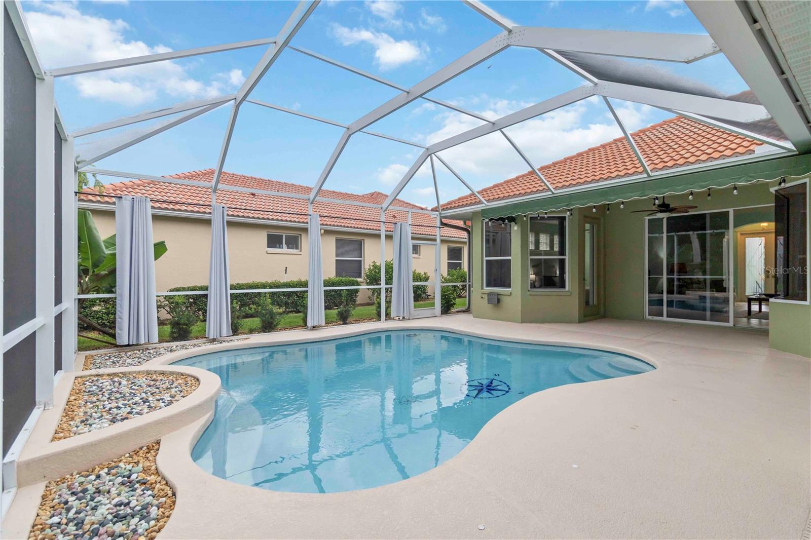 Beautifully maintained Lee Wetherington executive pool home located in the sought-after community of Tara Preserve. This versatile 4-bedroom, 3-bath residence showcases elegant finishes and thoughtful upgrades throughout. Step through leaded glass doors into a bright, welcoming foyer adorned with designer tile. Enjoy serene views of the resurfaced saltwater pool (2023), a covered lanai with awning (2021), lush new landscaping (2025), and a peaceful private preserve beyond—offering the perfect backdrop for relaxation and entertaining. Designed for both comfort and functionality, the home features formal living and dining areas, a spacious family room with sliding glass doors, and a well-appointed kitchen with multi-level maple cabinetry, Corian countertops, center island, breakfast bar, gas cooktop, Advantium microwave, built-in desk, and an aquarium window in the breakfast nook overlooking the pool. The luxurious primary suite offers a sitting area, dual walk-in closets, double vanities, a walk-in shower, and a garden tub. Additional features include a new Lennox HVAC system (2023), gas pool heater, saltwater pool pump and generator (2024), on-demand gas water heater, tray ceilings, crown molding, art niches, and a desirable split-bedroom layout for added privacy. Residents of Tara Preserve enjoy resort-style living with no mandatory golf membership, featuring an 18-hole championship golf course, heated community pool and spa, lighted tennis and pickleball courts, clubhouse, and more. With a low annual HOA of just $1,052 and a prime location near top-rated shopping, dining, entertainment, and the Gulf Coast’s beautiful beaches, this home offers the perfect blend of luxury, efficiency, and lifestyle.