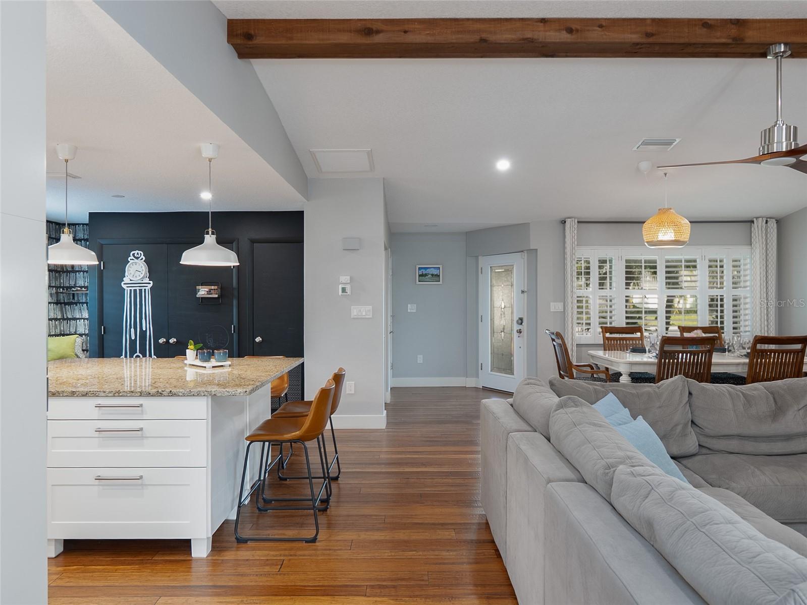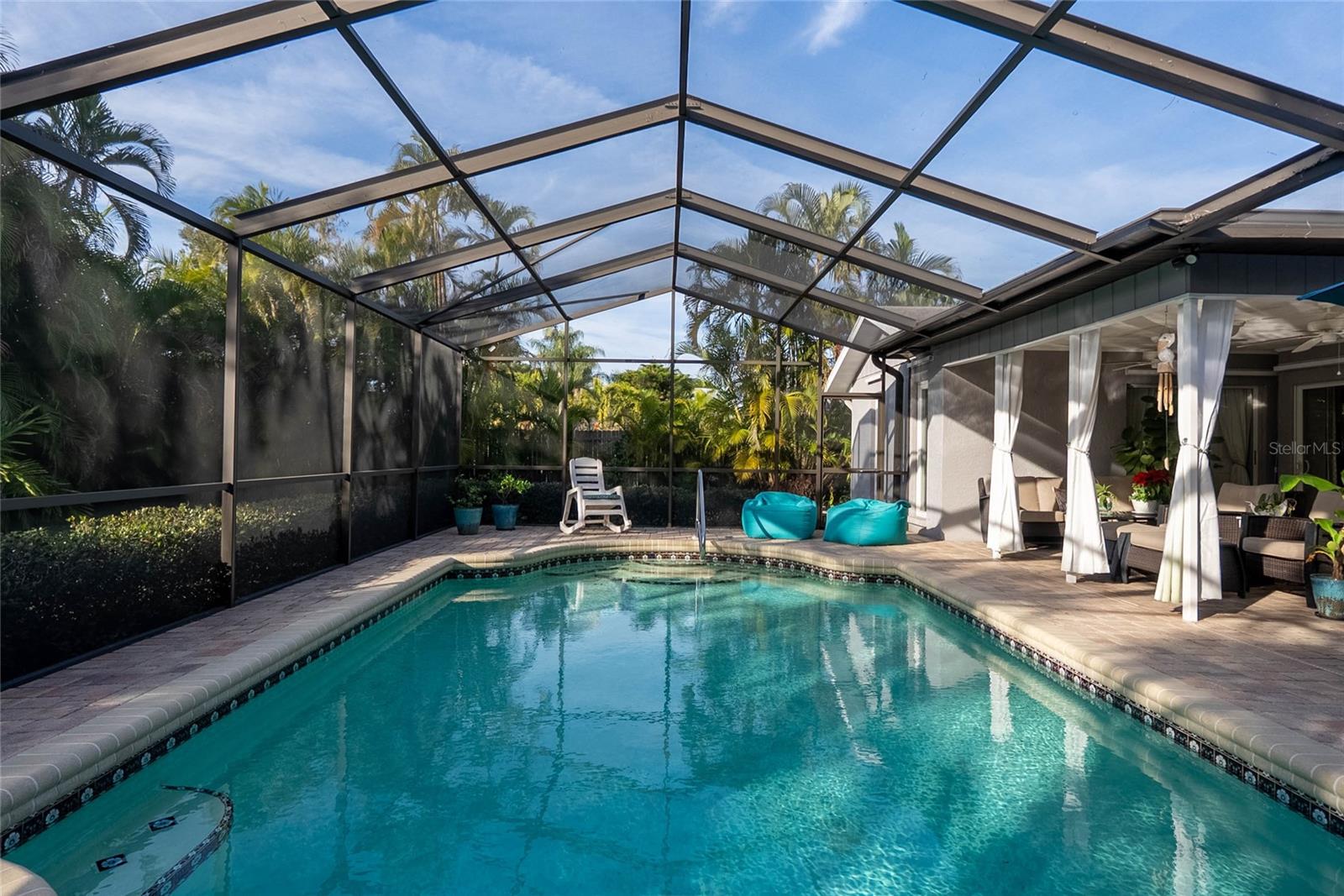 Tropical Private Resort Like Living in this Absolutely Stunning Completely Renovated Open Concept 3 bedroom, 2 bath, 2 Car Garage Home with a Fabulous Heated Caged in Pool. Some of the upgrades include Completely Updated Kitchen, and baths (2018-2021), All New Hurricane Windows with Hurricane Panels for Sliders (2018), Pool Cage Completely Rescreened, Replaced all Hardware, and Repainted (2020), New A/C System (2017), All New HVAC Duct Work (2018), New Hot Water Tank (2023) Solid Bamboo Flooring throughout (2018), New Laundry/ Appliances (2018), New Ceiling Fans, and Light Fixtures (2018), New Pool Pump and Heater (2016), Plantation shutters, Fresh Paint, Stainless Steel Appliances, Solid Surface Counters and more. The Open Floor plan with vaulted ceilings is great for entertaining. The lovely caged in heated in ground pool with paver deck has a covered space for dining and relaxing. The Professionally landscaped and fully fenced in back yard with lush green zoysia grass. Palma Sola Village is a wonderful neighborhood with great schools and shops all super close by, with Biking distance to the bay on Palma Sola causeway, and less then 5 miles to the Pristine Beaches of Anna Maria Island. Furnishings may be negotiated on a separate contract.