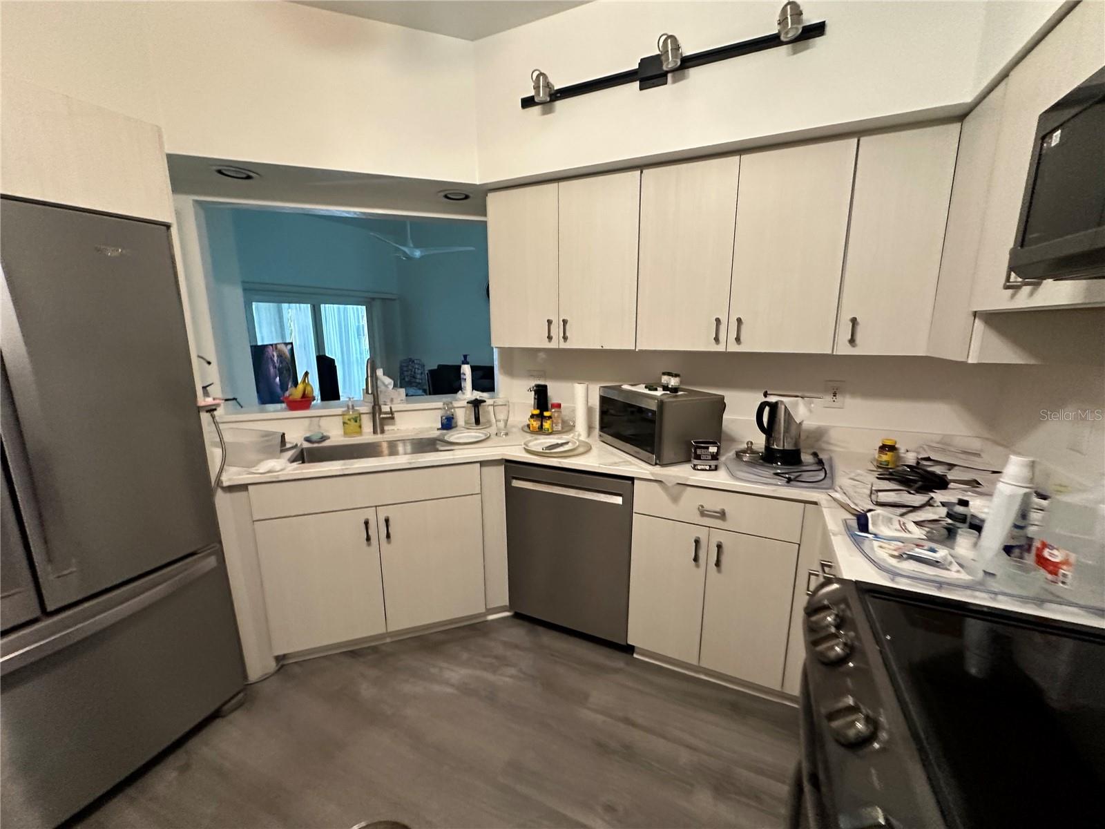 Welcome to Fairway Gardens at Tara! This 2-bedroom, 2-bathroom condo offers 1,140 sq. ft. of comfort without high HOA fees. Located on a peaceful cul-de-sac, it features bamboo flooring, cathedral ceilings, and an updated kitchen with quartz countertops and stainless steel appliances. The glassed-in lanai can be used as a den or a relaxing space. Hurricane windows (except in the second bedroom) provide added security. The master suite includes a newly tiled shower and a walk-in closet. The extended garage offers extra storage.
