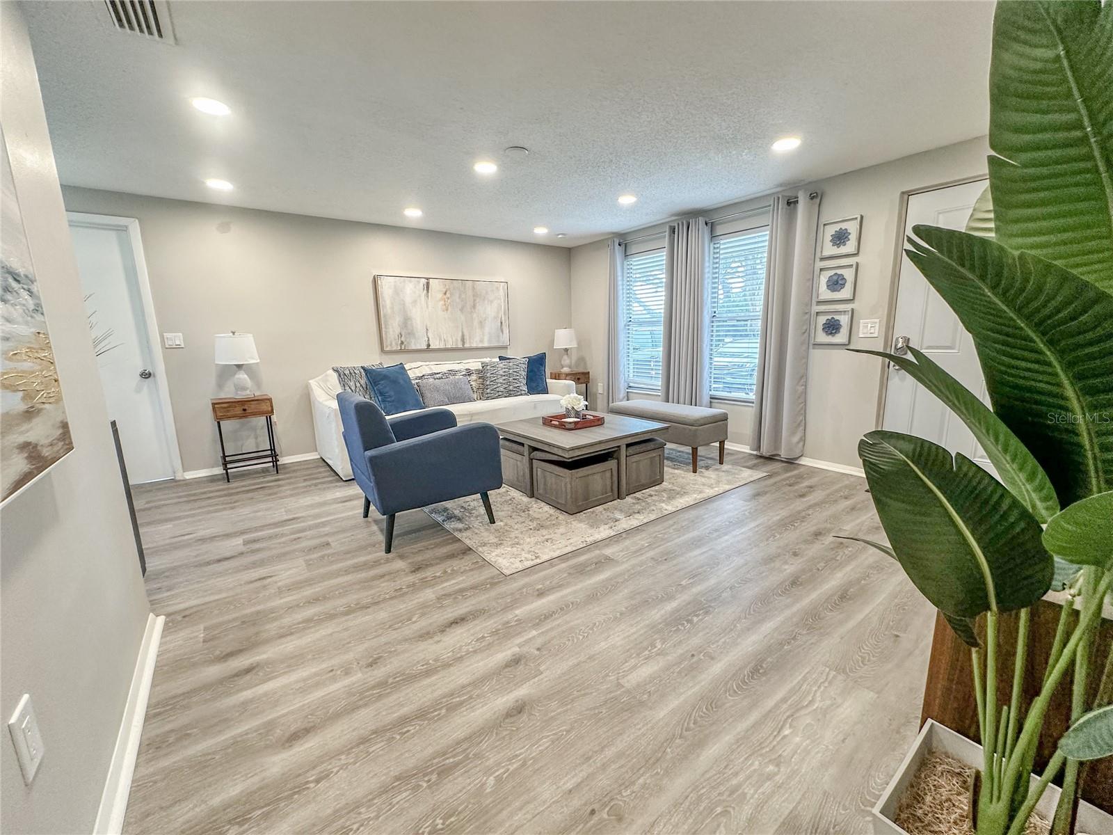 Imagine stepping into a beautifully well designed home where comfort and functionality meet. Situated on a quiet neighborhood/, and recently remodeled. As you enter to the open living area with ample space that connects to dining room and kitchen, thus creating a perfect environment for an every day living experience. This wonderful house located at the heart of Cordova Lakes. The kitchen includes all stainless steel appliances and reverse osmosis water filtration system. Pantry is in the dining room; this house has a split bedroom floor plan that provides plenty privacy to all family member. Spacious master bedroom w/ walking closet and a beautiful shower. Both bathrooms are fully updated. Bath mirror has humidity prevention and lights. This beautiful house is ready to move in and enjoy drinking your morning coffee out on the paved patio. Fully fenced in yard. Laundry is in the garage. New roof on 2022. Central A/C was replaced on 2014; also new air ducts and more vents were added on 12/23. New upgraded electrical panel installed on 2023. New ceiling fans and dimming recessed lights on 2023.Heating board replaced in A/C unit, 11/18/24. This property is located close to Bradenton Beaches (5 miles), Blake hospital less than a mile, GT Bray Park 5 minutes or less and surrounded by various Shopping centers. Don't miss the opportunity to make this beautiful home your new paradise.