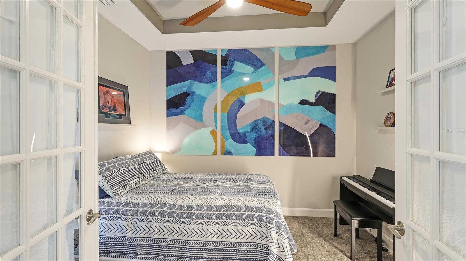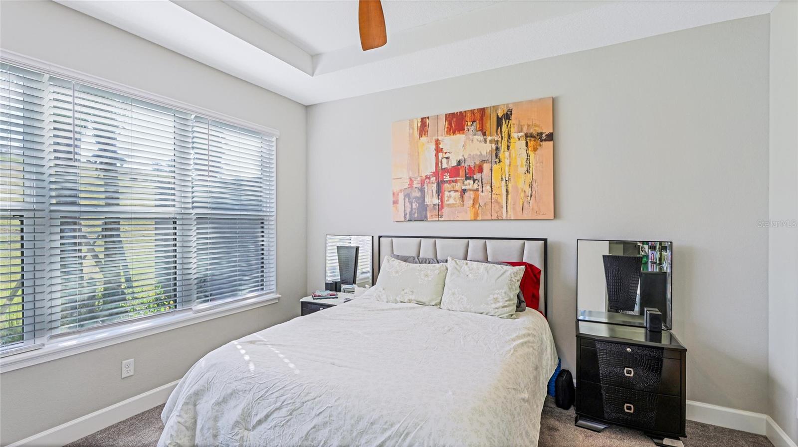 The only available location with mountain views in Esplanade at the Heights! Enjoy resort-style amenities while living in this beautiful Twin Villa home. Furniture available. This corner lot's backyard is directly on Mt. Tumalo. Located on a quiet street which has houses on only one side of the street. When you look out the front, back, or side of the home, you will not be looking at another house! Direct access to the walking and exercise paths on Mt. Tumalo, a man-made mountain made from soil excavated during the creation of Ward Lake which is adjacent to the neighborhood. This open-concept floorplan offers 1,533 square feet of living space, including 2 bedrooms, 2 baths, a study, and a 2-car garage with ample room for storage. Upon entering, you'll find a spacious gathering room overlooked by a large designer kitchen. The elegant owner's suite at the back of the home features a luxurious bathroom and a walk-in closet. The second bedroom has an attached bathroom, and the spacious study is at the front, providing privacy for guests and family. Fully optioned laundry room with cabinets and utility sink. Both walk-in closets feature professionally installed custom closets. The home orientation is northern-front, eastern to the side, and southern on the lanai & rear of house. It has no western, hot afternoon sun exposure! No expense was spared designing the living space. The kitchen features all drawers in the lower cabinets, level 6 Cambria quartz countertops, and upgraded appliances including a air-fry equipped range. Save thousands compared to new with owner installed options including custom closets, dining room customized mirrors with LED lighting, designer ceiling fans, dimmers throughout, additional pavers, ceiling surround sound speakers, garage storage and many thoughtful upgrades you'll want to check out. The community includes resort amenities geared toward active and social residents. A luxurious clubhouse (new in 2022) provides a resort pool & hot tub, four pickleball courts, tennis, on-site massage, bocci ball, pool table, ping pong, wine lockers, and more! The community provides kayaks at our private launch on Lake Ward with exploration options into many local tributaries of the Braden River. No CDD. Maintenance free, convenient to both Sarasota and Bradenton beaches. Just a few minutes to UTC mall, restaurants, Benderson Park, and the new Mote Marine facility.