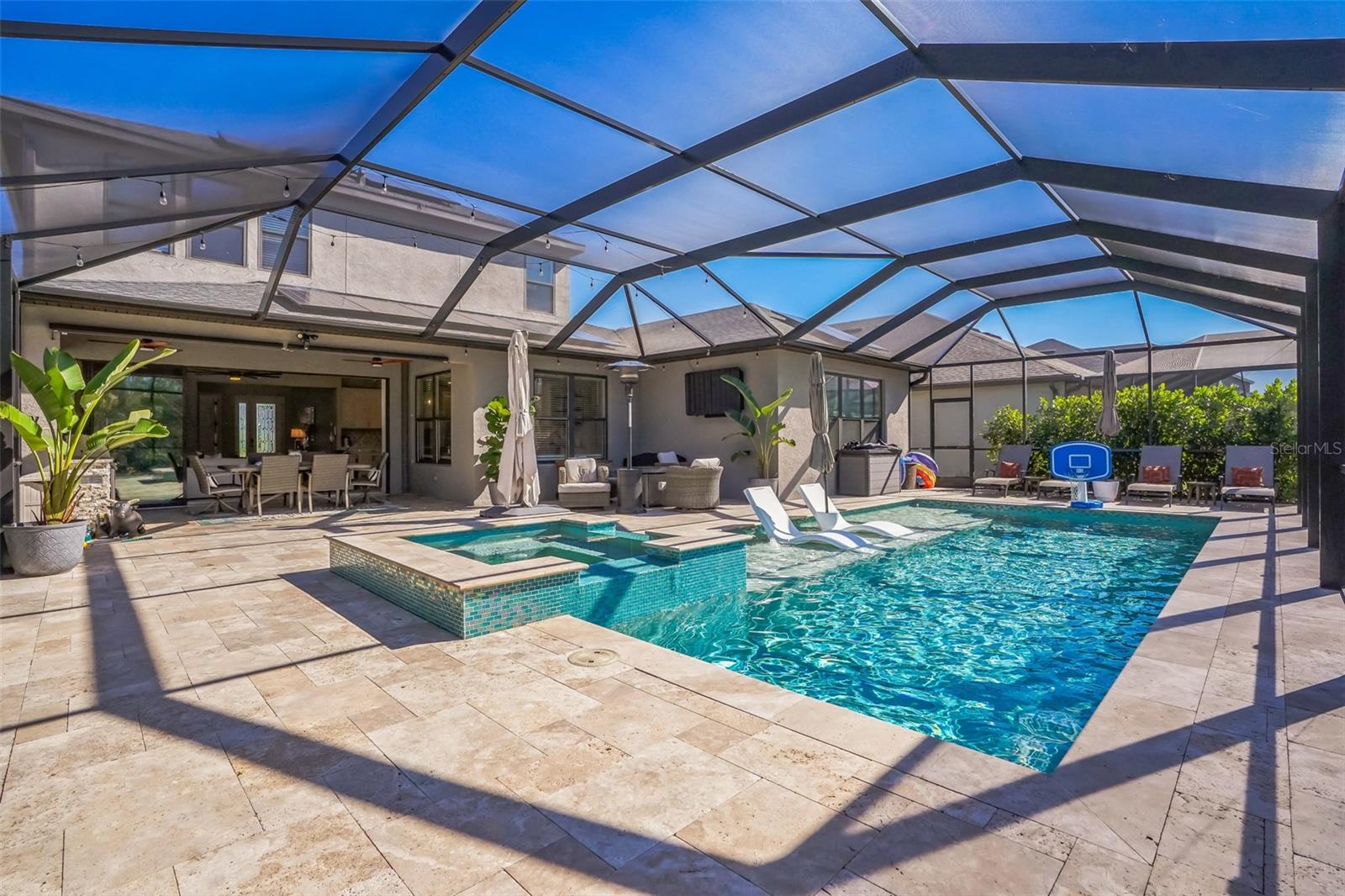 Welcome to your dream home – a wonderful 4-bedroom, 3.5-bath, den luxury retreat that blends modern elegance with timeless charm. Every detail of this residence has been carefully curated to create an atmosphere of pure indulgence, from the high-end finishes to the thoughtfully designed layout. Step inside and be greeted by an expansive open-concept living space, highlighted by a stunning stone fireplace wall that serves as both a cozy gathering spot and a statement piece. The gourmet kitchen is a chef’s paradise, equipped with premium appliances, custom cabinetry, and a striking marble backsplash that adds a touch of refined beauty. An oversized island provides ample prep space and is perfect for casual dining or entertaining guests. The outdoor area is equally captivating, boasting a luxurious pool that sparkles in the sunlight, surrounded by lush landscaping that ensures privacy. Entertain effortlessly in the fully equipped outdoor kitchen, complete with a built-in grill, ample counter space, and seating areas that make it ideal for al fresco dining. Each of the three bedrooms is a private sanctuary, with spacious closets and en-suite baths that feature high-end fixtures, elegant finishes, and spa-like amenities. The primary suite offers a serene escape with a beautifully appointed bathroom, walk-in shower, and custom vanity, creating a perfect blend of comfort and sophistication. This home is a rare opportunity to own a slice of luxury where every detail speaks to quality and style.It has also a solar.Whether you’re lounging by the pool, hosting dinner parties, or relaxing by the fireplace, this residence offers the ideal setting for a life of elegance and ease. EV charging installed in the garage!