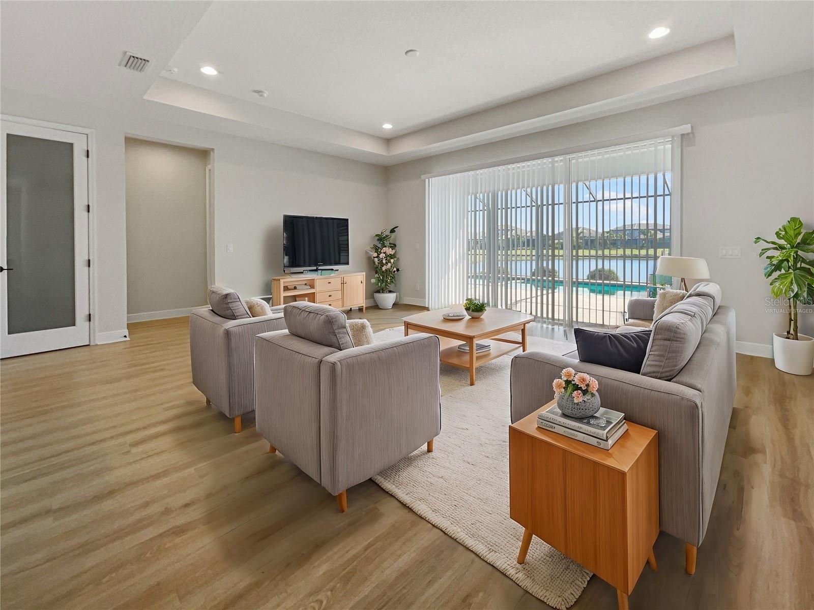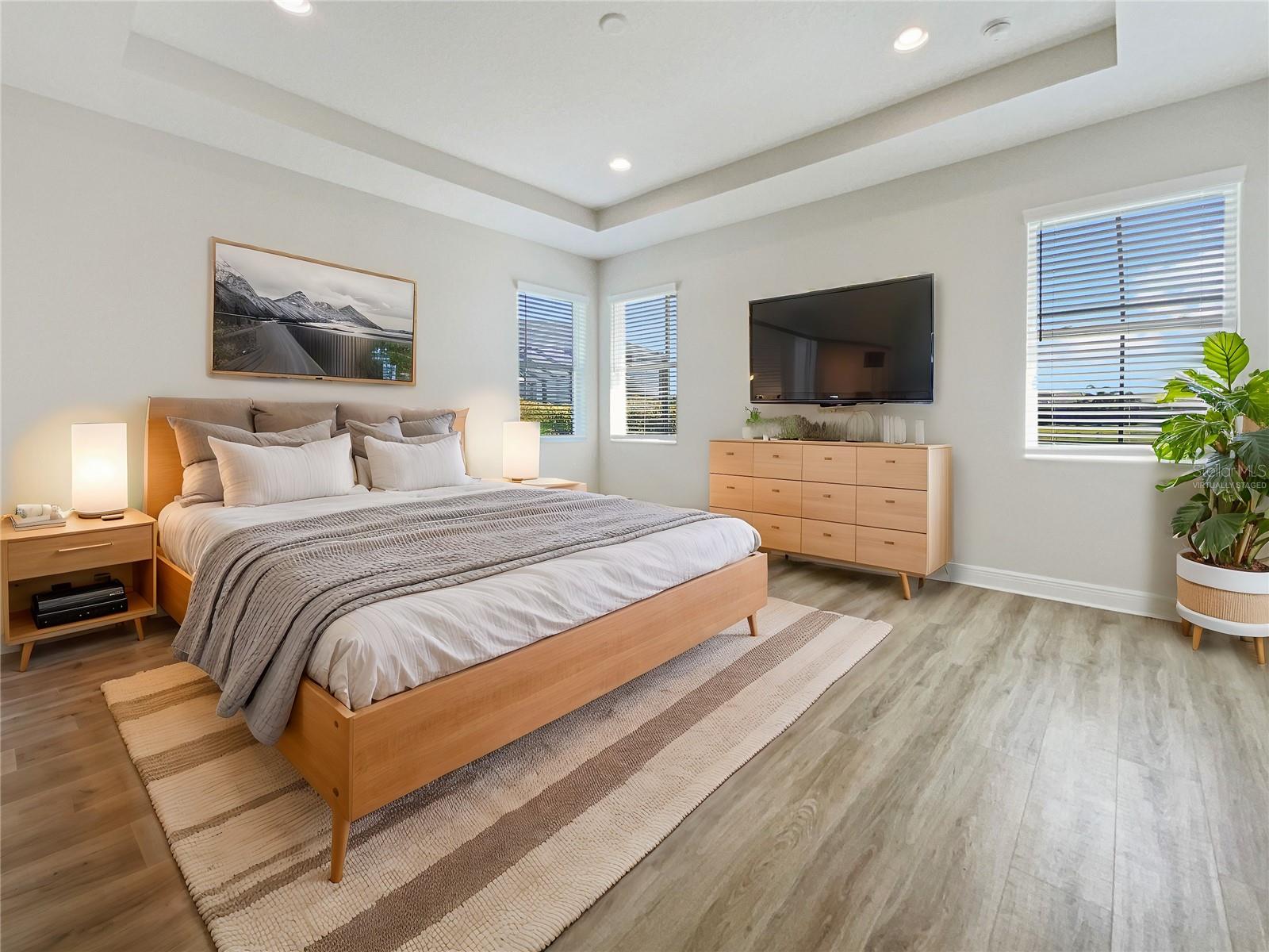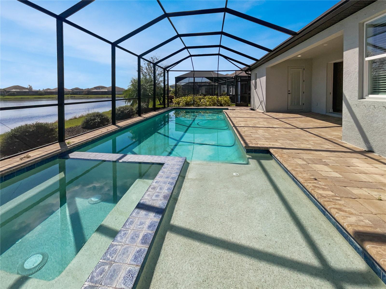 One or more photo(s) has been virtually staged. Welcome to this beautifully designed home with a natural color palette that creates a calming and inviting atmosphere. The kitchen boasts a center island and a nice backsplash, perfect for preparing meals and entertaining. The main bedroom features a walk-in closet, while the primary bathroom offers double sinks and good under sink storage. Step outside to enjoy your own private in-ground pool surrounded by a covered sitting area in the backyard, ideal for relaxing and soaking up the sun. Don't miss the opportunity to make this stunning property your own oasis retreat.