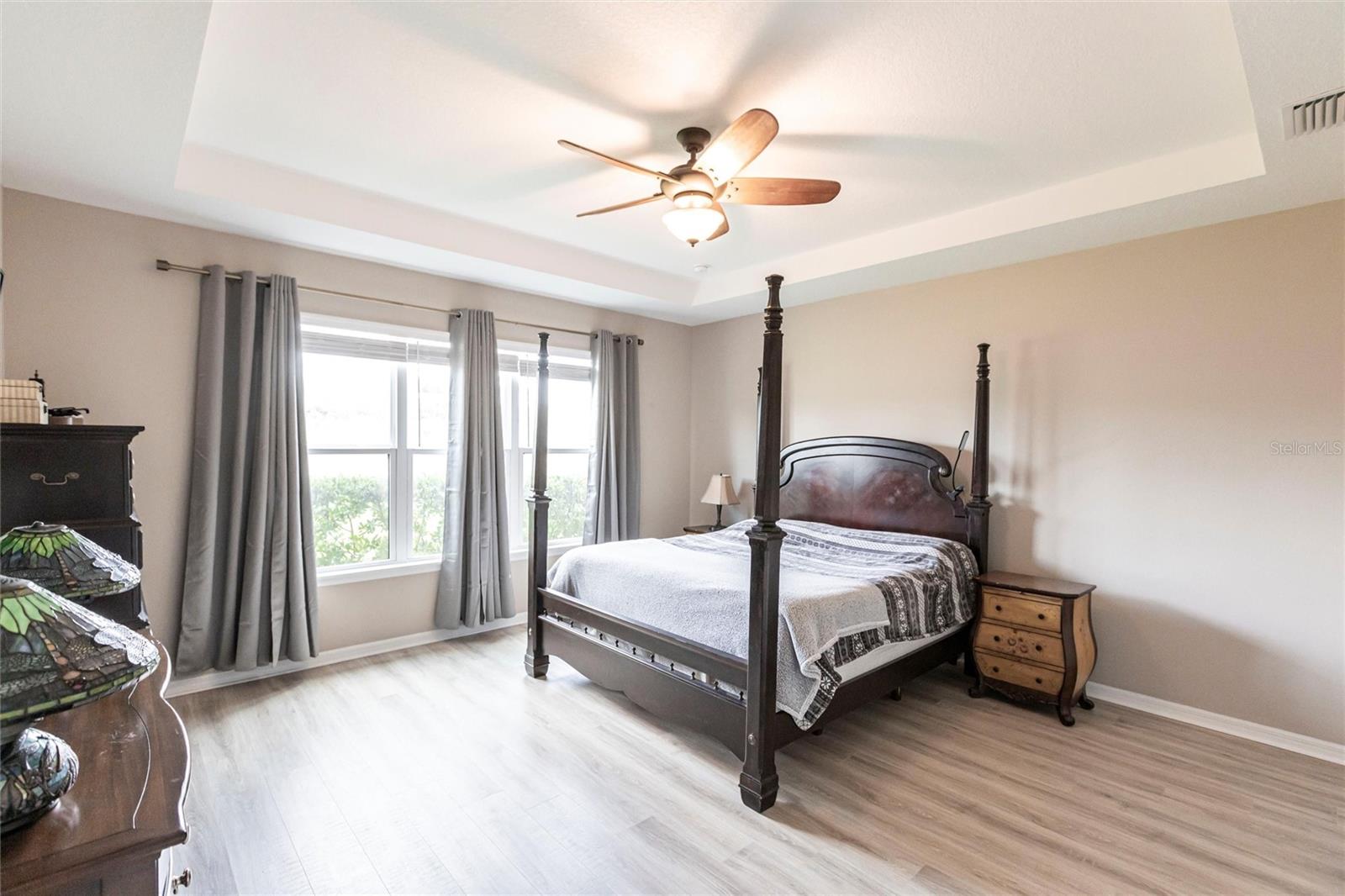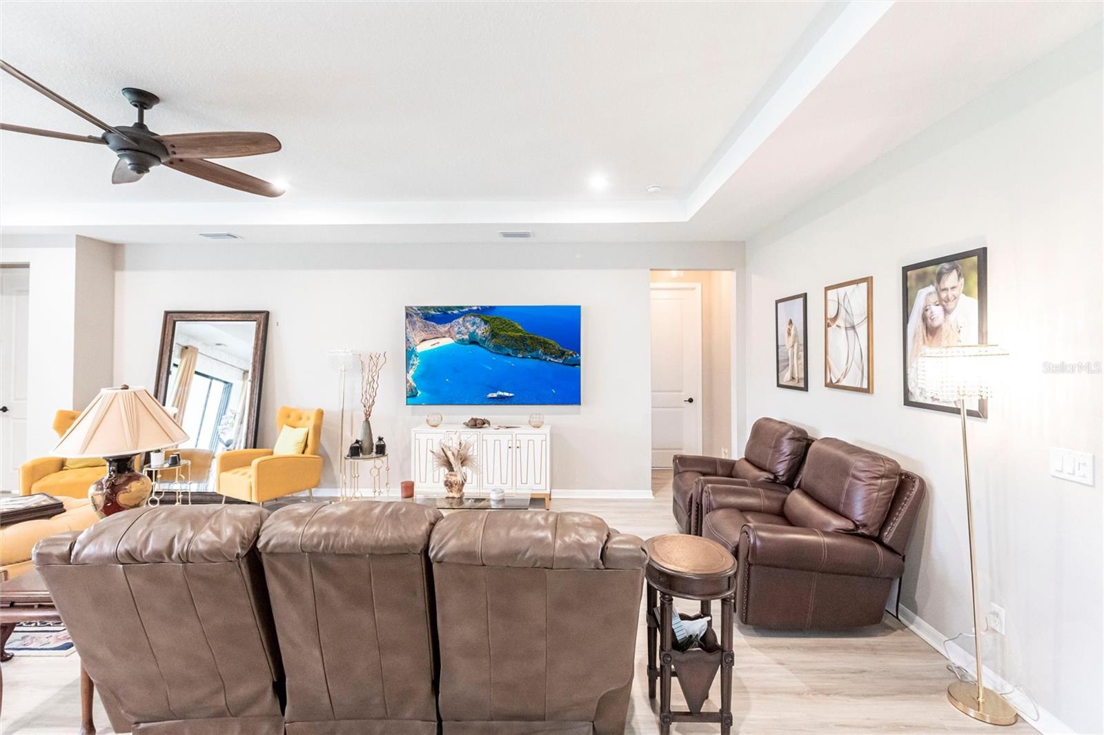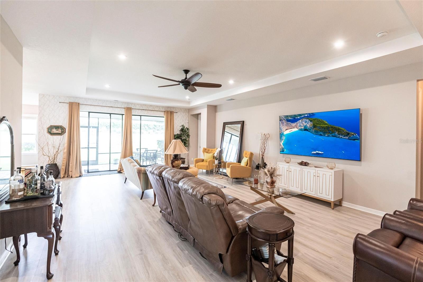 Welcome to your dream home at Park East @ Azario in Lakewood Ranch! Step inside and be captivated by the elegant tray ceilings and the stunning view through your triple pocketing sliders. This exquisite 4-bedroom, 3.5-bath residence offers luxurious living and a work from home option with an oversized office/flex room with double doors. The spacious great room, adorned with a tray ceiling, seamlessly connects to the open concept kitchen, featuring top-of-the-line GE®Cafe appliances, quartz countertops, and walk-in pantry. The primary suite is a true sanctuary, boasting an oversized walk-in closet, dual sinks, a spa shower and separate water closet. Throughout the home, you'll find upgraded hard surfaces and energy-efficient appliances, including LENNOX® high-efficiency air conditioning systems with Honeywell Home® touchscreen/Wi-Fi thermostats. Three car garage contains epoxy finished flooring and upgraded insulation to keep it cool. Ready for your custom pool? The home is pre-wired and includes rough-ins for an outdoor kitchen on the lanai. The Park East community includes resort-style amenities such as a heated pool, spa, sand volleyball, basketball courts, playground, two pet parks, and a large multi-sport field. Conveniently located near downtown Sarasota, UTC Mall, shopping, restaurants, medical facilities, beaches, I-75, Tampa and St. Pete, this home offers unparalleled access to everything you need.