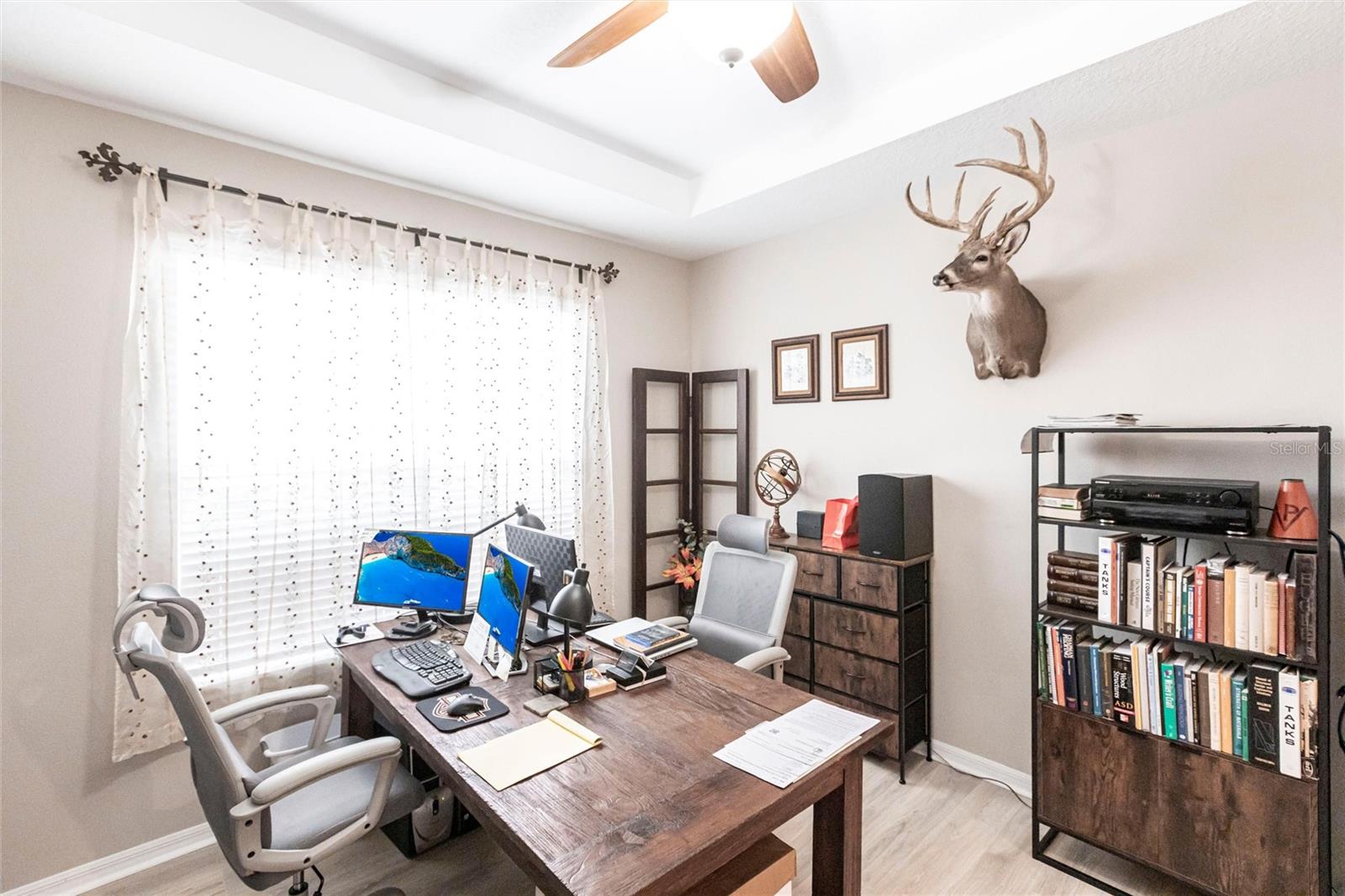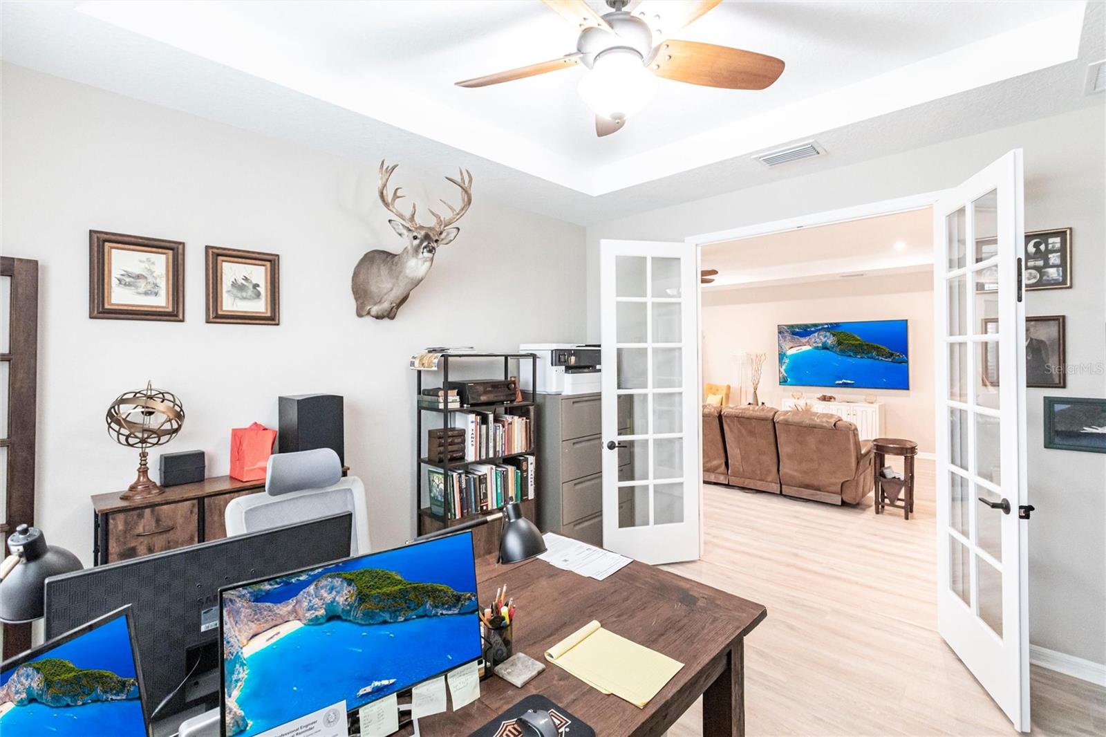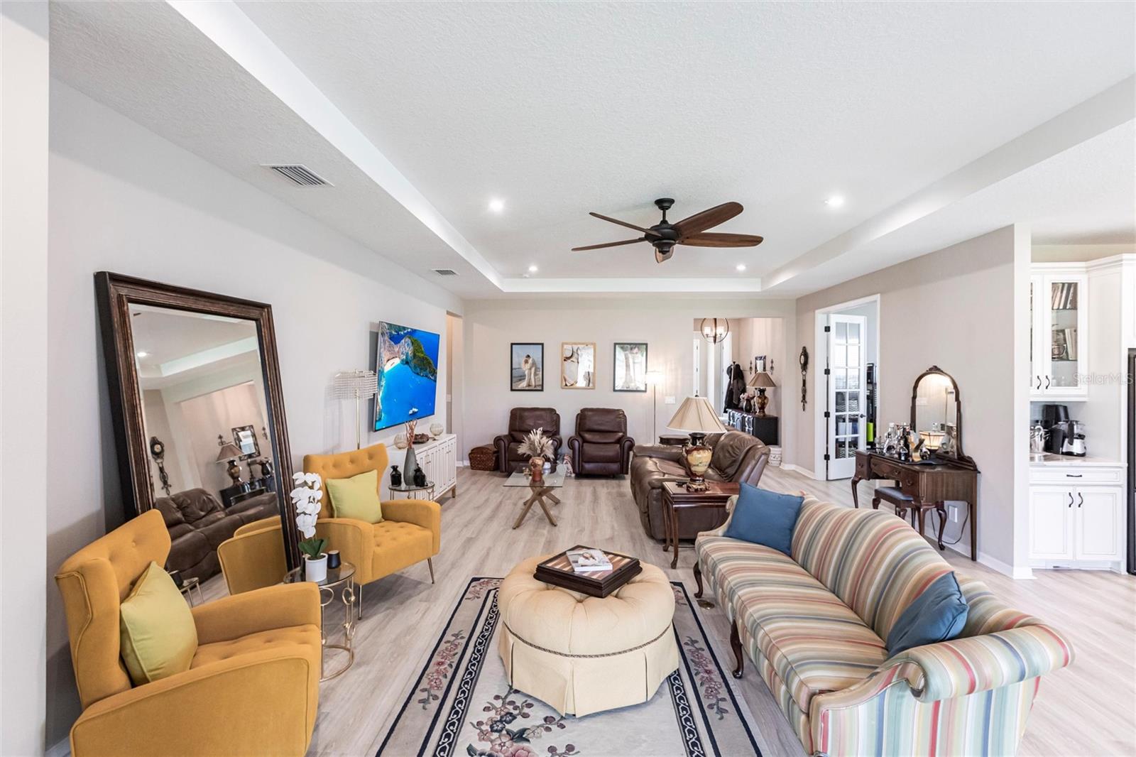 Welcome to your dream home at Park East @ Azario in Lakewood Ranch! Step inside and be captivated by the elegant tray ceilings and the stunning view through your triple pocketing sliders. This exquisite 4-bedroom, 3.5-bath residence offers luxurious living and a work from home option with an oversized office/flex room with double doors. The spacious great room, adorned with a tray ceiling, seamlessly connects to the open concept kitchen, featuring top-of-the-line GE®Cafe appliances, quartz countertops, and walk-in pantry. The primary suite is a true sanctuary, boasting an oversized walk-in closet, dual sinks, a spa shower and separate water closet. Throughout the home, you'll find upgraded hard surfaces and energy-efficient appliances, including LENNOX® high-efficiency air conditioning systems with Honeywell Home® touchscreen/Wi-Fi thermostats. Three car garage contains epoxy finished flooring and upgraded insulation to keep it cool. Ready for your custom pool? The home is pre-wired and includes rough-ins for an outdoor kitchen on the lanai. The Park East community includes resort-style amenities such as a heated pool, spa, sand volleyball, basketball courts, playground, two pet parks, and a large multi-sport field. Conveniently located near downtown Sarasota, UTC Mall, shopping, restaurants, medical facilities, beaches, I-75, Tampa and St. Pete, this home offers unparalleled access to everything you need.