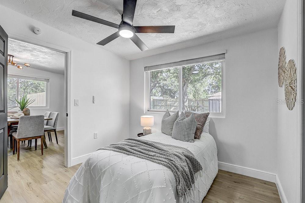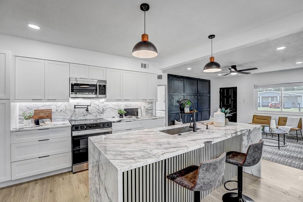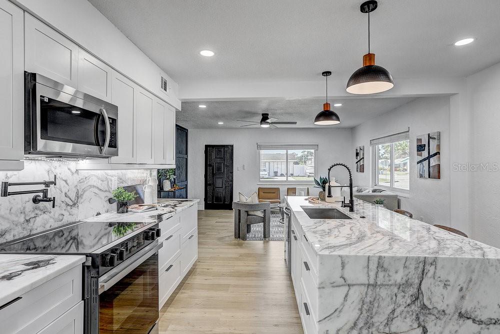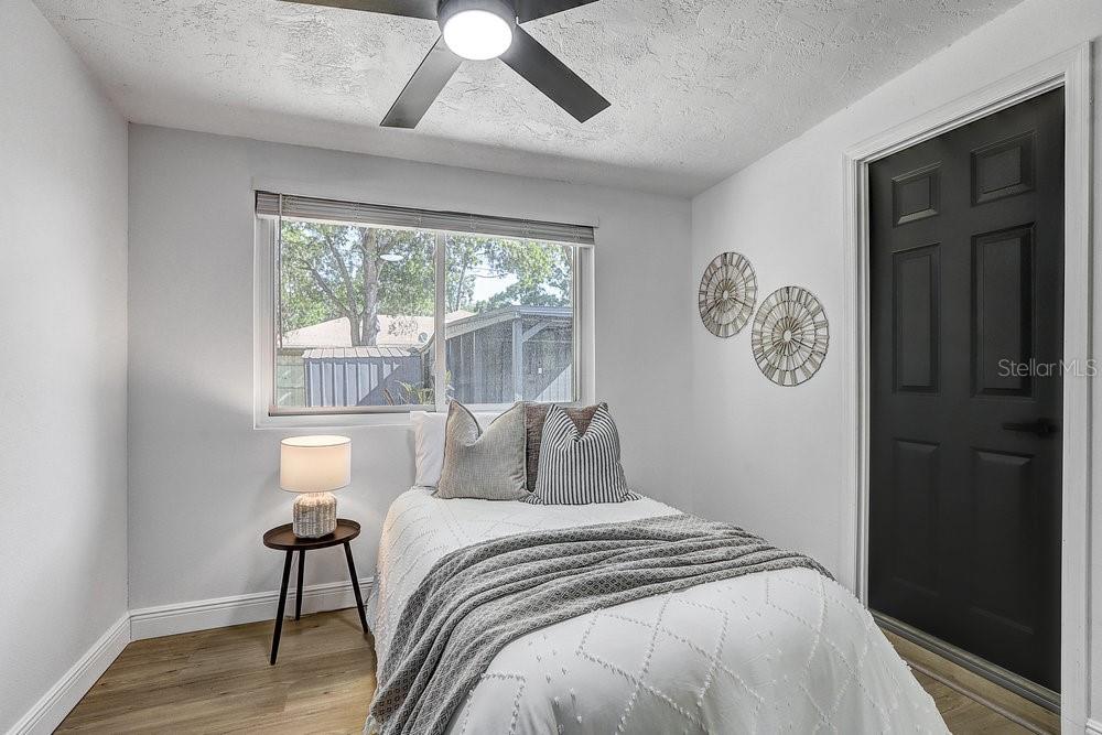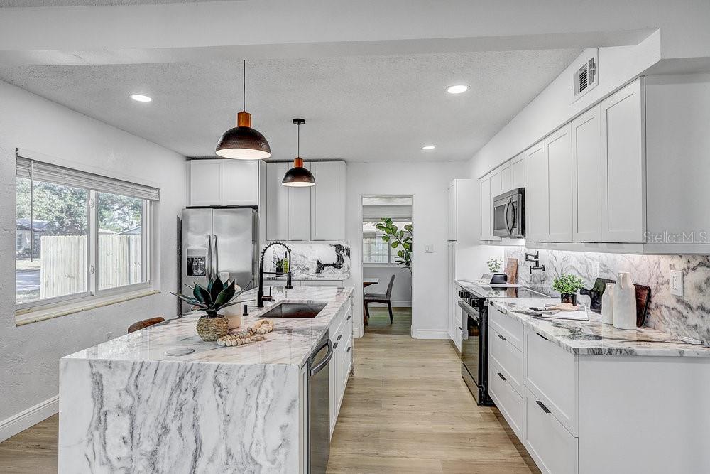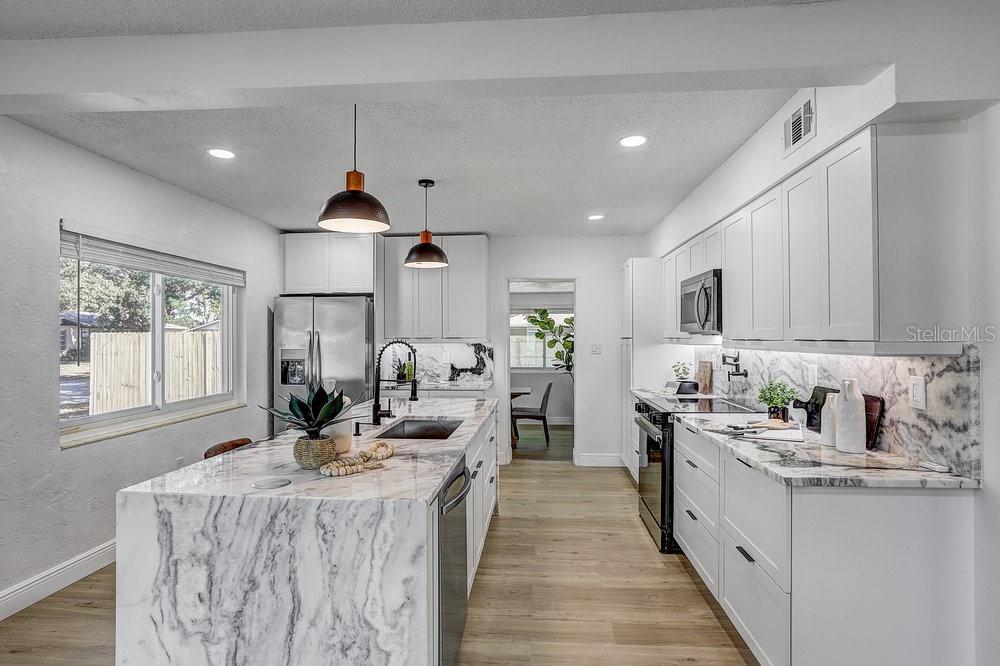 The seller will contribute 3% for the buyer's closing costs. Beautifully Updated Corner Lot Block Home with No HOA! Welcome to this move-in ready 3-bedroom, 2-bathroom home situated on a spacious corner lot with no HOA! This solid block construction home offers peace of mind with a roof that's only 7 years old, brand new A/C, updated electrical panel, and impact windows throughout. Step inside to find fresh paint inside and out, new baseboards, new doors, and stylish new lighting throughout. The heart of the home is the custom-designed kitchen, featuring a large island, brand new stainless steel appliances, under-cabinet lighting, and a convenient pot filler—a perfect blend of function and luxury. Both bathrooms have been fully renovated with custom tile work, new vanities, mirrors, updated lighting, and new toilets. The primary suite includes a luxurious rain shower with a handheld sprayer, offering a true spa-like experience. Step outside to your private backyard oasis, complete with a brand new privacy fence, covered porch, large storage shed, and a mature shade tree—ideal for relaxing or entertaining. Located just a 15-minute drive to the beach, this home combines modern upgrades, comfort, and convenience—all with no HOA and no restrictions. Don’t miss this move-in ready gem!