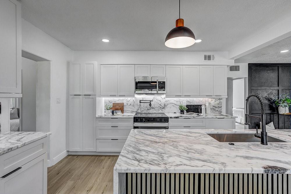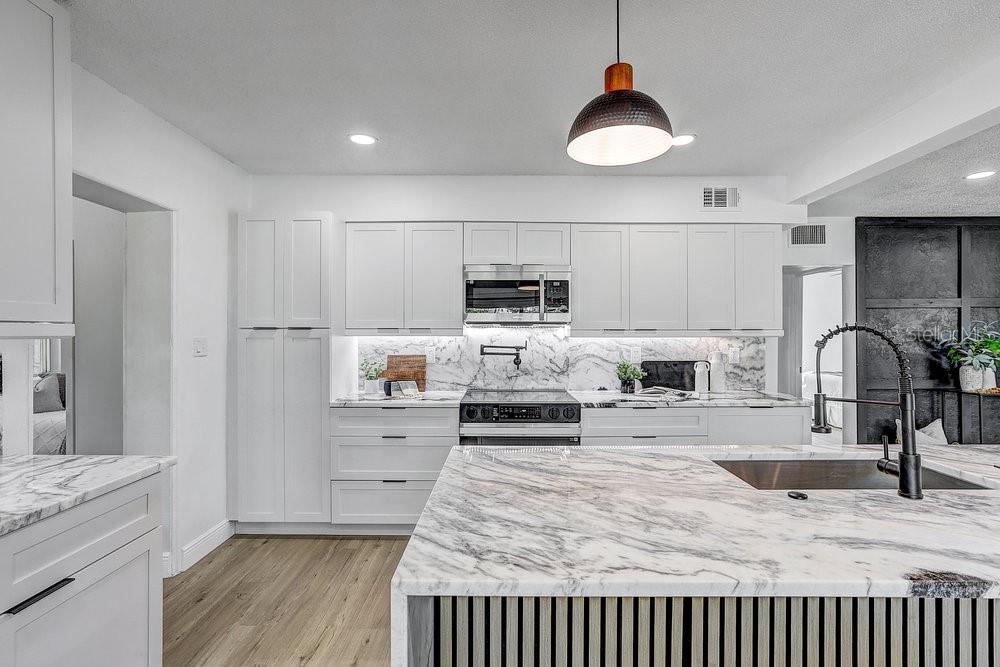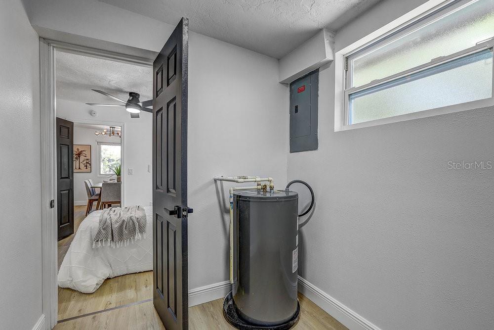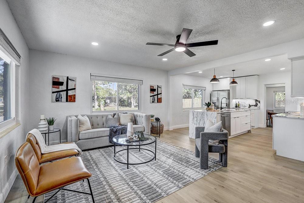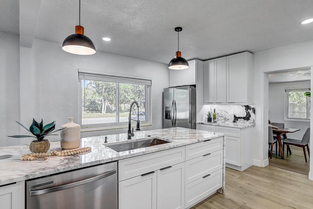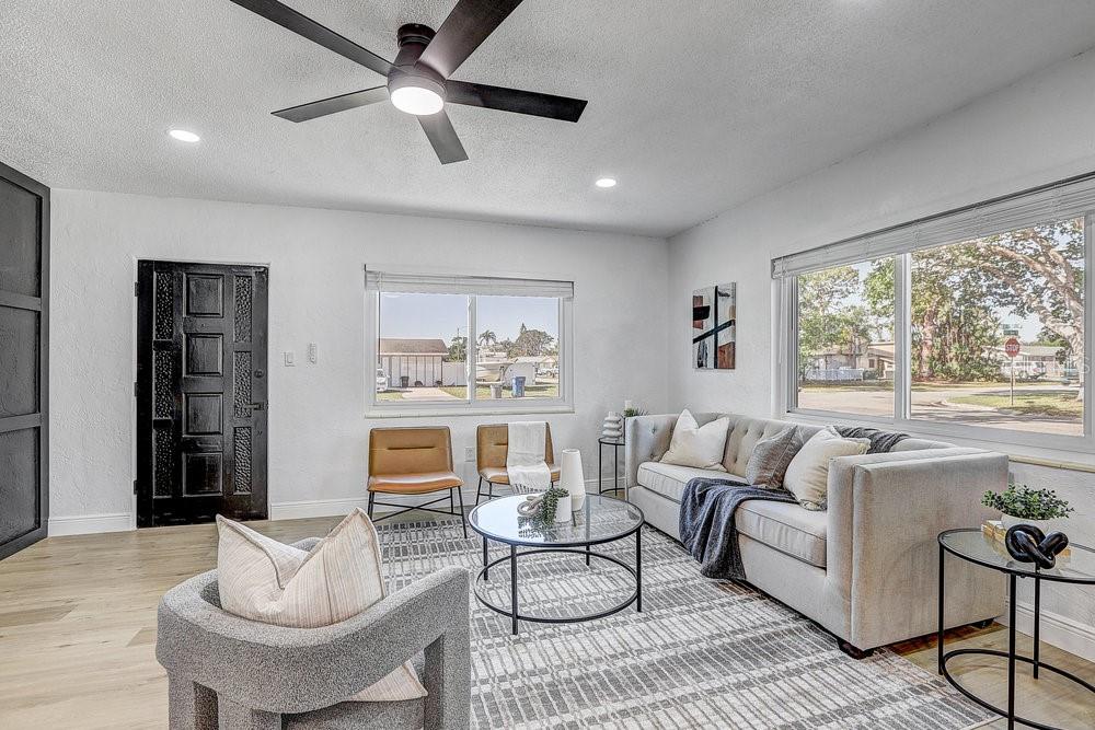 The seller will contribute 3% for the buyer's closing costs. Beautifully Updated Corner Lot Block Home with No HOA! Welcome to this move-in ready 3-bedroom, 2-bathroom home situated on a spacious corner lot with no HOA! This solid block construction home offers peace of mind with a roof that's only 7 years old, brand new A/C, updated electrical panel, and impact windows throughout. Step inside to find fresh paint inside and out, new baseboards, new doors, and stylish new lighting throughout. The heart of the home is the custom-designed kitchen, featuring a large island, brand new stainless steel appliances, under-cabinet lighting, and a convenient pot filler—a perfect blend of function and luxury. Both bathrooms have been fully renovated with custom tile work, new vanities, mirrors, updated lighting, and new toilets. The primary suite includes a luxurious rain shower with a handheld sprayer, offering a true spa-like experience. Step outside to your private backyard oasis, complete with a brand new privacy fence, covered porch, large storage shed, and a mature shade tree—ideal for relaxing or entertaining. Located just a 15-minute drive to the beach, this home combines modern upgrades, comfort, and convenience—all with no HOA and no restrictions. Don’t miss this move-in ready gem!