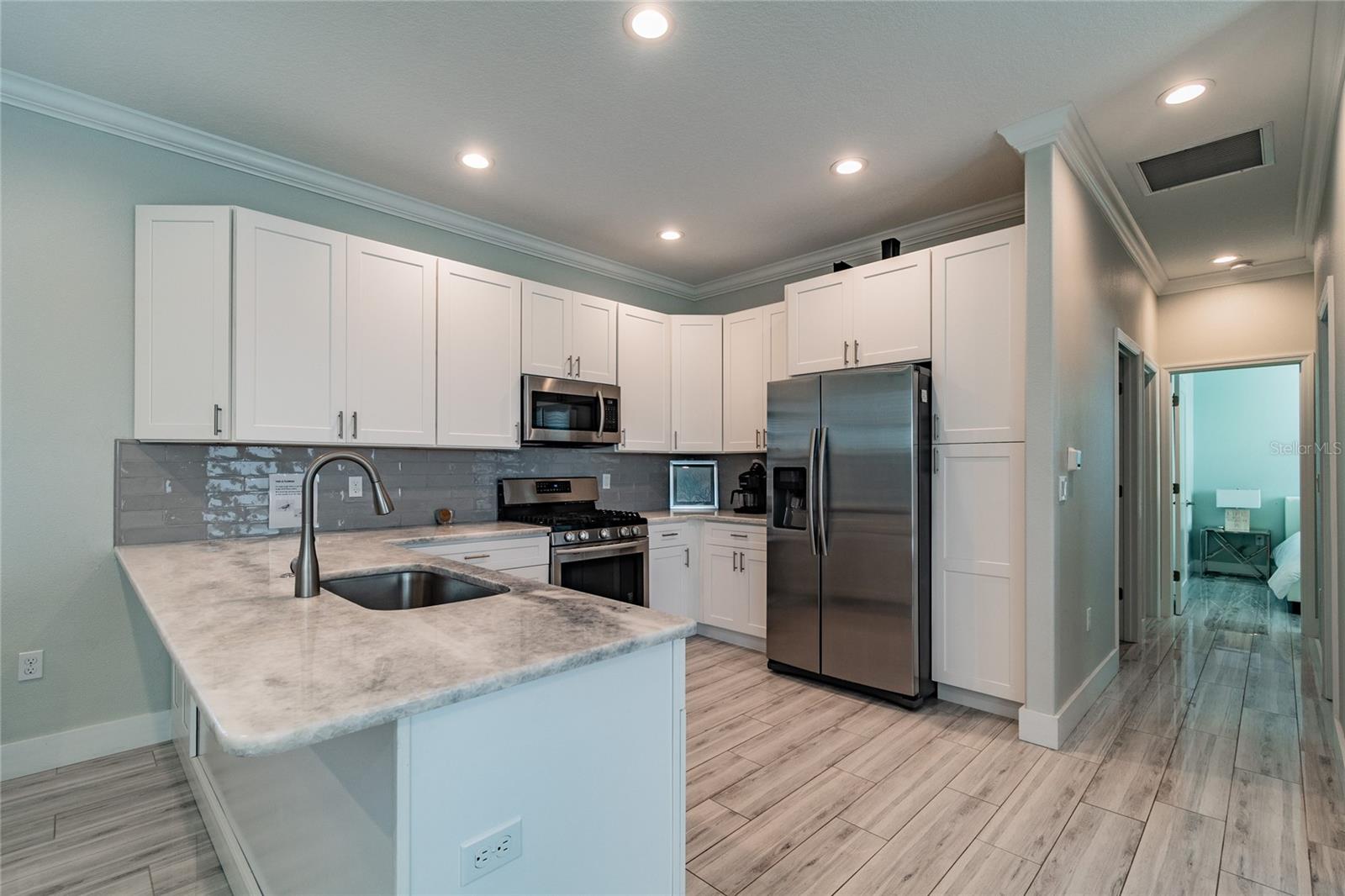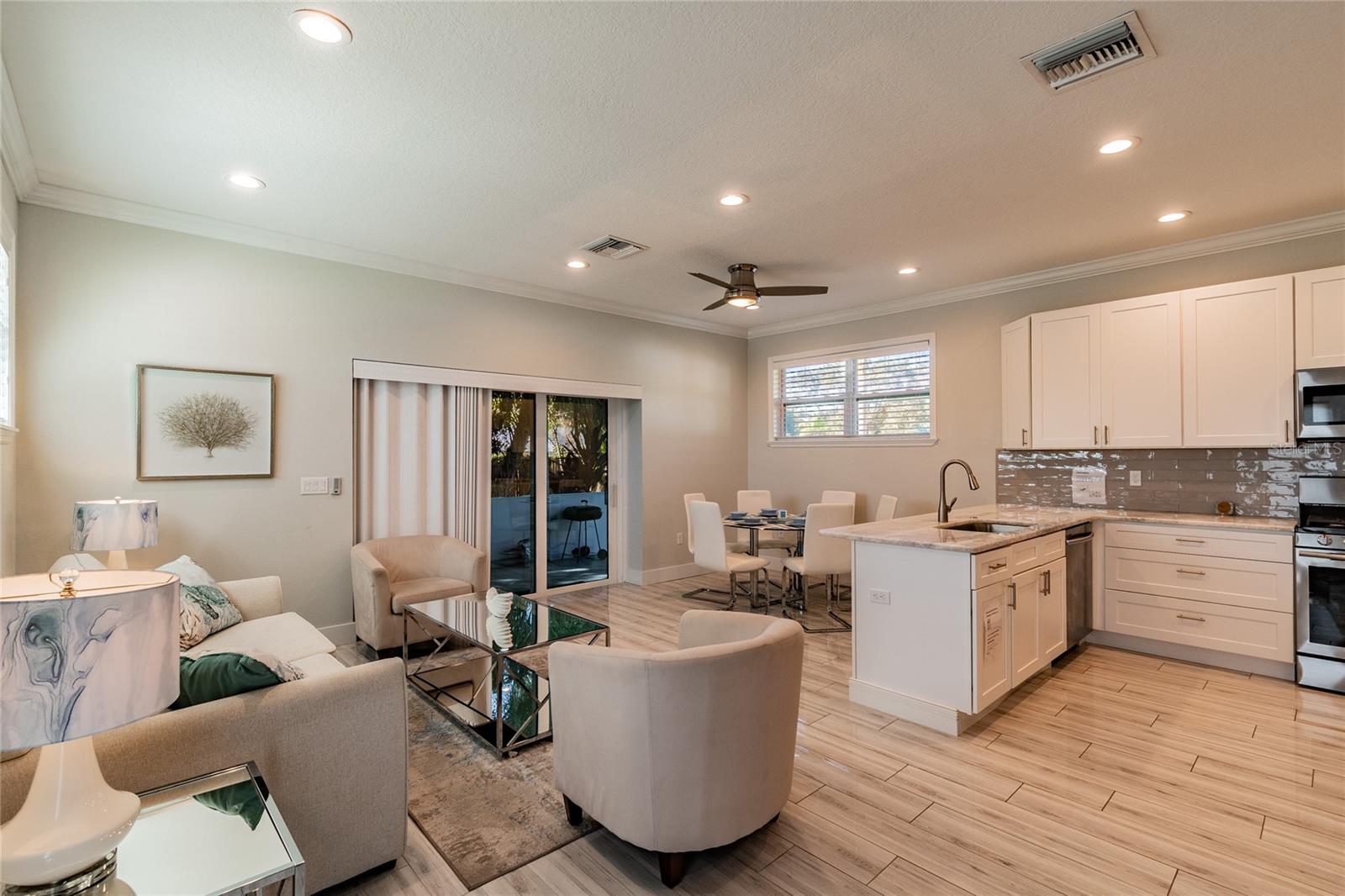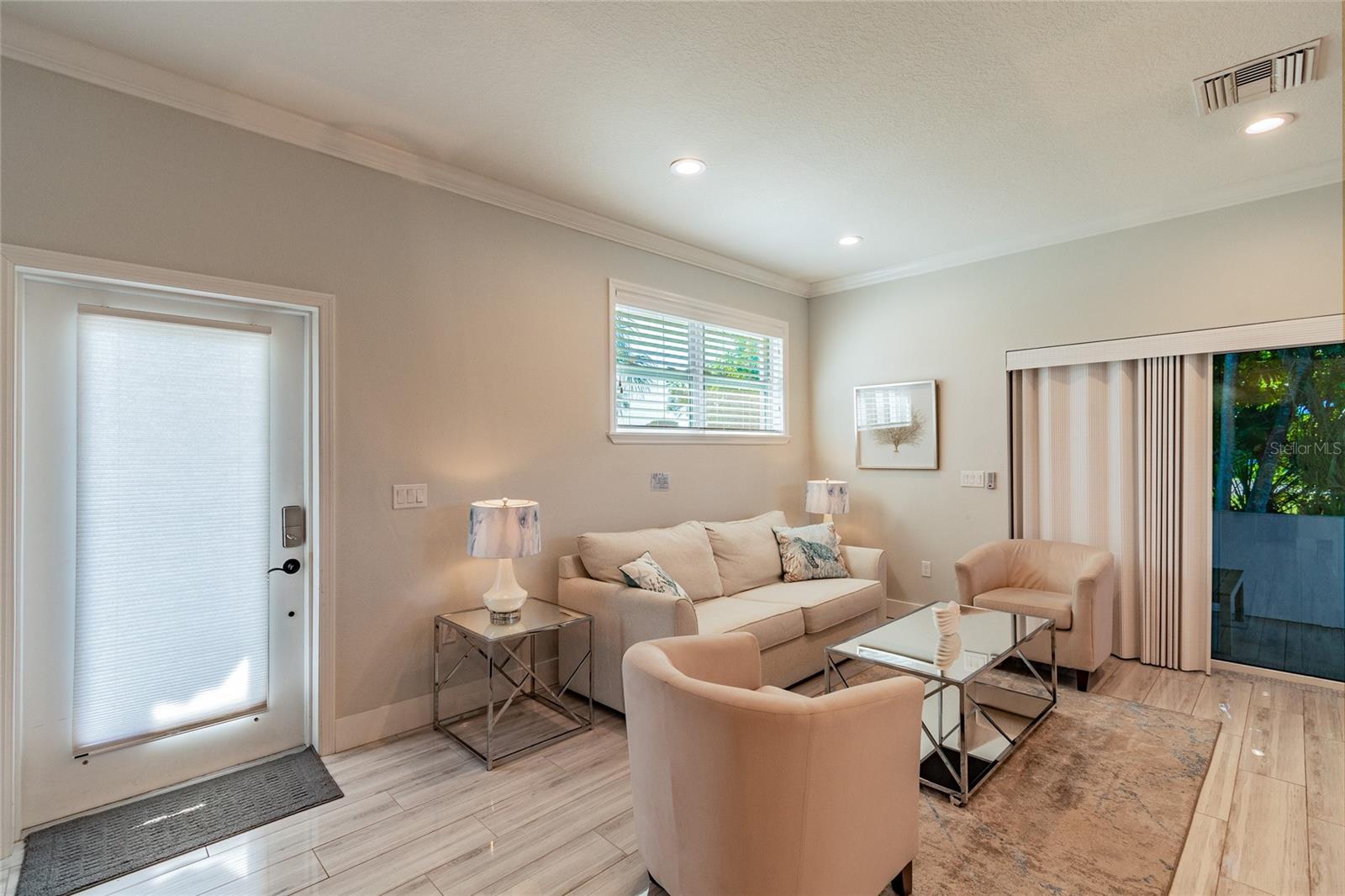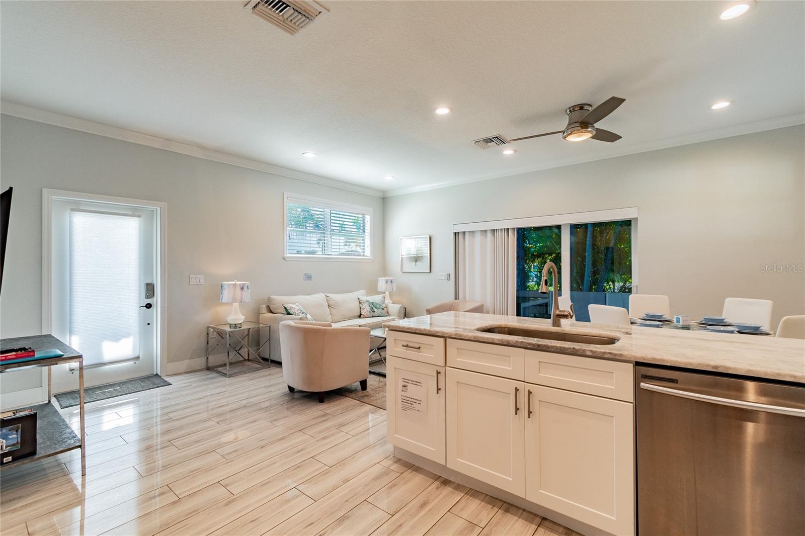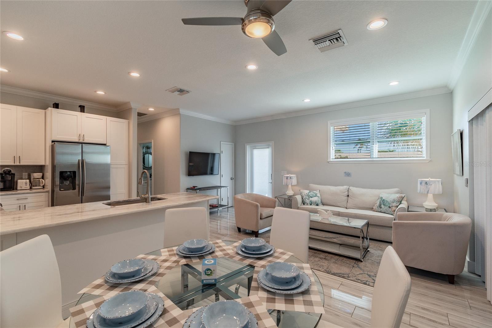 Welcome to your coastal dream retreat — a stunning 2018-built concrete block bungalow located less than 5 miles from the world-renowned Anna Maria Island! Nestled in one of Bradenton’s most desirable pockets, this 2-bedroom, 1-bath home is the perfect blend of beachy elegance and modern comfort. From the gleaming wood-look porcelain tile floors to the impact-rated windows and upgraded metal roof, every inch of this home was built to impress. The open-concept kitchen and living area flow beautifully, highlighted by quartz countertops, a 10-ft island with seating for six, Samsung stainless appliances (including a gas range and oven), soft-close shaker cabinets, and crown molding. Whether you're relaxing in the sun-drenched great room or enjoying morning coffee in the screened-in lanai, this space was made for laid-back Florida living. The spacious bedrooms are tucked away for privacy, and the luxurious spa-style bathroom features a walk-in shower with custom niche and tile detailing. Step outside to a fully fenced backyard on an oversized lot—perfect for a future pool, fire pit, or outdoor kitchen. Use it as your personal escape or continue operating it as a successful short-term rental (financials available). Offered fully furnished for $5K — just bring your suitcase! Located just minutes from Holmes Beach, Historic Bridge Street, Palma Sola Causeway, sunset boat tours, dolphin sightings, and top dining in Bradenton, Sarasota, and St. Pete. This is the Florida lifestyle you’ve been waiting for — turnkey, luxurious, and near everything. Don't miss your chance to own a slice of paradise!