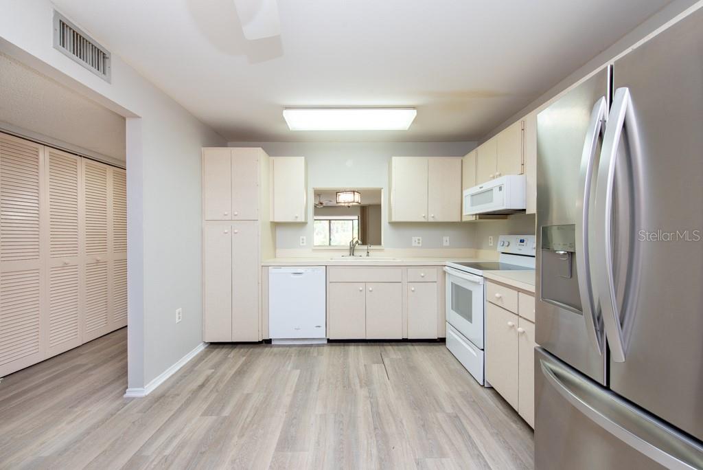 Enjoy and experience the relaxed Florida lifestyle in this charming 2-bedroom, 2-bathroom condo nestled in the heart of Bradenton. Boasting a generous 1408 square feet of living space, this first-floor unit offers both convenience and comfort. Updates abound throughout the home, with a new A/C unit installed in 2022, along with a new electrical panel, appliances, and water heater within the last two years. With a designated carport providing convenient parking and the allure of community amenities just steps away, this condo presents an unparalleled opportunity for those seeking a serene yet vibrant lifestyle in Bradenton, Florida. Upon entering, you'll be greeted by a warm and inviting ambiance, accentuated by laminate flooring that flows seamlessly throughout the residence. The kitchen features a ceiling fan, ample storage cabinets, a closet pantry, and a convenient laundry closet, all complemented by an eating space. The spacious living room provides an ideal setting for both relaxation and entertaining, with quick access to the front porch and a large glass-enclosed lanai. Step outside onto the lanai to be greeted by picturesque views of lush trees, a tranquil garden, and the sparkling community pool area. The master suite is a sanctuary of comfort, boasting a walk-in closet, an ensuite bath with tub and shower combo, and a single vanity. An additional bedroom and bathroom offer flexibility and privacy for guests or family members. Don't miss the opportunity; schedule your showing today!