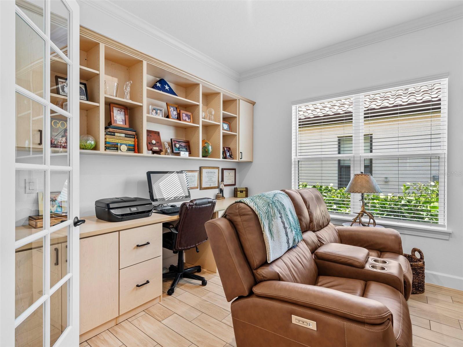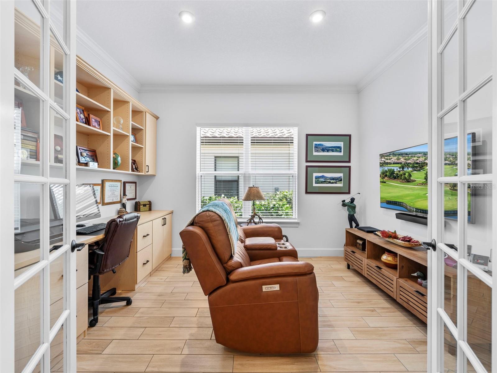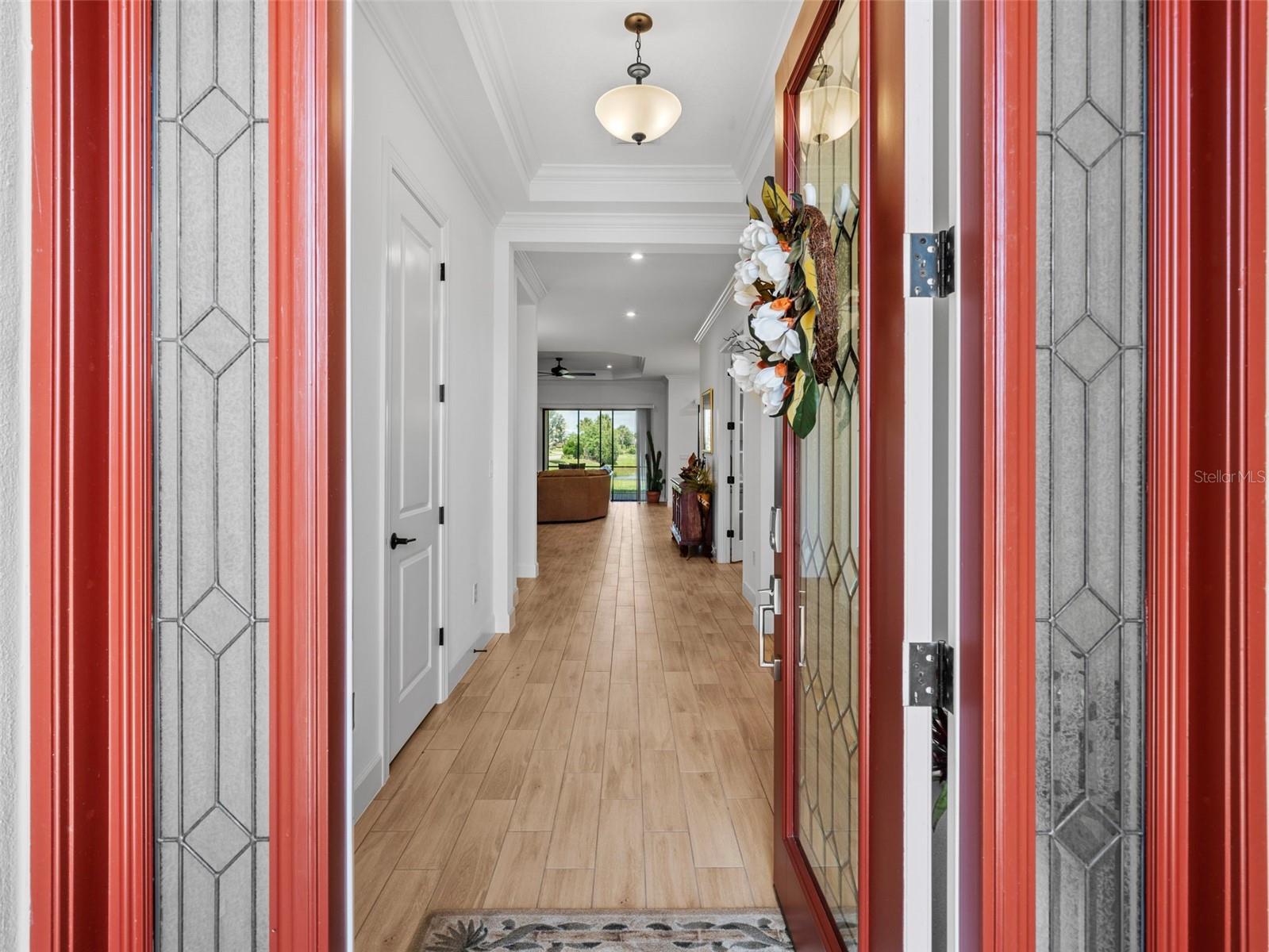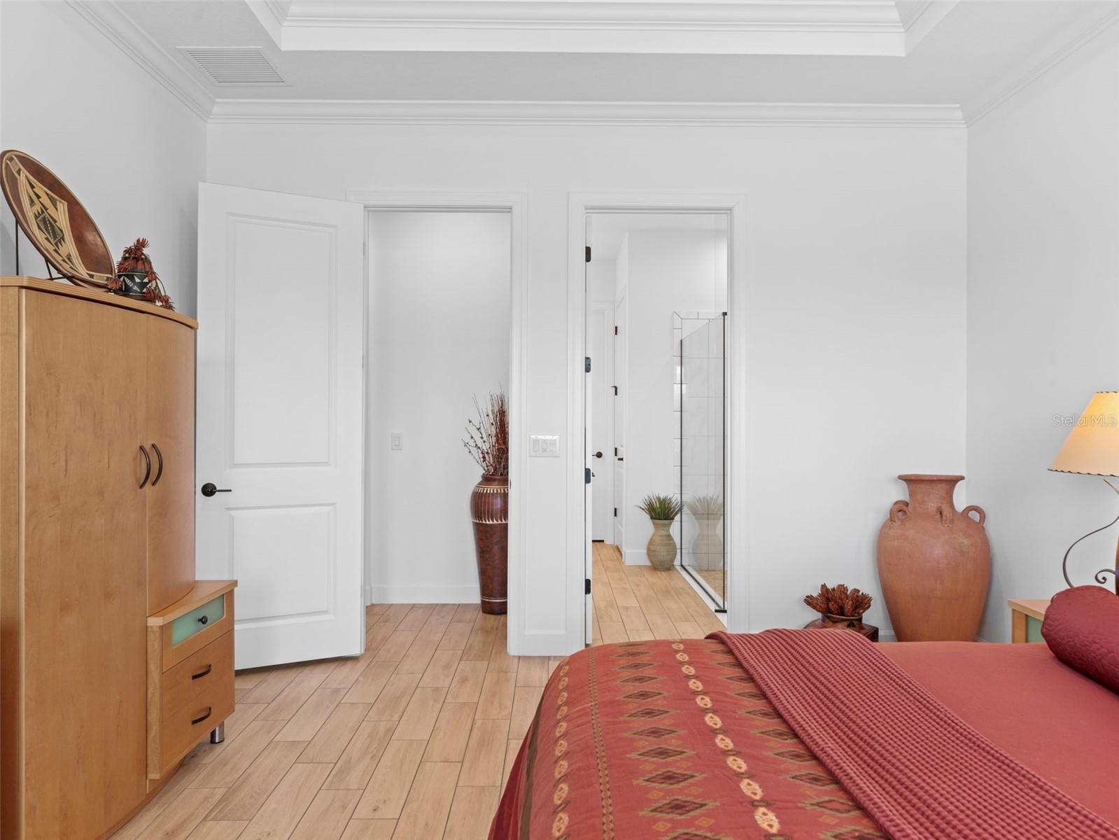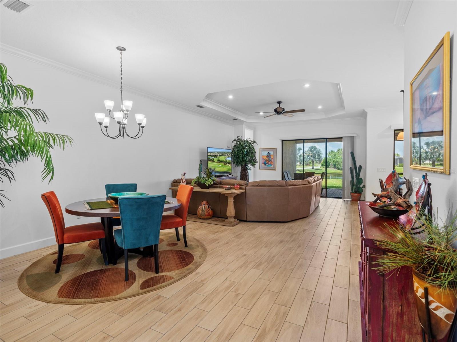 Welcome to Southwest Florida's premier community, Esplanade Azario, where luxury meets comfort in the highly acclaimed Lazio floor plan. Positioned on a tranquil lake-view lot, this beautifully landscaped residence embodies modern elegance and a relaxed lifestyle. Upon entry, discover the inviting ambiance created by high tray ceilings, crown molding, expansive 10-foot ceilings, and porcelain tile throughout. The centerpiece of the home is the gourmet kitchen, complete with maple cabinets, upgraded GE appliances, quartz countertops, upgraded cabinet drawers, extra knee high cabinets in the island, and a gas cooktop with a hood—an ideal space for both cooking and entertaining. The primary bedroom offers a serene escape with its bay window framing picturesque lake views. Its ensuite bathroom features a walk-in shower with an additional shower head, dual vanities, and a spacious walk-in closet. Two additional guest rooms, each with their own bathrooms featuring walk-in showers, ensure privacy and comfort for family and guests. A versatile den/office with French doors, complemented by a built-in desk and storage cabinets, provides a perfect retreat for work or relaxation. Step out onto the fully extended covered lanai to discover a full outdoor kitchen, a cozy gas fireplace, and breathtaking lake vistas—an ideal setting for outdoor gatherings and relaxation. Additional features include a well-appointed laundry room with upgraded cabinets and a sink, a 2-car garage with an additional 4-foot storage space, and extra storage racks, and landscape lighting. Esplanade Azario offers a wealth of resort-style amenities including a pool, Tiki Bar, Culinary Center, fitness facilities, spa services, tennis and pickleball courts, bocce ball courts, and dog parks. A dedicated Lifestyle Director ensures a vibrant community with activities for every interest. Experience the epitome of luxury living at Esplanade Azario. Schedule your private tour today and envision the exceptional lifestyle awaiting you in this remarkable home.