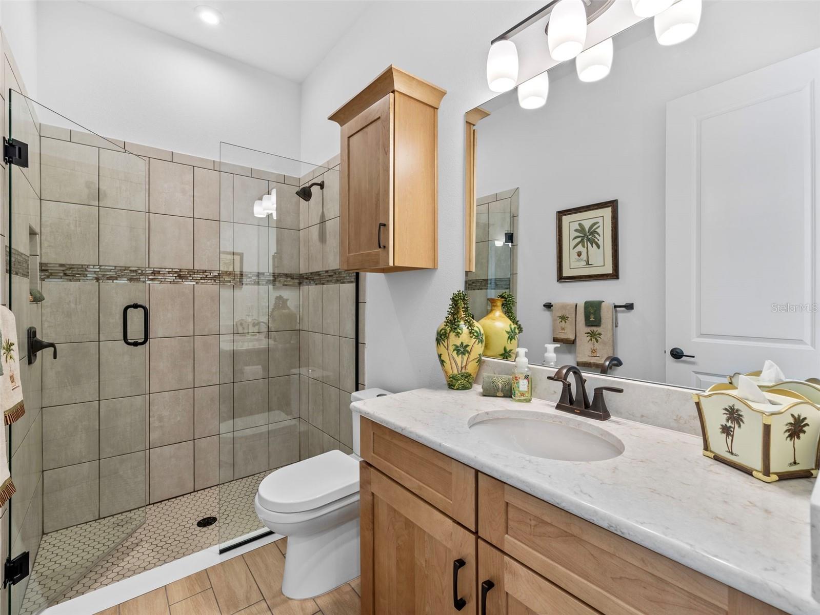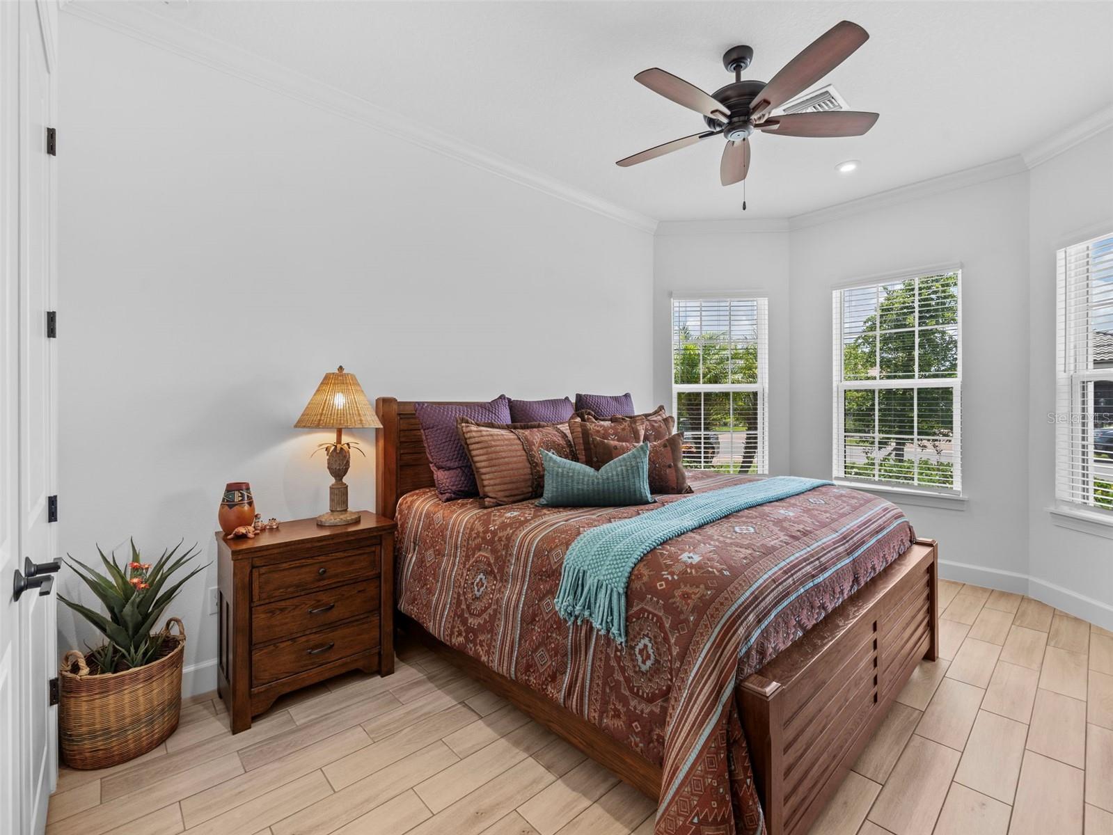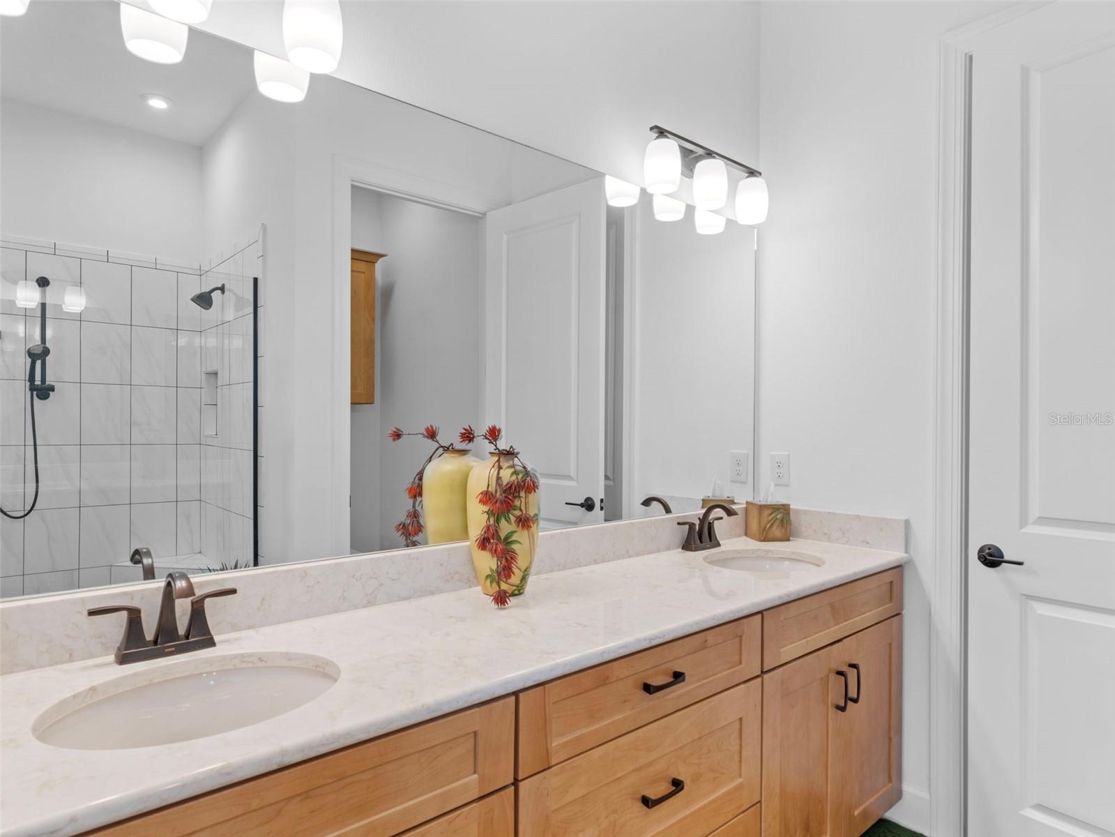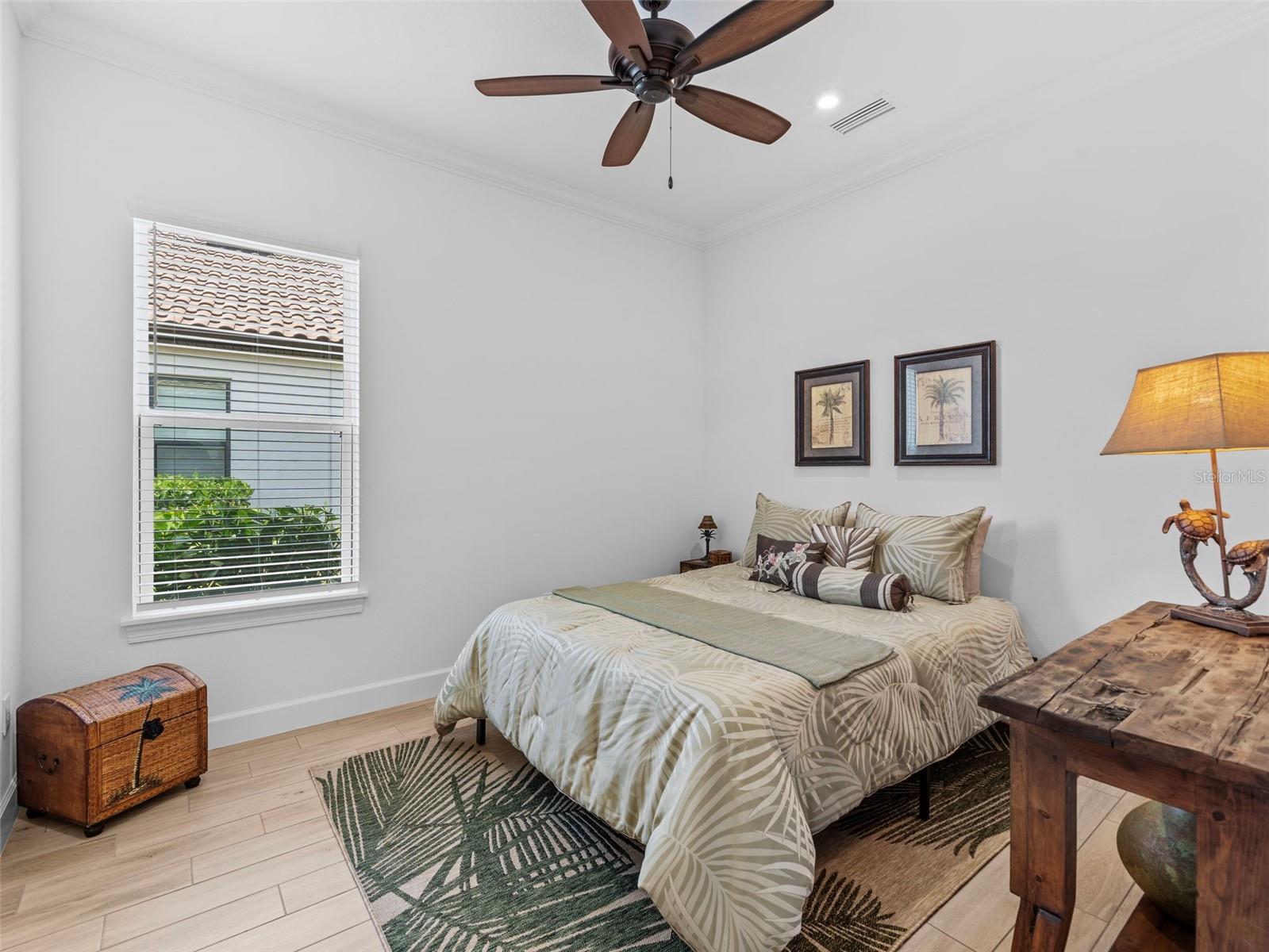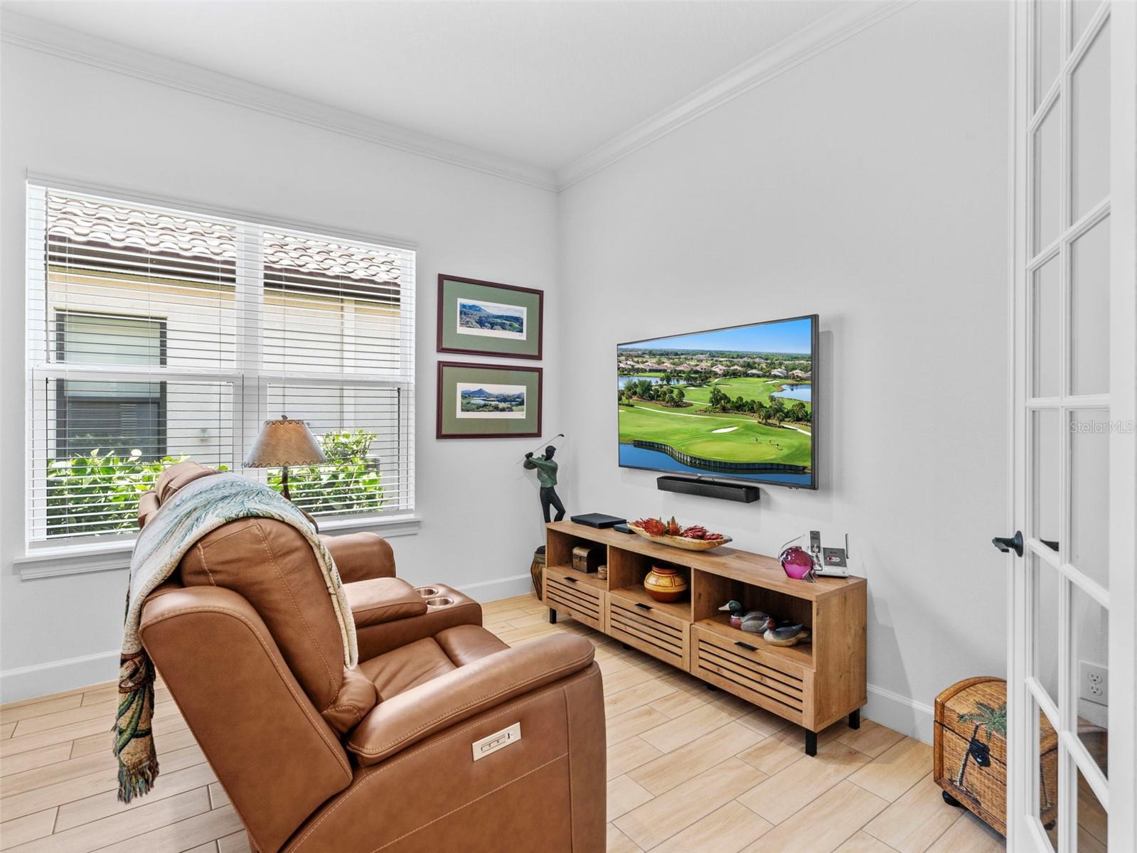 Welcome to Southwest Florida's premier community, Esplanade Azario, where luxury meets comfort in the highly acclaimed Lazio floor plan. Positioned on a tranquil lake-view lot, this beautifully landscaped residence embodies modern elegance and a relaxed lifestyle. Upon entry, discover the inviting ambiance created by high tray ceilings, crown molding, expansive 10-foot ceilings, and porcelain tile throughout. The centerpiece of the home is the gourmet kitchen, complete with maple cabinets, upgraded GE appliances, quartz countertops, upgraded cabinet drawers, extra knee high cabinets in the island, and a gas cooktop with a hood—an ideal space for both cooking and entertaining. The primary bedroom offers a serene escape with its bay window framing picturesque lake views. Its ensuite bathroom features a walk-in shower with an additional shower head, dual vanities, and a spacious walk-in closet. Two additional guest rooms, each with their own bathrooms featuring walk-in showers, ensure privacy and comfort for family and guests. A versatile den/office with French doors, complemented by a built-in desk and storage cabinets, provides a perfect retreat for work or relaxation. Step out onto the fully extended covered lanai to discover a full outdoor kitchen, a cozy gas fireplace, and breathtaking lake vistas—an ideal setting for outdoor gatherings and relaxation. Additional features include a well-appointed laundry room with upgraded cabinets and a sink, a 2-car garage with an additional 4-foot storage space, and extra storage racks, and landscape lighting. Esplanade Azario offers a wealth of resort-style amenities including a pool, Tiki Bar, Culinary Center, fitness facilities, spa services, tennis and pickleball courts, bocce ball courts, and dog parks. A dedicated Lifestyle Director ensures a vibrant community with activities for every interest. Experience the epitome of luxury living at Esplanade Azario. Schedule your private tour today and envision the exceptional lifestyle awaiting you in this remarkable home.