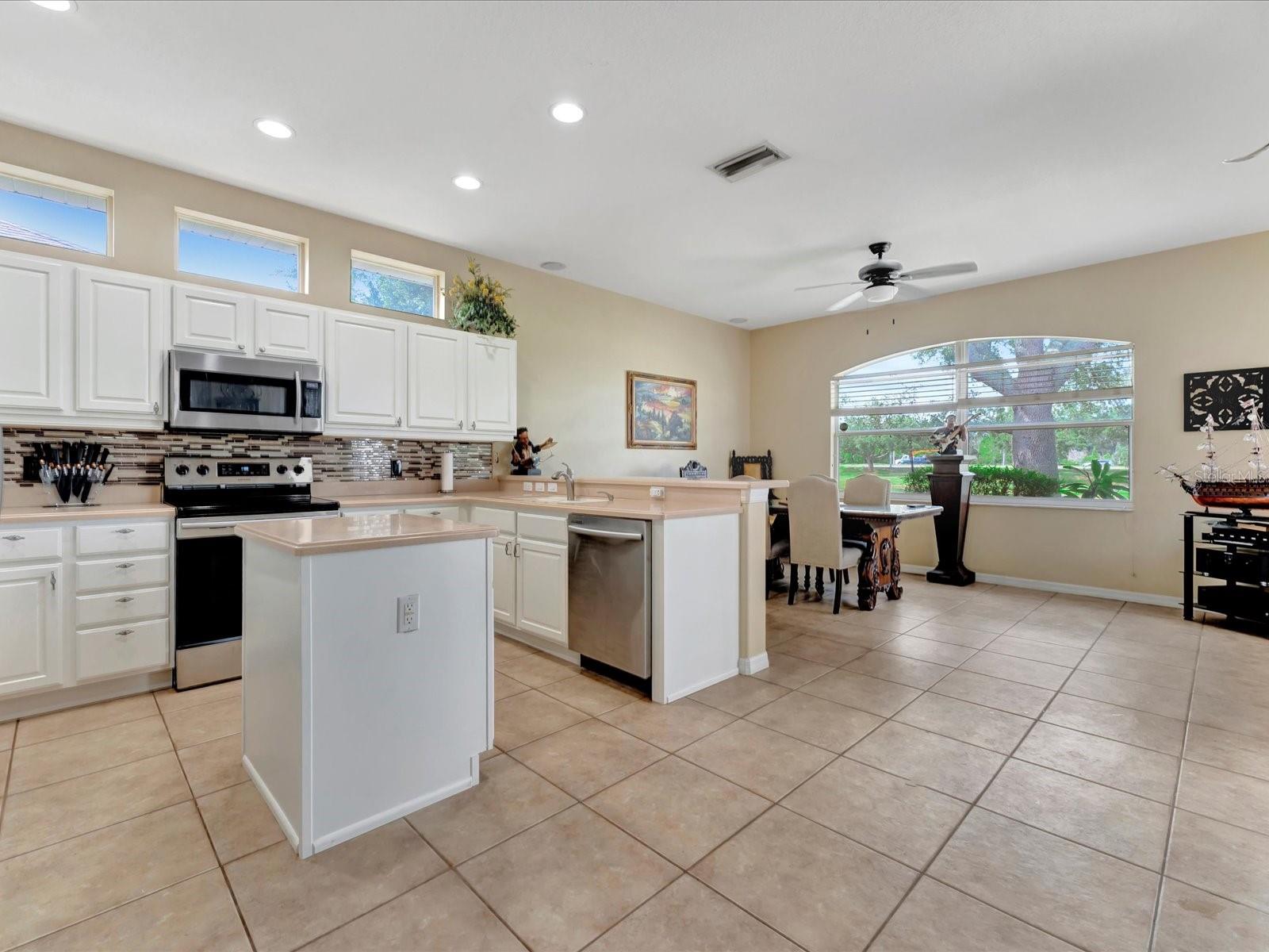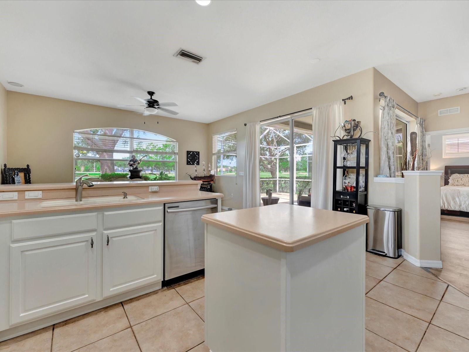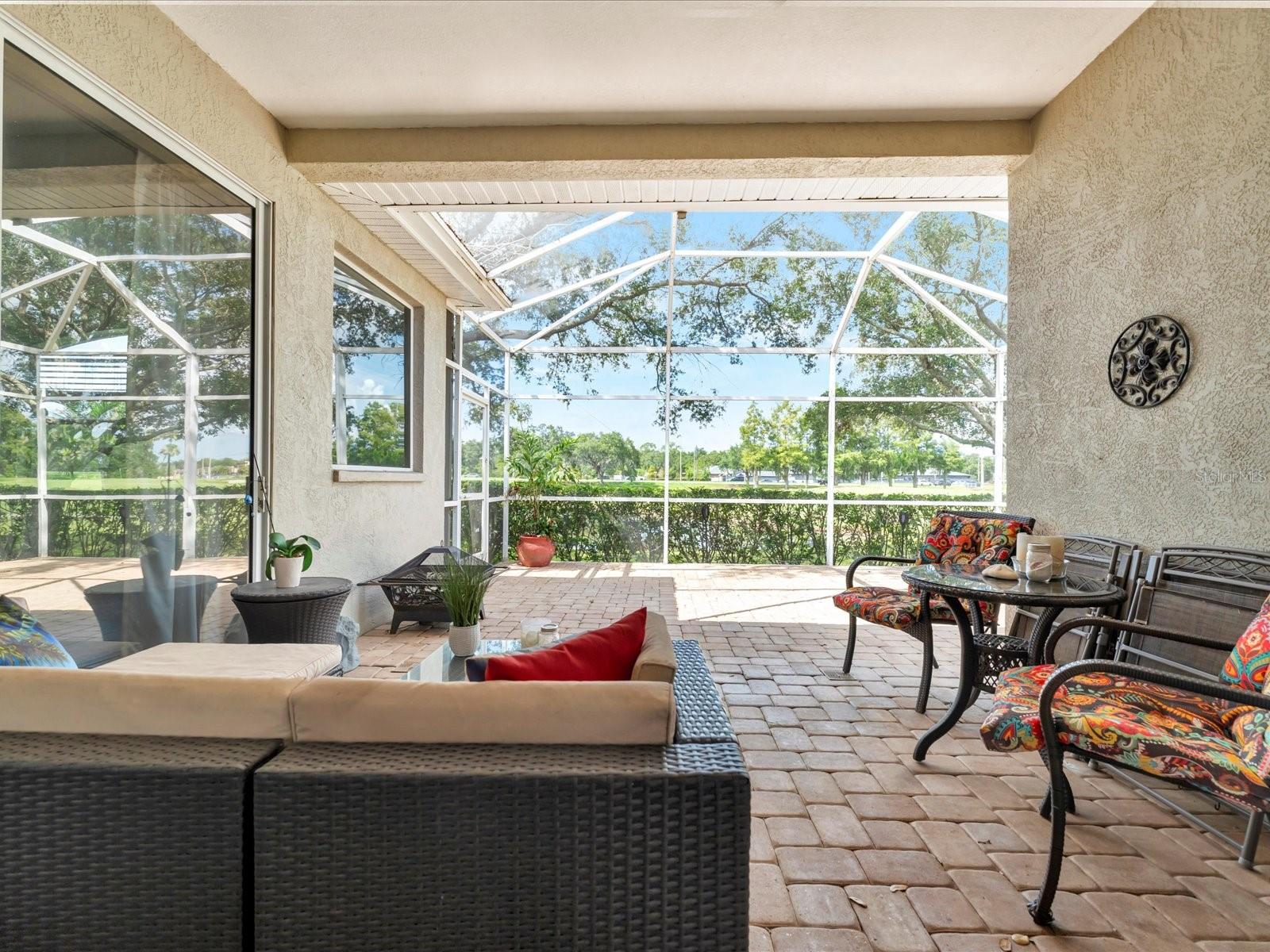 BACK ON THE MARKET WITH A NEW PRICE! Welcome to 1410 Millbrook Circle, nestled in the desirable Greenfield Plantation golf course community. The lush landscaping and manicured lawn provide amazing curb appeal, inviting you into this charming 3-bedroom, 2-bath home with a spacious 2-car garage. Spanning just under 1,800 square feet, the open floor plan is perfect for entertaining guests and family alike. The heart of this home is the spacious kitchen, featuring 2018 stainless steel appliances, a center island, and ample counter space, seamlessly overlooking the dining and living rooms. Whether you're a gourmet chef or a casual cook, this kitchen is designed to meet all your culinary needs. You can even switch the electric cook top out for a gas stove, as the home is equipped with a gas line. The home is also wired for surround sound, allowing for an immersive entertainment experience. Off the living area, discover a versatile bonus room with a Murphy bed, perfect for an office, guest room, or hobby space. The primary suite is an oasis complete with plantation shutters, a spacious walk-in closet, and a private en-suite featuring a luxurious garden tub and a walk-in shower. Step outside to the screened-in back patio with recently re-sealed pavers, and soak in the beautiful views of the Links golf course. This serene outdoor space is perfect for morning coffees or evening relaxation. Low HOA fees cover lawn care, grounds maintenance, and access to the community pool, providing ease and convenience. Recent updates enhance the home's appeal, including a newer A/C (2018), a new water heater (2023), recently re-tiled guest bath and shower, resealed patio pavers (2023), a newer roof (2017), fresh interior paint, and exterior paint from 2019. Conveniently located near Lakewood Ranch, Sarasota, and Anna Maria Island, this home offers the perfect blend of comfort and convenience. Schedule your showing today!