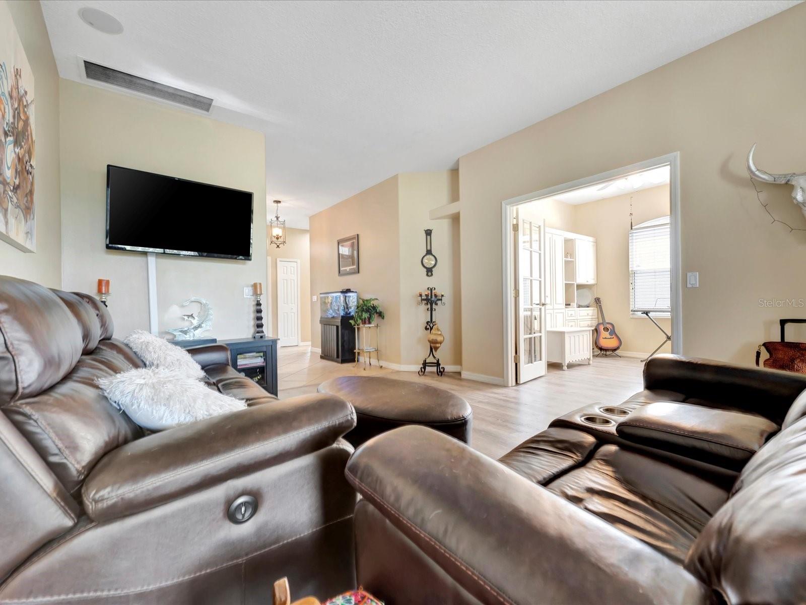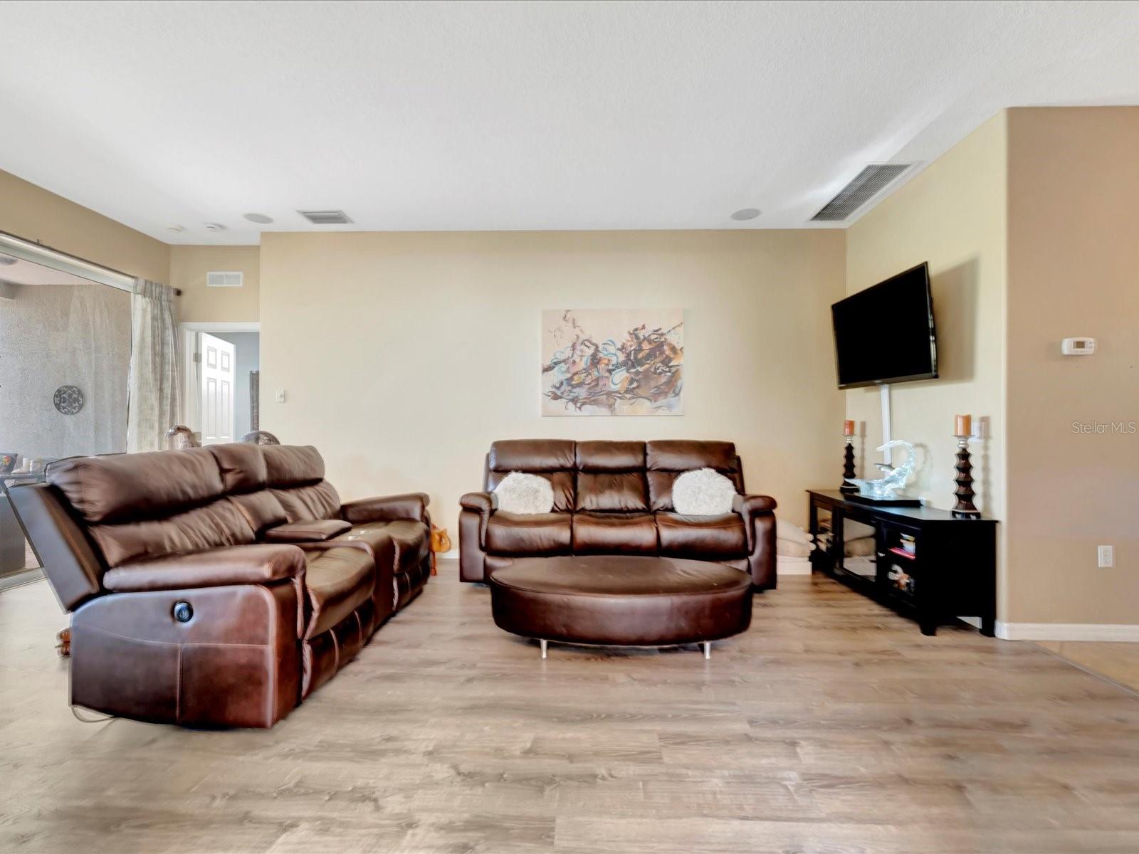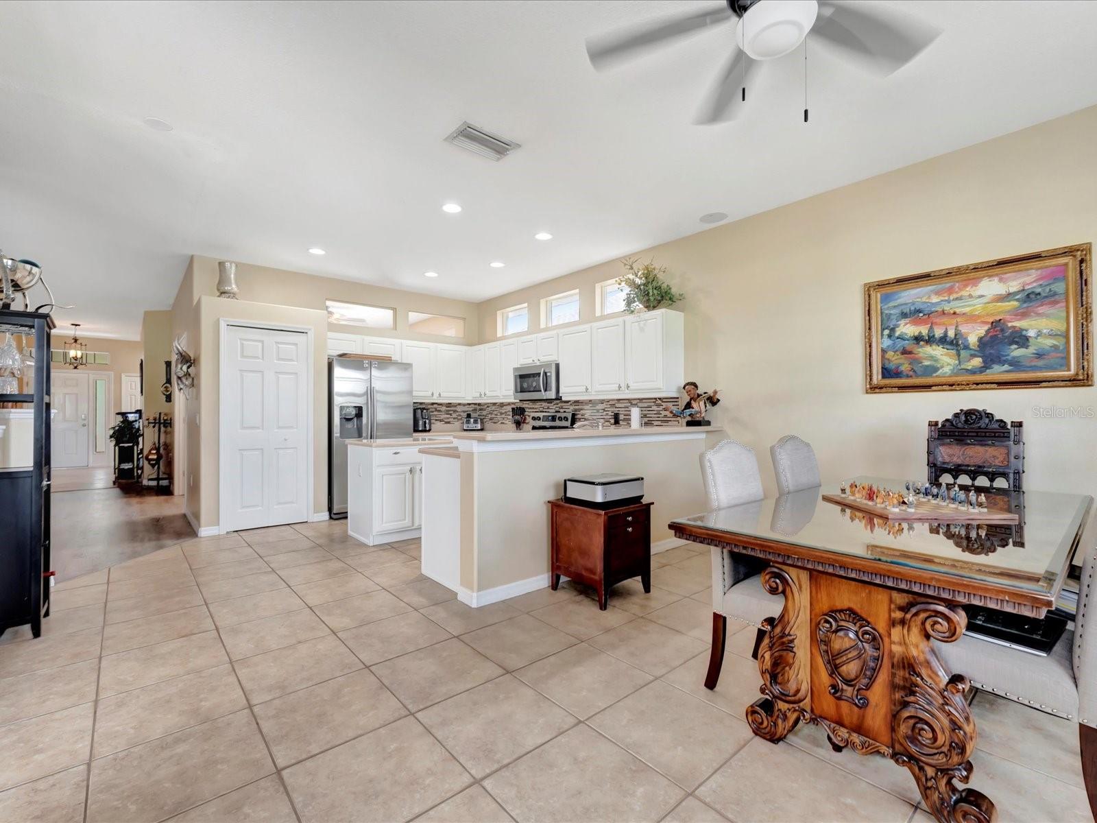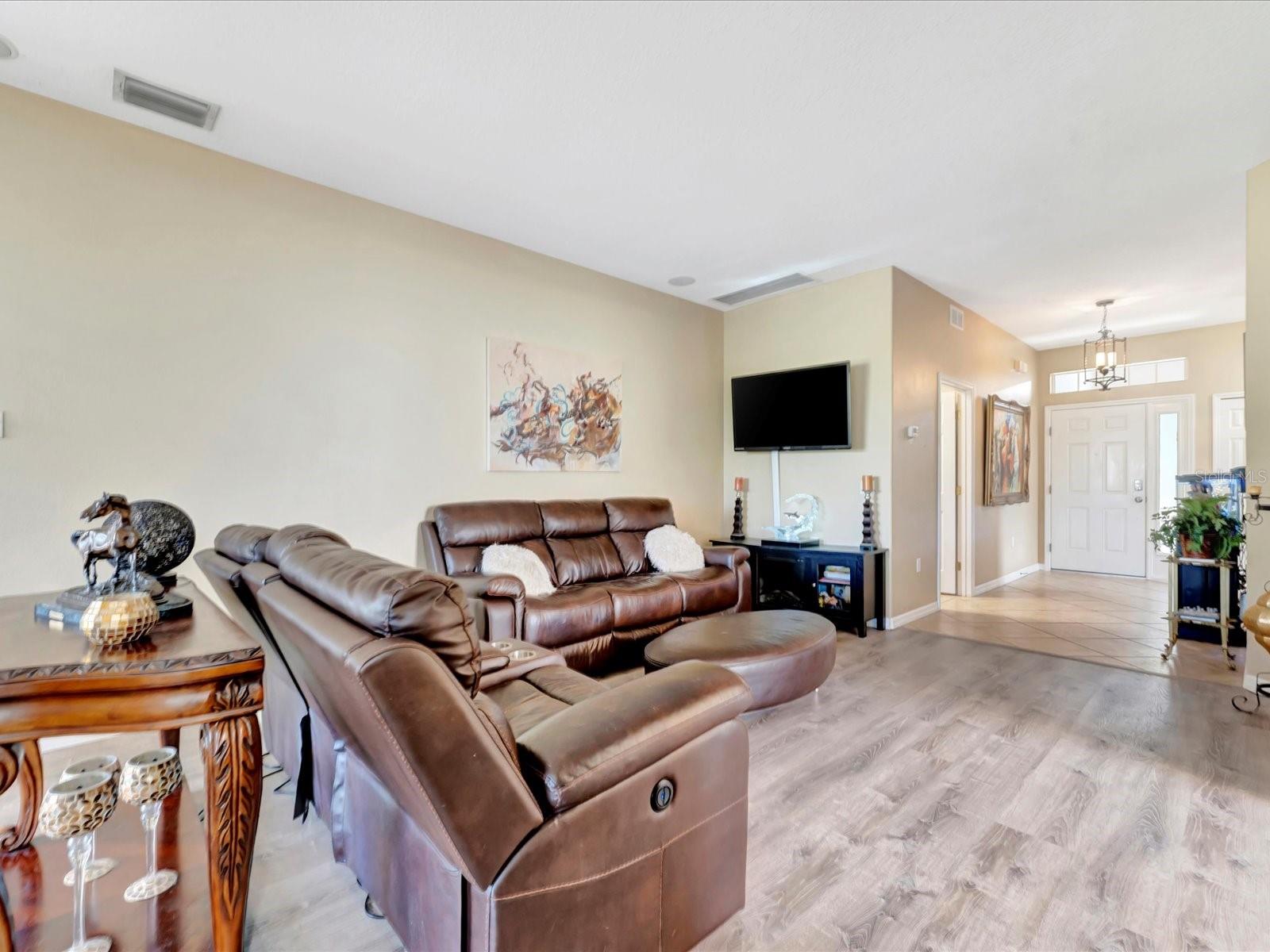 BACK ON THE MARKET WITH A NEW PRICE! Welcome to 1410 Millbrook Circle, nestled in the desirable Greenfield Plantation golf course community. The lush landscaping and manicured lawn provide amazing curb appeal, inviting you into this charming 3-bedroom, 2-bath home with a spacious 2-car garage. Spanning just under 1,800 square feet, the open floor plan is perfect for entertaining guests and family alike. The heart of this home is the spacious kitchen, featuring 2018 stainless steel appliances, a center island, and ample counter space, seamlessly overlooking the dining and living rooms. Whether you're a gourmet chef or a casual cook, this kitchen is designed to meet all your culinary needs. You can even switch the electric cook top out for a gas stove, as the home is equipped with a gas line. The home is also wired for surround sound, allowing for an immersive entertainment experience. Off the living area, discover a versatile bonus room with a Murphy bed, perfect for an office, guest room, or hobby space. The primary suite is an oasis complete with plantation shutters, a spacious walk-in closet, and a private en-suite featuring a luxurious garden tub and a walk-in shower. Step outside to the screened-in back patio with recently re-sealed pavers, and soak in the beautiful views of the Links golf course. This serene outdoor space is perfect for morning coffees or evening relaxation. Low HOA fees cover lawn care, grounds maintenance, and access to the community pool, providing ease and convenience. Recent updates enhance the home's appeal, including a newer A/C (2018), a new water heater (2023), recently re-tiled guest bath and shower, resealed patio pavers (2023), a newer roof (2017), fresh interior paint, and exterior paint from 2019. Conveniently located near Lakewood Ranch, Sarasota, and Anna Maria Island, this home offers the perfect blend of comfort and convenience. Schedule your showing today!