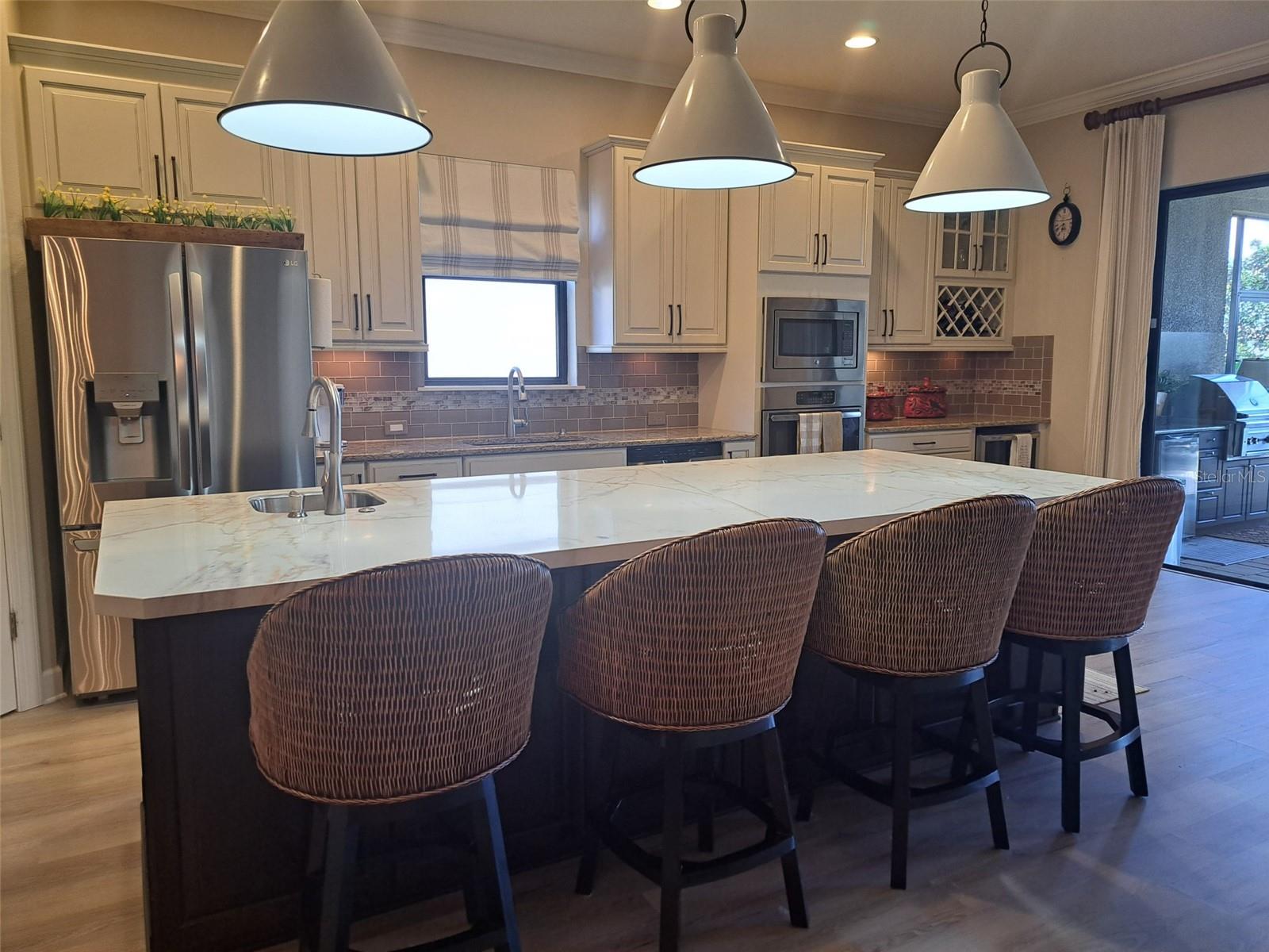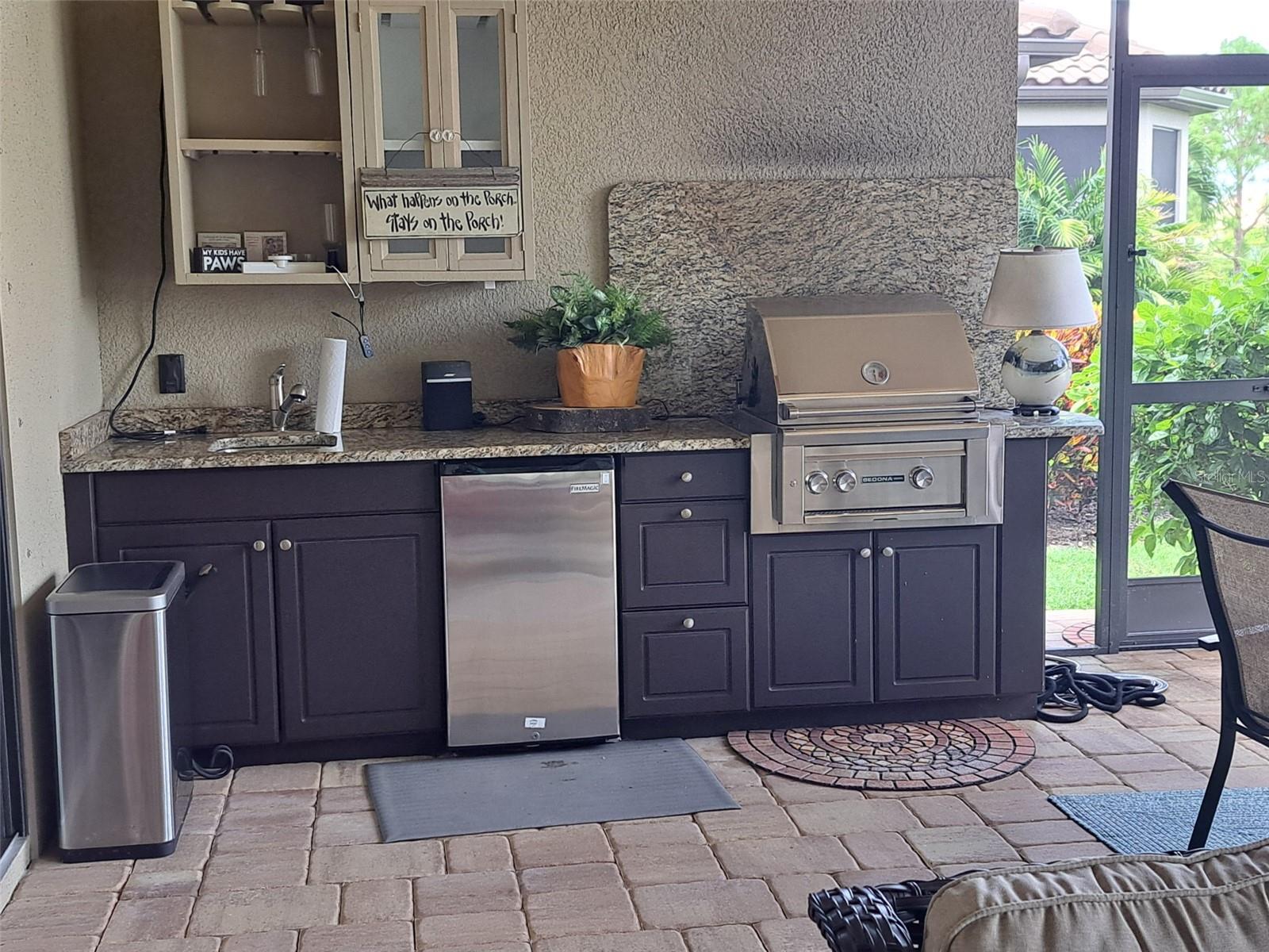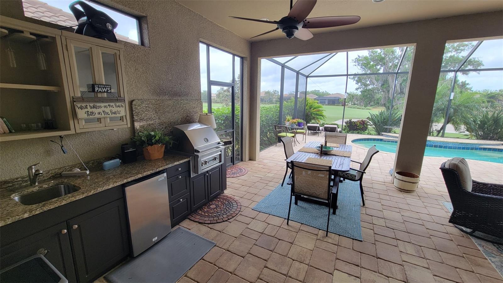 Taylor Morrisons most popular floor plan - 'Lazio' ... Lawn care included in HOA This home is an extended 'Lazio' 2400 sq/ft .. with pool & outdoor kitchen, Full Golf Membership, bay windows in front & back, extended kitchen, extended lanai(facing north for optimal usage year round!), & extended insulated garage(has plenty of space for 2 cars + golf cart, also has epoxy floor and 2 large overhead storage units .) Enjoy the convenience and luxury of living in a master-planned golf community, known for its exceptional amenities and also built hurricane-proof! Lakewood Ranch has been recognized as the #1 community for seven consecutive years. Esplanade Golf & Country Club presents a range of recreational options including an 18-hole championship golf course, pro shop, 6 lighted Har-Tru tennis courts, 8 lighted pickleball courts , Bocce Ball, the Koquina Sand Spa, a staffed fitness center , casual dining by the pool, a fine dining restaurant, and 2 resort-style pools with hot tubs. This gated community ensures privacy and security, making it an ideal choice for your next home. This property not only provides resort amenities and comfort but also stands strong against the elements. (Did not lose electricity during recent hurricanes Helene and Milton!)
