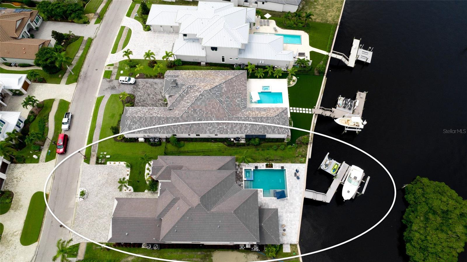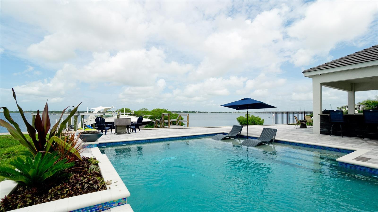 A modern architectural marvel perched on the edge of the Manatee River, offering unrivaled waterfront luxury and seamless indoor-outdoor living within the secluded community, The Reserve at Harbour Walk. The serenity of the morning sets the perfect tone for the day ahead. You start your day with a leisurely breakfast in the open-concept living area, where the chef's kitchen, with its top-of-the-line Dacor appliances, makes preparing meals a pleasure. As the day warms up, you go for a leisure swim in your pool or relax on the expansive sun deck. In the afternoon, you might entertain guests in the second-floor loft, complete with a fully stocked bar and pool table. The room is perfect for socializing, with enough space for everyone to relax and enjoy the luxurious surroundings. The sound of laughter and the clinking of glasses fill the air as you take in the panoramic views from every window. As the sun begins to set, you relax in the spa with a glass of wine. Finish the evening with a soothing bath in your generously sized free-standing tub or a shower using the 3 shower heads and 4 body jet Moen Spa system. You retire to your master suite, where the gentle sound of the water lulls you to sleep, already looking forward to tomorrow in your serene and luxurious retreat. This gorgeous home offers 5 generously-sized bedrooms, 4 full and 1 half bath, 3 living / entertainment areas, a dream kitchen with breakfast bar and extended island, formal dining room, separate office, and oversized 3-car garage with 9-foot door accommodate all your toys. The expansive driveway provides plenty of parking for the entire family and guests. The stunning backyard oasis offers a large pool with sun deck, waterfall, 2 fire bowls, LED lighting, and a 6-person spa. The dock includes a 20,000-pound boat lift, a 10,000-pound platform dual personal watercraft lift, fresh water supply and shore power for your yacht. In addition to the abundance of custom options, the home is ready for future customization such as whole-home generator, residential elevator, and garage mini split A/C units. What’s not to love with this waterfront paradise! The Reserve at Harbour Walk community is family friendly and a boater’s paradise with direct access to the Gulf of Mexico and Tampa Bay. The neighborhood amenities include a kayak launch, tennis courts, and a playground. The community is also in close proximity to I-75, UTC Mall, diverse restaurants, shopping, pristine beaches, and three major airports.