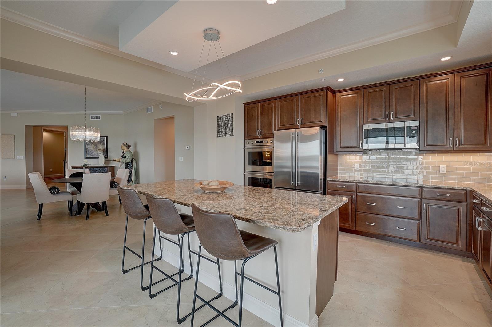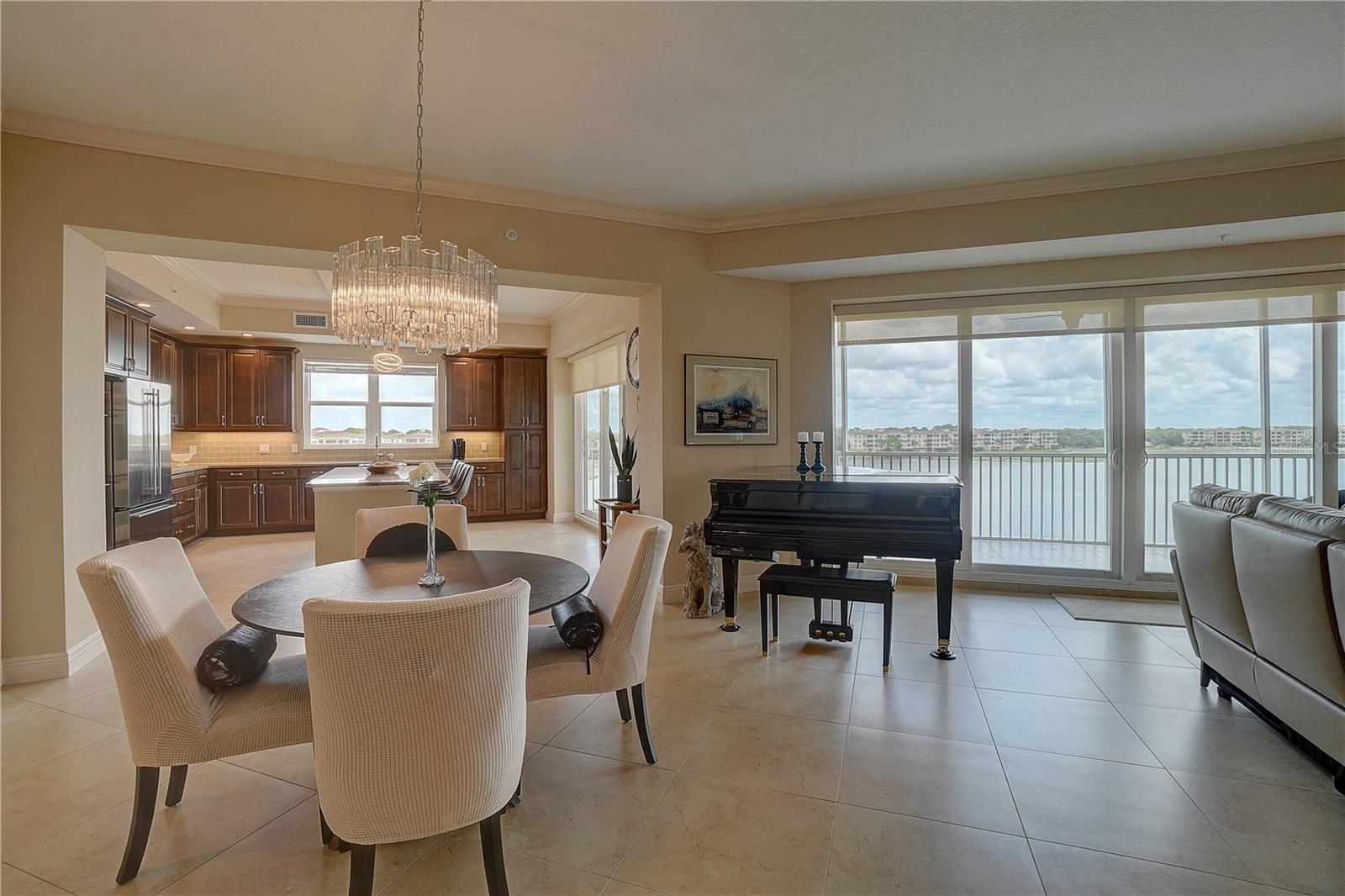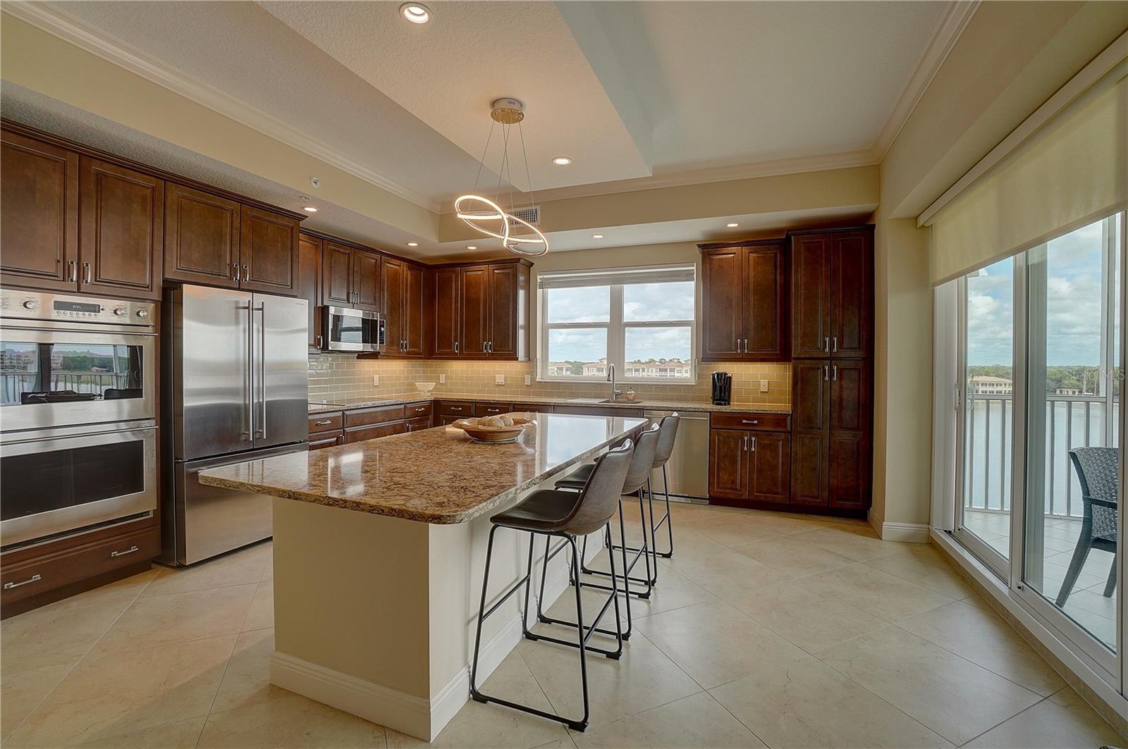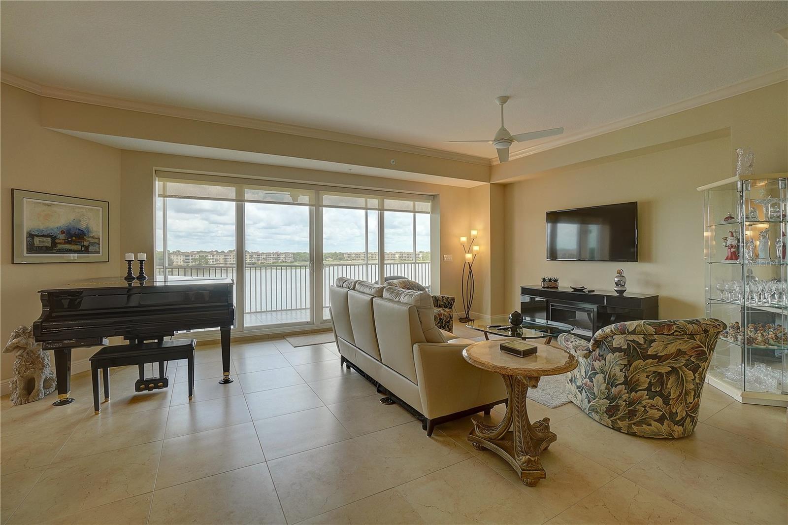 Experience the epitome of luxury living with this stunning 2,607-square-foot condominium in the heart of Lakewood Main Street. This exceptional residence offers unparalleled access to the vibrant community life of Lakewood Ranch, with an array of restaurants, boutique shops, salons, and a cinema just steps away. Dive into local events like Music on Main, classic and sports car shows, and arts and crafts festivals—all without the need for a car or bike. The Dominica floorplan is designed for both comfort and elegance, featuring 3 spacious bedrooms, 3 full baths, and a private study. The 400-square-foot lanai provides breathtaking panoramic views of Lake Uihlein and the Legacy Golf Course. Inside, you'll find porcelain tile throughout the study, main areas, and bathrooms, while the bedrooms are cozily carpeted. For those who love to cook, the oversized kitchen is a chef’s dream, equipped with double ovens, a grand center island, GE Monogram appliances, 42-inch upper cabinets, upgraded soft-close cabinetry, and sleek quartz countertops. The expansive living room offers picturesque views of the lake and golf course, enhancing your everyday living experience. Comfort is paramount with dual HVAC units that allow separate temperature control for different areas of the home and dual hot water heaters. Low-E hurricane-impact sliders ensure protection from the elements in the kitchen, living room, and owner's suite. This unit also includes two garaged parking spaces and a ground-level storage unit, with additional spaces available for personal kayaks. Enhanced digital security is provided for both the parking area and building, with future security upgrades planned. The community boasts top-notch amenities, including a beautiful pool, spa, fire pit, grilling stations, and a fitness center. Plus, you’re just minutes away from even more dining, retail, grocery, and entertainment options at San Marco Plaza, Center Point at Waterside, Waterside Place, and The Mall at University Town Center. Opportunities like this are rare—don't miss your chance to own this exceptional condominium. It’s been over a year since a unit like this has been available