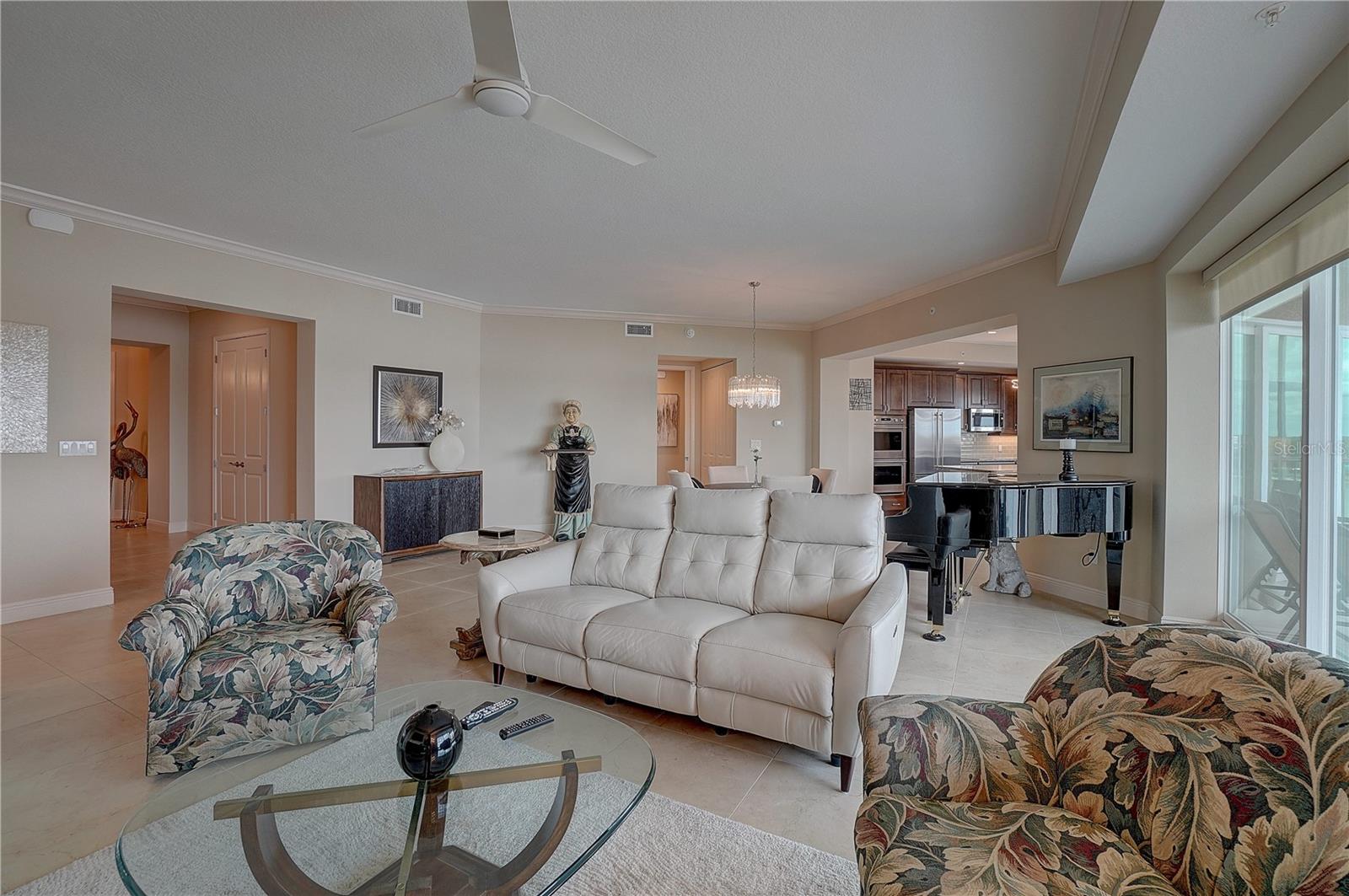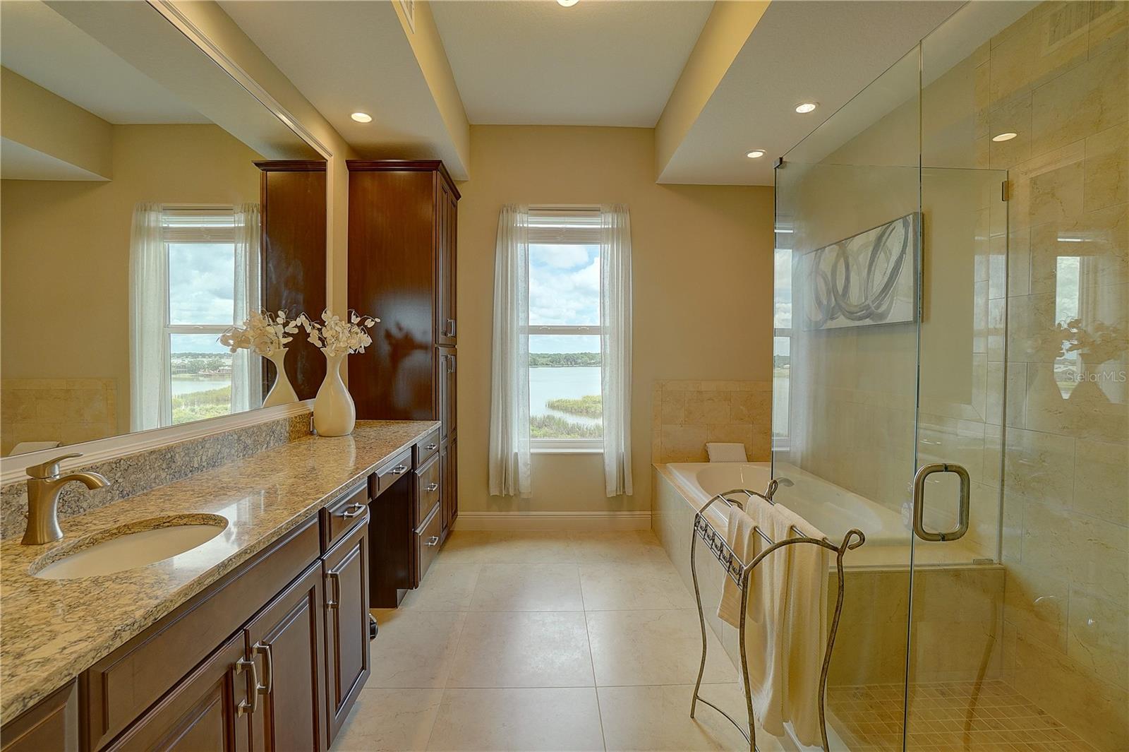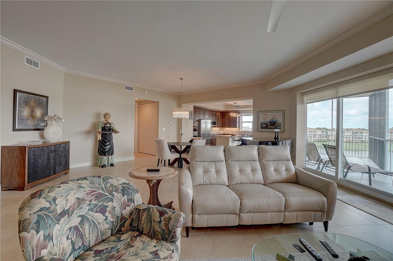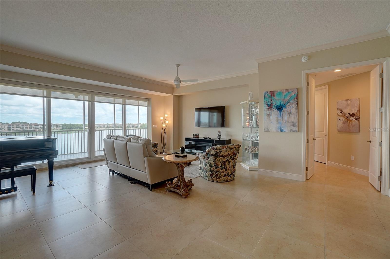 Experience the epitome of luxury living with this stunning 2,607-square-foot condominium in the heart of Lakewood Main Street. This exceptional residence offers unparalleled access to the vibrant community life of Lakewood Ranch, with an array of restaurants, boutique shops, salons, and a cinema just steps away. Dive into local events like Music on Main, classic and sports car shows, and arts and crafts festivals—all without the need for a car or bike. The Dominica floorplan is designed for both comfort and elegance, featuring 3 spacious bedrooms, 3 full baths, and a private study. The 400-square-foot lanai provides breathtaking panoramic views of Lake Uihlein and the Legacy Golf Course. Inside, you'll find porcelain tile throughout the study, main areas, and bathrooms, while the bedrooms are cozily carpeted. For those who love to cook, the oversized kitchen is a chef’s dream, equipped with double ovens, a grand center island, GE Monogram appliances, 42-inch upper cabinets, upgraded soft-close cabinetry, and sleek quartz countertops. The expansive living room offers picturesque views of the lake and golf course, enhancing your everyday living experience. Comfort is paramount with dual HVAC units that allow separate temperature control for different areas of the home and dual hot water heaters. Low-E hurricane-impact sliders ensure protection from the elements in the kitchen, living room, and owner's suite. This unit also includes two garaged parking spaces and a ground-level storage unit, with additional spaces available for personal kayaks. Enhanced digital security is provided for both the parking area and building, with future security upgrades planned. The community boasts top-notch amenities, including a beautiful pool, spa, fire pit, grilling stations, and a fitness center. Plus, you’re just minutes away from even more dining, retail, grocery, and entertainment options at San Marco Plaza, Center Point at Waterside, Waterside Place, and The Mall at University Town Center. Opportunities like this are rare—don't miss your chance to own this exceptional condominium. It’s been over a year since a unit like this has been available