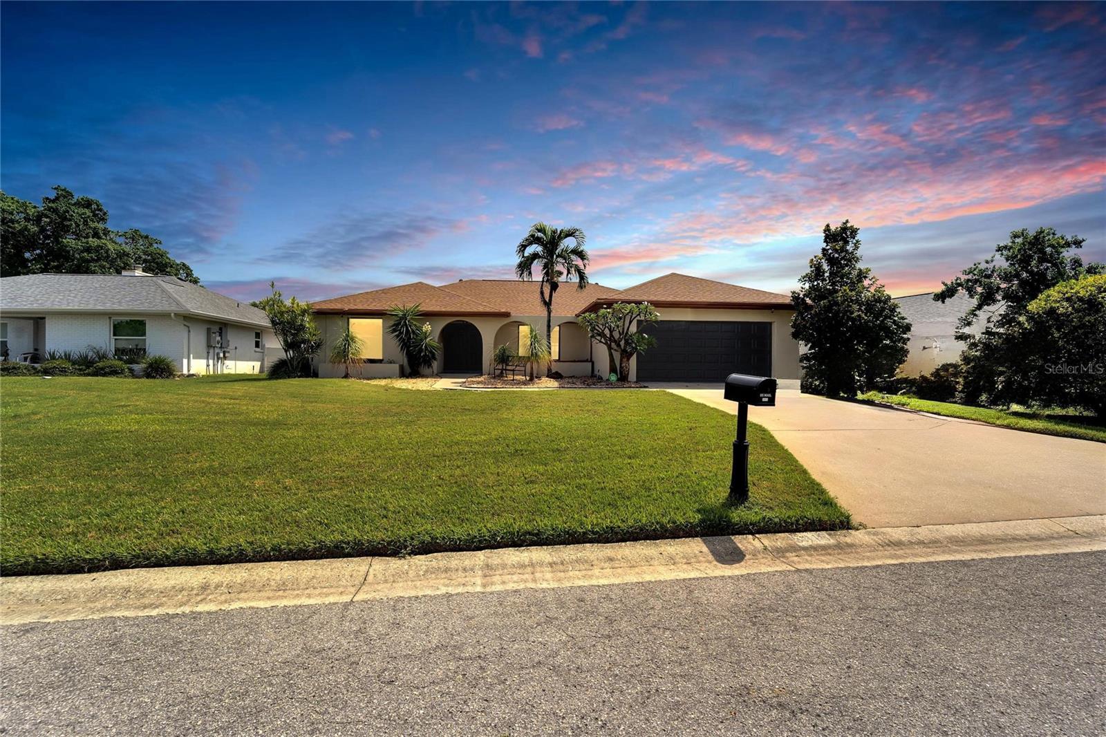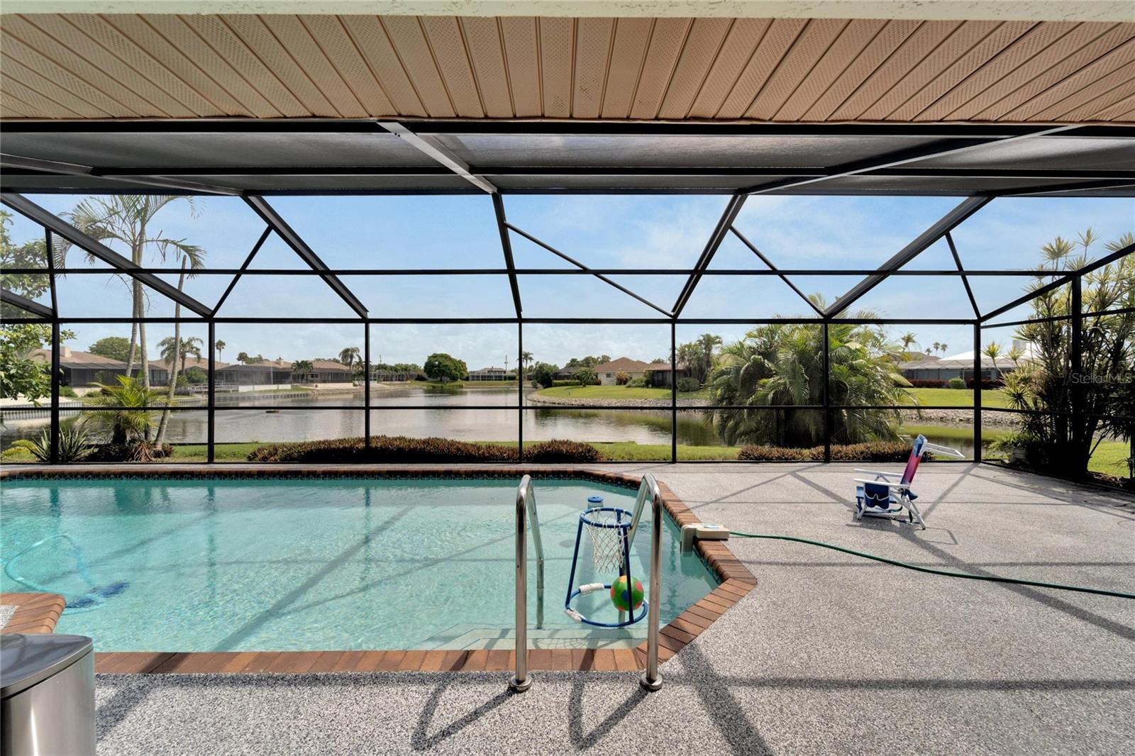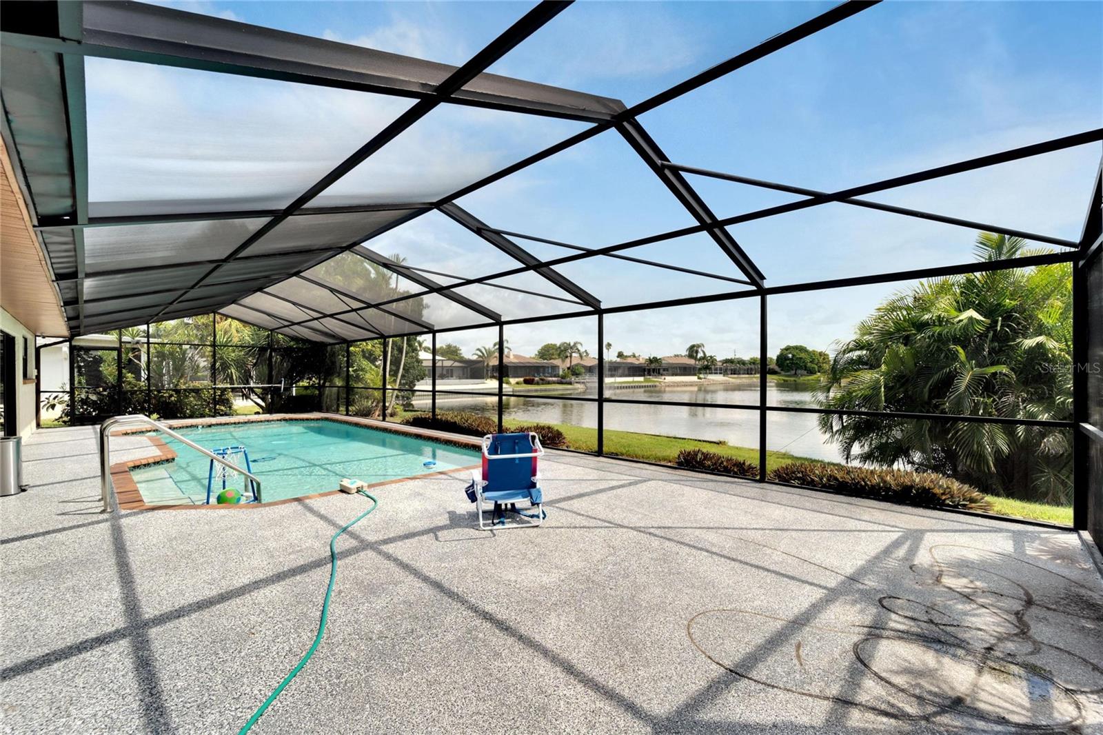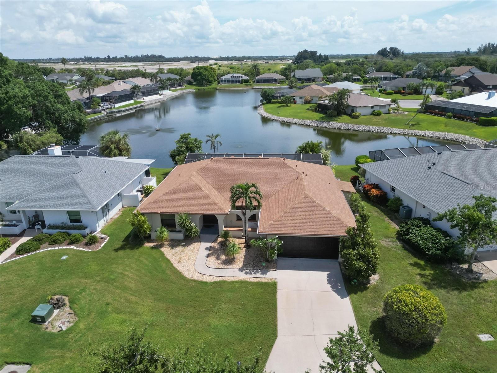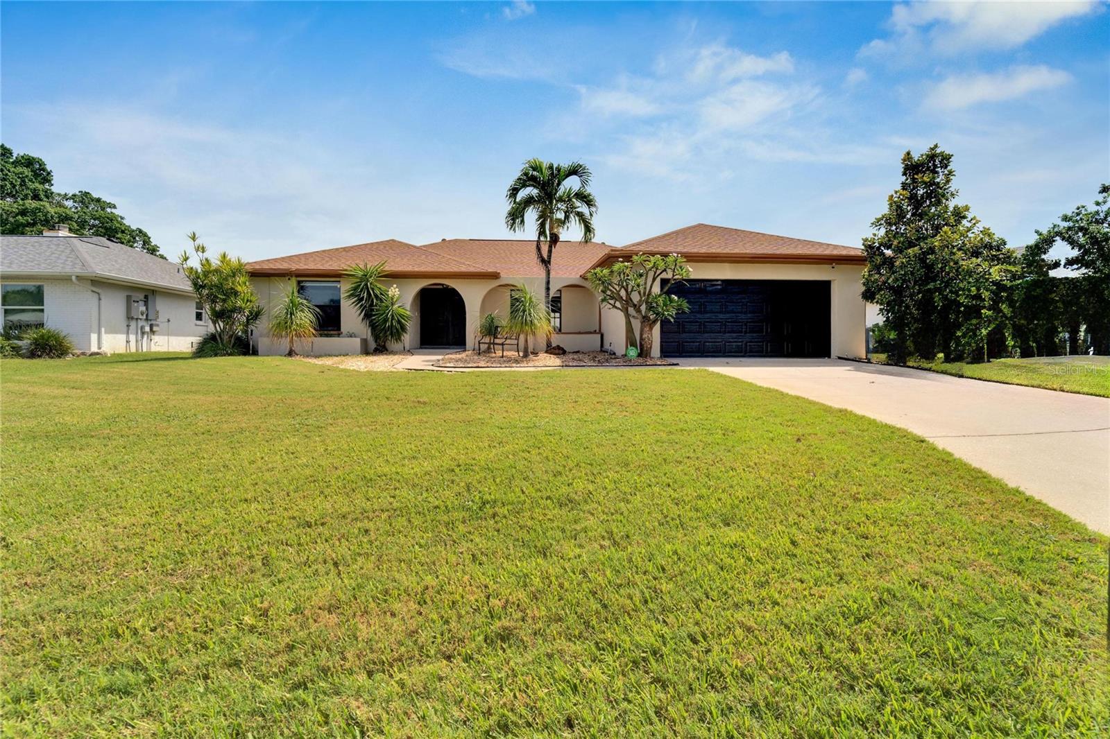 A dream come true has arrived, a 3/2/2 with a split bedroom open floorplan, open kitchen and guest area. This lake front beauty comes on a gorgeous large lot, an expansive pool and TONS of upgrades. The upgrades include, newer HVAC, water Heater, roof, tastefully updated kitchen, solid surface flooring throughout, beautifully remodeled showers in both bathrooms, updated pool deck, brand new netting around the pool & painted, recently painted interior & exterior, brand new electronic blinds through the majority of the home, epoxy garage flooring & new overhead heavy-duty garage door & new opener and much more! NO CDD and a LOW HOA!!!The living room features a cozy large space with expansive windows that provide plenty of natural light and stunning views of the pool and backyard. Step outside to the spacious patio area, perfect for entertaining guests or simply relaxing by the pool. The large lot offers plenty of room for outdoor activities and gardening. This home is located in a beautiful community, only 3 miles away from the sandy gulf beaches and golf courses, making it the perfect retreat for those who enjoy outdoor activities. The split bedroom layout provides privacy and space for everyone in the household, while the open floor plan allows for easy flow between the kitchen, living room, and dining area. The updated kitchen is a chef's dream, with stainless steel appliances, quartz countertops, and plenty of storage space. The master suite is a true oasis, with a luxurious en suite bathroom featuring two vanities, a custom shoe rack, updated walk-in shower and a spacious closet. The two guest bedrooms are nestled on the opposite side of the home, perfect for family or visitors, with a guest bathroom in between. Don't miss out on the opportunity to own this stunning home with all the amenities you could ever want. Schedule a showing today and make this your own personal paradise.