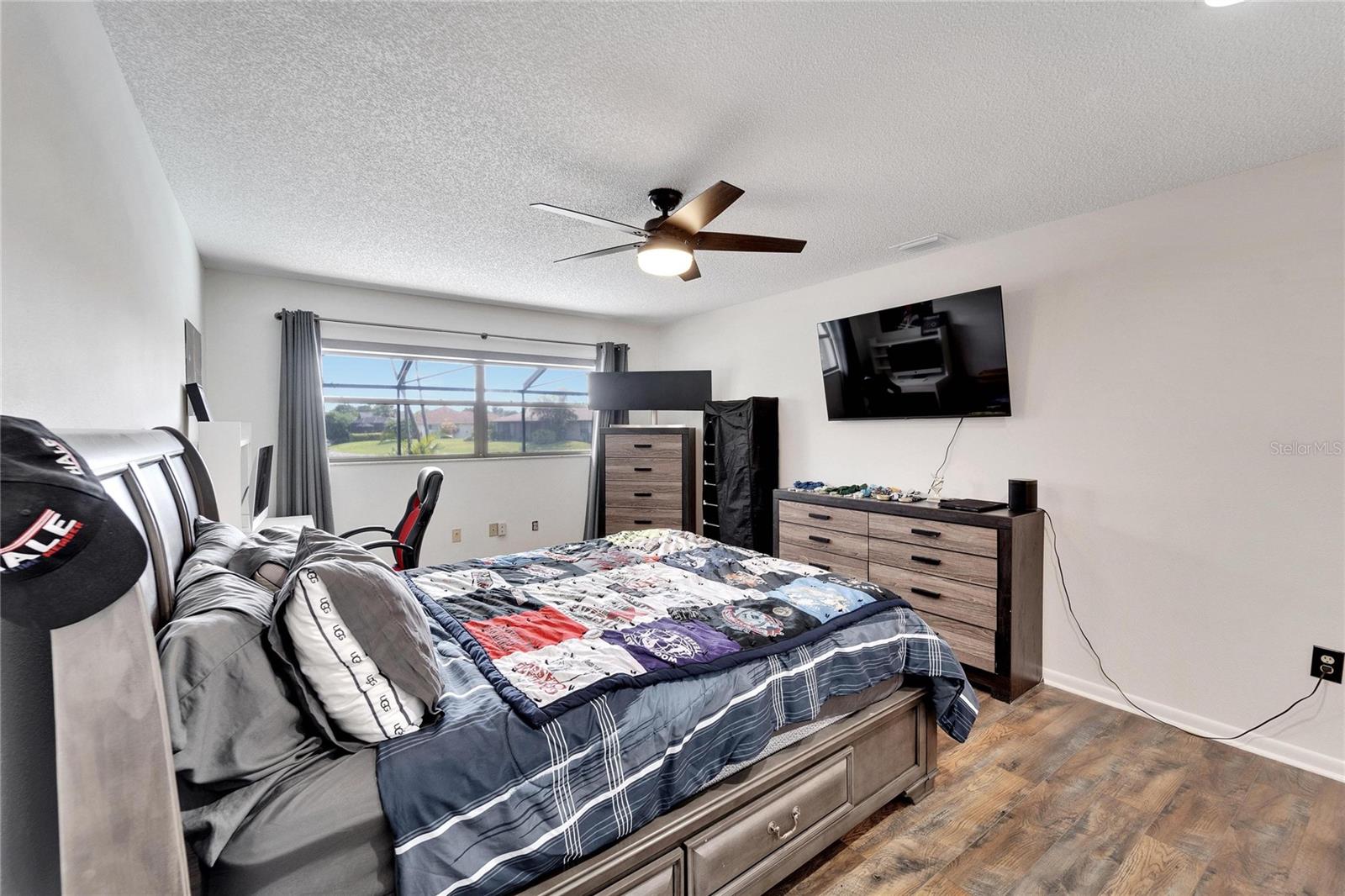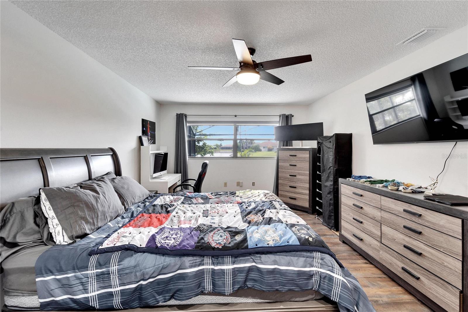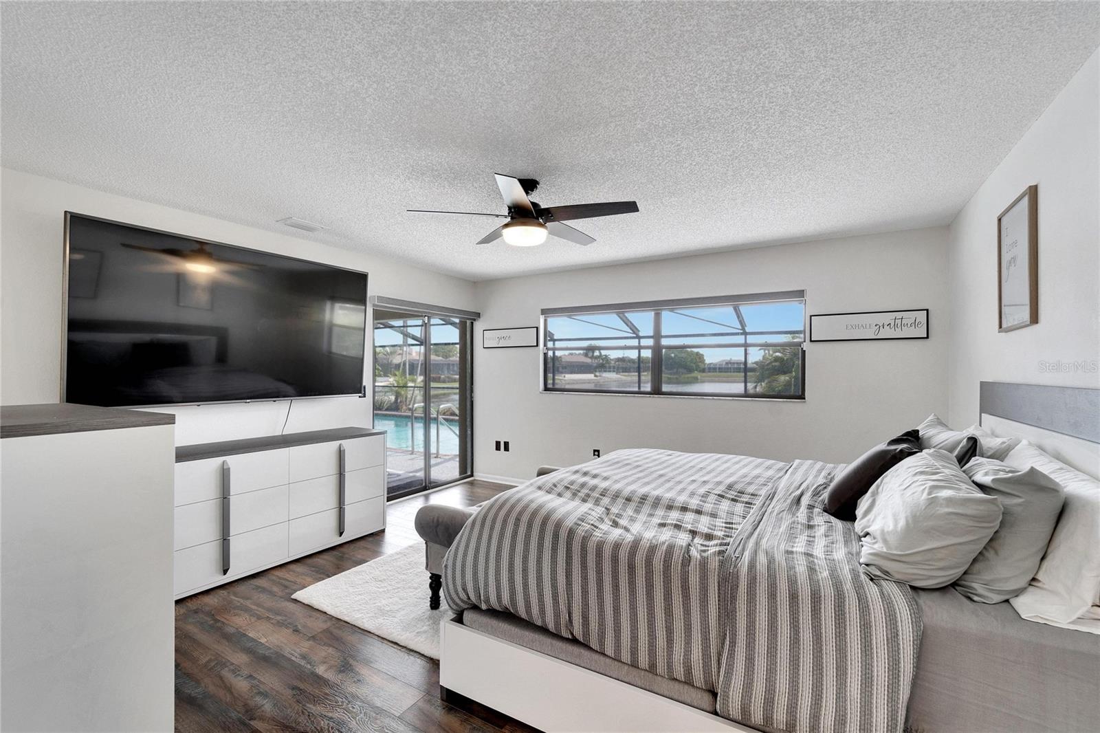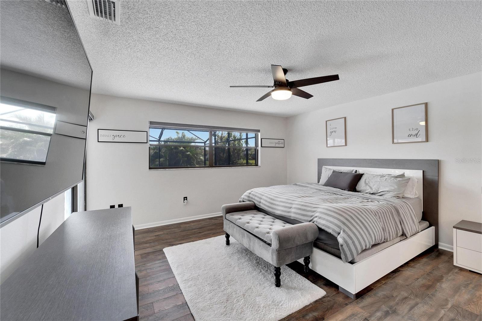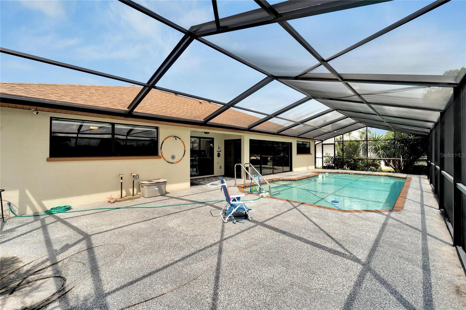 A dream come true has arrived, a 3/2/2 with a split bedroom open floorplan, open kitchen and guest area. This lake front beauty comes on a gorgeous large lot, an expansive pool and TONS of upgrades. The upgrades include, newer HVAC, water Heater, roof, tastefully updated kitchen, solid surface flooring throughout, beautifully remodeled showers in both bathrooms, updated pool deck, brand new netting around the pool & painted, recently painted interior & exterior, brand new electronic blinds through the majority of the home, epoxy garage flooring & new overhead heavy-duty garage door & new opener and much more! NO CDD and a LOW HOA!!!The living room features a cozy large space with expansive windows that provide plenty of natural light and stunning views of the pool and backyard. Step outside to the spacious patio area, perfect for entertaining guests or simply relaxing by the pool. The large lot offers plenty of room for outdoor activities and gardening. This home is located in a beautiful community, only 3 miles away from the sandy gulf beaches and golf courses, making it the perfect retreat for those who enjoy outdoor activities. The split bedroom layout provides privacy and space for everyone in the household, while the open floor plan allows for easy flow between the kitchen, living room, and dining area. The updated kitchen is a chef's dream, with stainless steel appliances, quartz countertops, and plenty of storage space. The master suite is a true oasis, with a luxurious en suite bathroom featuring two vanities, a custom shoe rack, updated walk-in shower and a spacious closet. The two guest bedrooms are nestled on the opposite side of the home, perfect for family or visitors, with a guest bathroom in between. Don't miss out on the opportunity to own this stunning home with all the amenities you could ever want. Schedule a showing today and make this your own personal paradise.