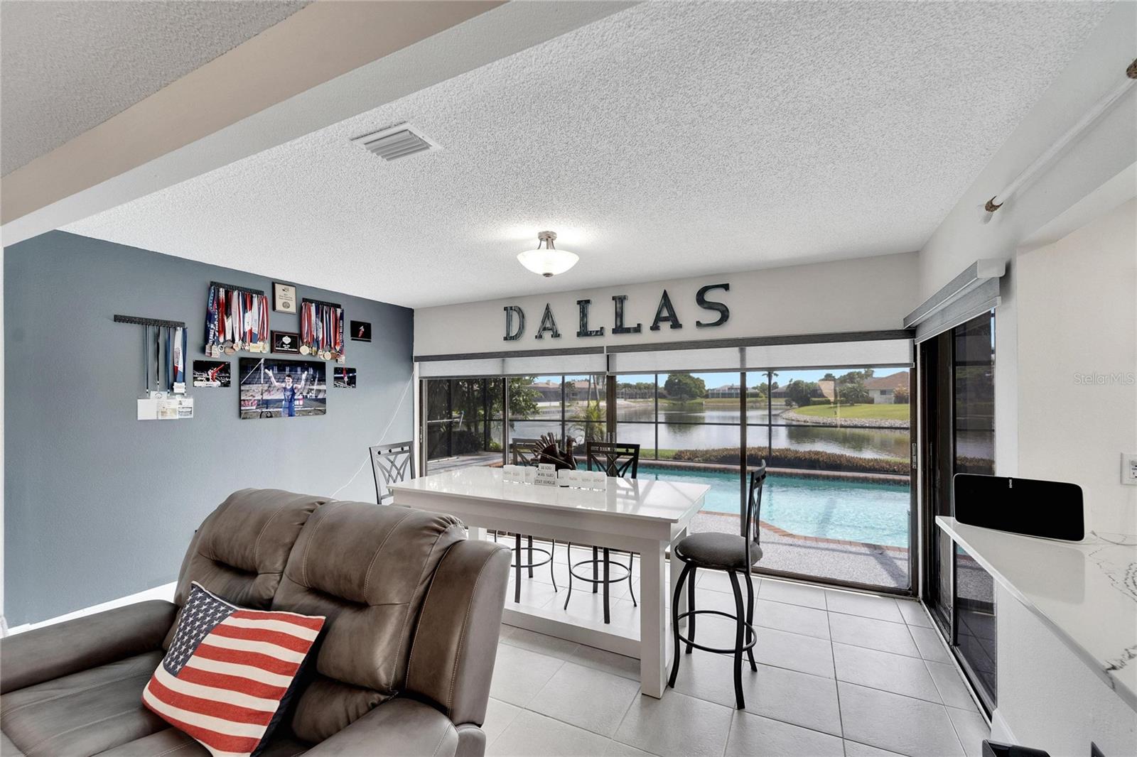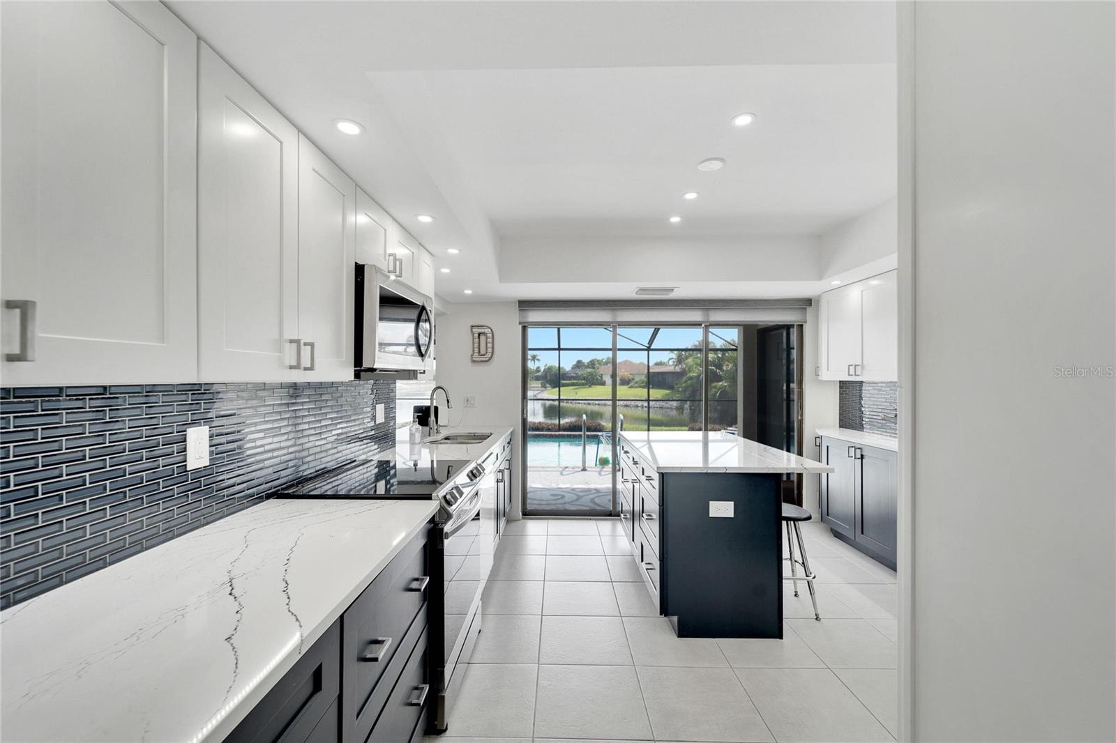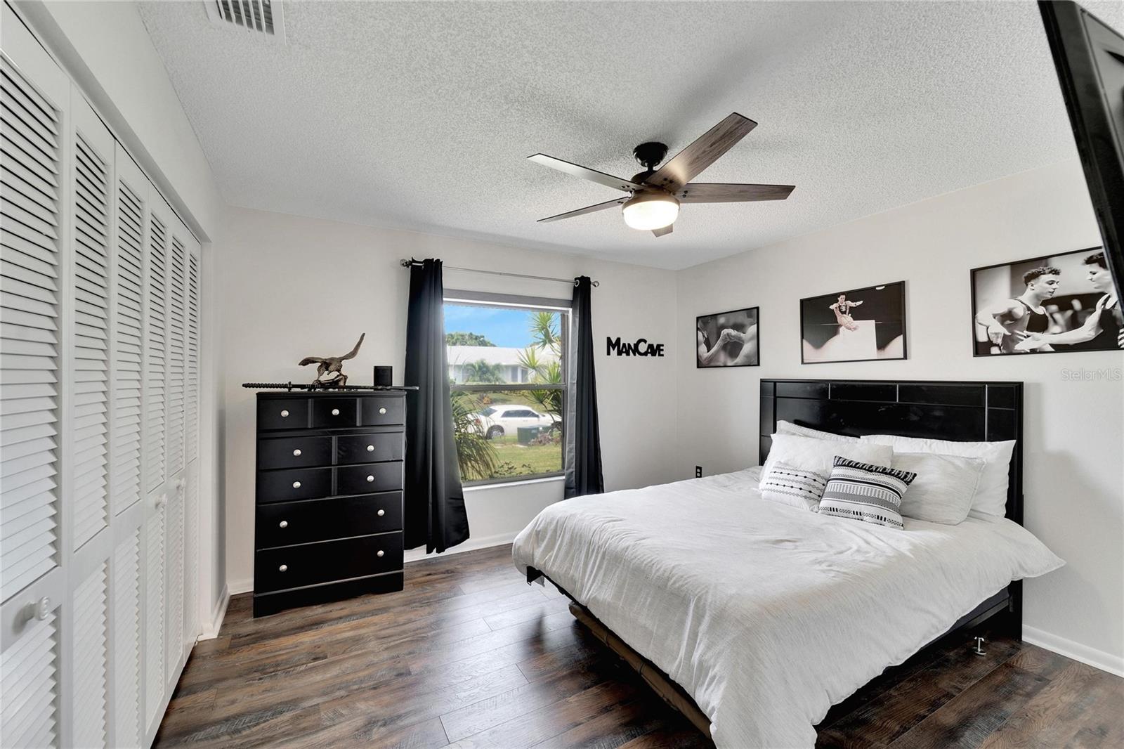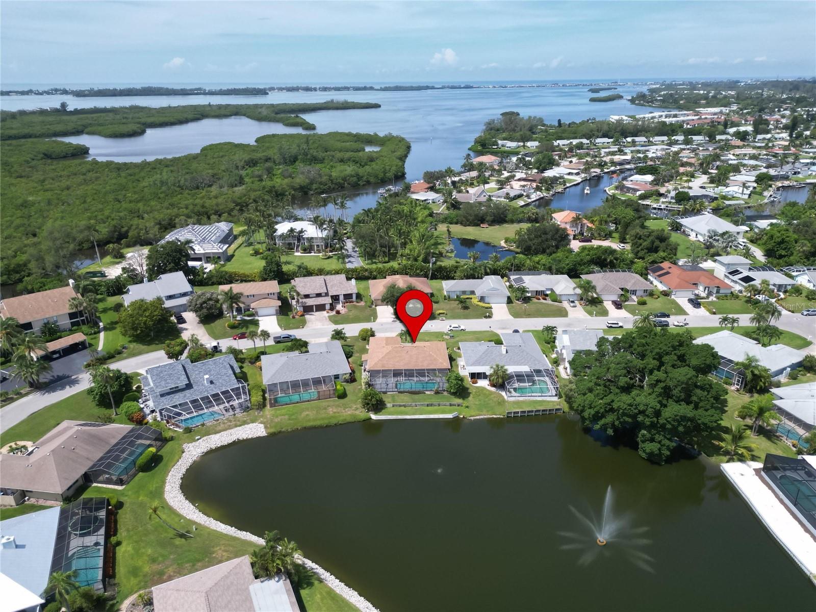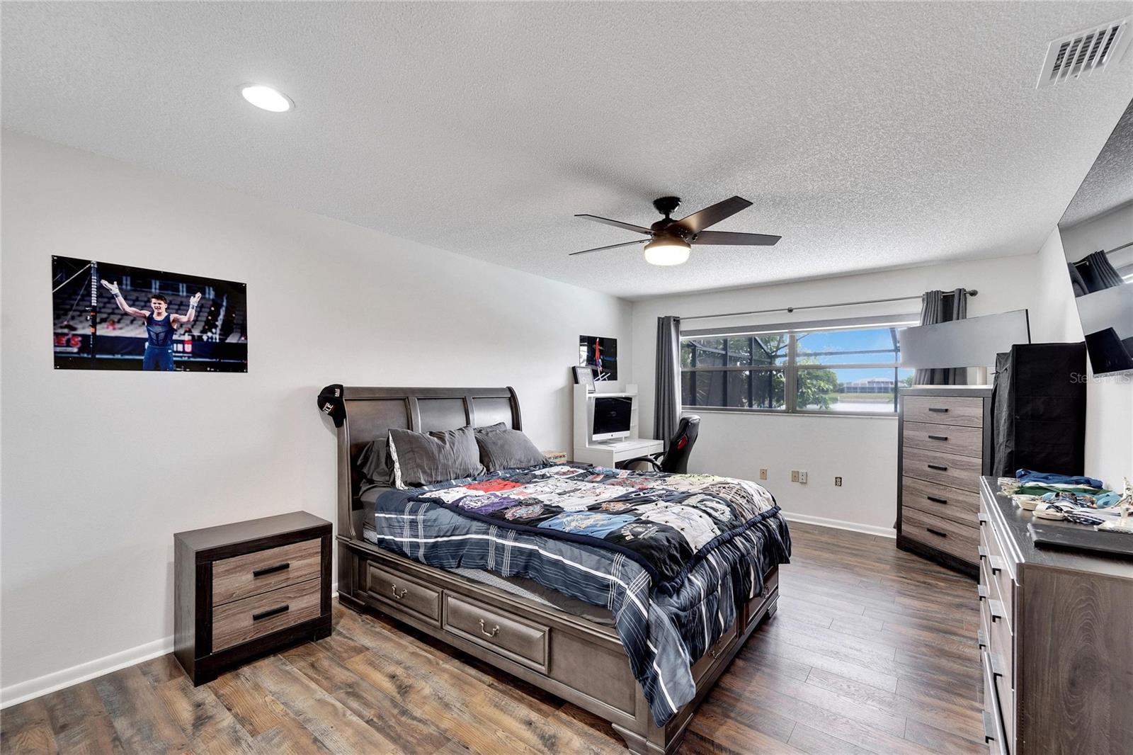 A dream come true has arrived, a 3/2/2 with a split bedroom open floorplan, open kitchen and guest area. This lake front beauty comes on a gorgeous large lot, an expansive pool and TONS of upgrades. The upgrades include, newer HVAC, water Heater, roof, tastefully updated kitchen, solid surface flooring throughout, beautifully remodeled showers in both bathrooms, updated pool deck, brand new netting around the pool & painted, recently painted interior & exterior, brand new electronic blinds through the majority of the home, epoxy garage flooring & new overhead heavy-duty garage door & new opener and much more! NO CDD and a LOW HOA!!!The living room features a cozy large space with expansive windows that provide plenty of natural light and stunning views of the pool and backyard. Step outside to the spacious patio area, perfect for entertaining guests or simply relaxing by the pool. The large lot offers plenty of room for outdoor activities and gardening. This home is located in a beautiful community, only 3 miles away from the sandy gulf beaches and golf courses, making it the perfect retreat for those who enjoy outdoor activities. The split bedroom layout provides privacy and space for everyone in the household, while the open floor plan allows for easy flow between the kitchen, living room, and dining area. The updated kitchen is a chef's dream, with stainless steel appliances, quartz countertops, and plenty of storage space. The master suite is a true oasis, with a luxurious en suite bathroom featuring two vanities, a custom shoe rack, updated walk-in shower and a spacious closet. The two guest bedrooms are nestled on the opposite side of the home, perfect for family or visitors, with a guest bathroom in between. Don't miss out on the opportunity to own this stunning home with all the amenities you could ever want. Schedule a showing today and make this your own personal paradise.