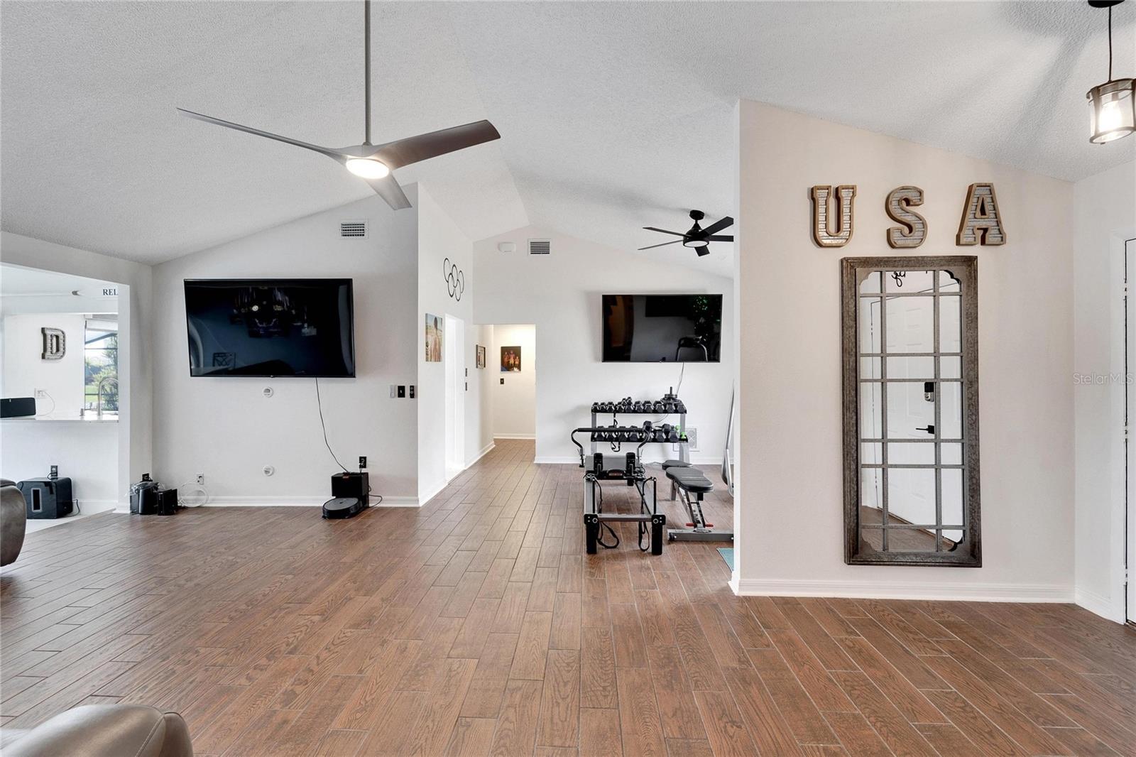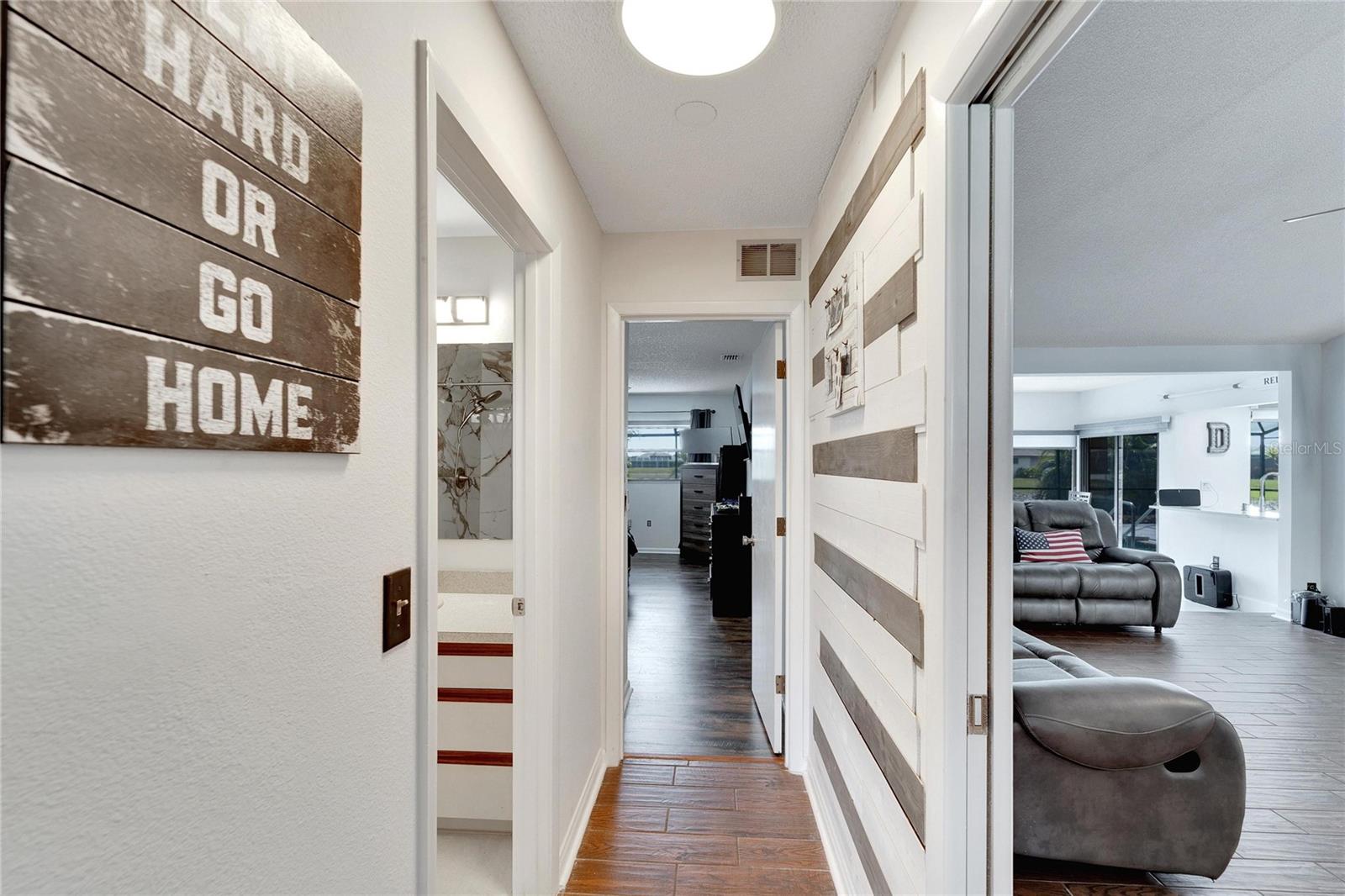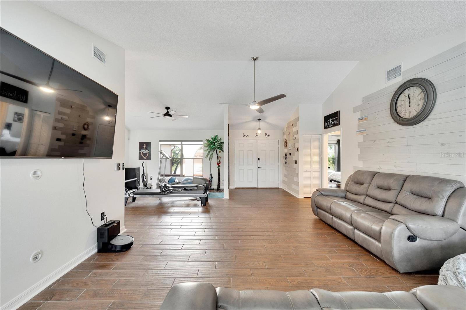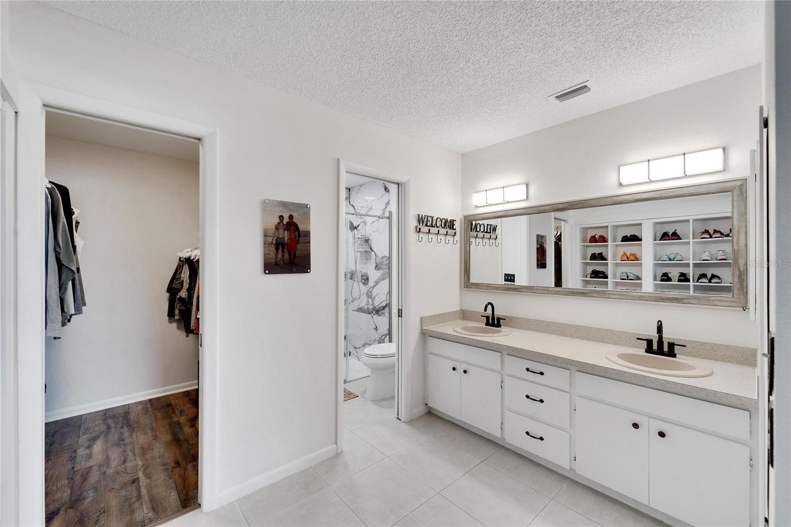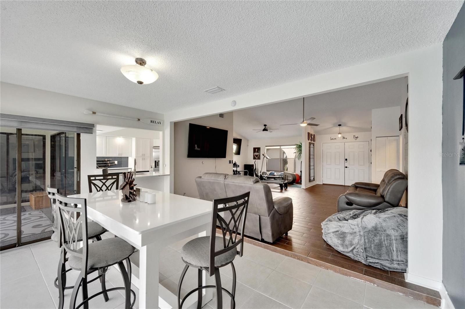A dream come true has arrived, a 3/2/2 with a split bedroom open floorplan, open kitchen and guest area. This lake front beauty comes on a gorgeous large lot, an expansive pool and TONS of upgrades. The upgrades include, newer HVAC, water Heater, roof, tastefully updated kitchen, solid surface flooring throughout, beautifully remodeled showers in both bathrooms, updated pool deck, brand new netting around the pool & painted, recently painted interior & exterior, brand new electronic blinds through the majority of the home, epoxy garage flooring & new overhead heavy-duty garage door & new opener and much more! NO CDD and a LOW HOA!!!The living room features a cozy large space with expansive windows that provide plenty of natural light and stunning views of the pool and backyard. Step outside to the spacious patio area, perfect for entertaining guests or simply relaxing by the pool. The large lot offers plenty of room for outdoor activities and gardening. This home is located in a beautiful community, only 3 miles away from the sandy gulf beaches and golf courses, making it the perfect retreat for those who enjoy outdoor activities. The split bedroom layout provides privacy and space for everyone in the household, while the open floor plan allows for easy flow between the kitchen, living room, and dining area. The updated kitchen is a chef's dream, with stainless steel appliances, quartz countertops, and plenty of storage space. The master suite is a true oasis, with a luxurious en suite bathroom featuring two vanities, a custom shoe rack, updated walk-in shower and a spacious closet. The two guest bedrooms are nestled on the opposite side of the home, perfect for family or visitors, with a guest bathroom in between. Don't miss out on the opportunity to own this stunning home with all the amenities you could ever want. Schedule a showing today and make this your own personal paradise.