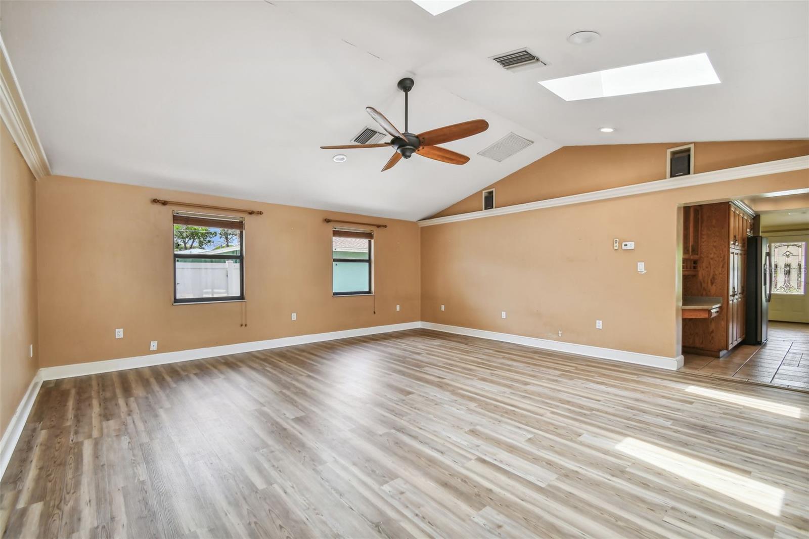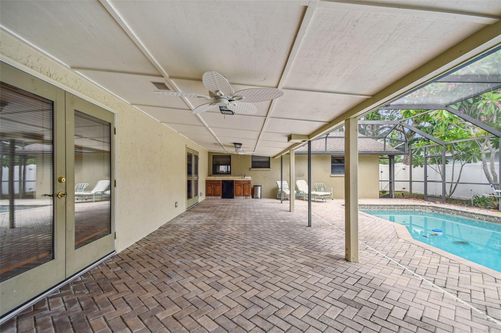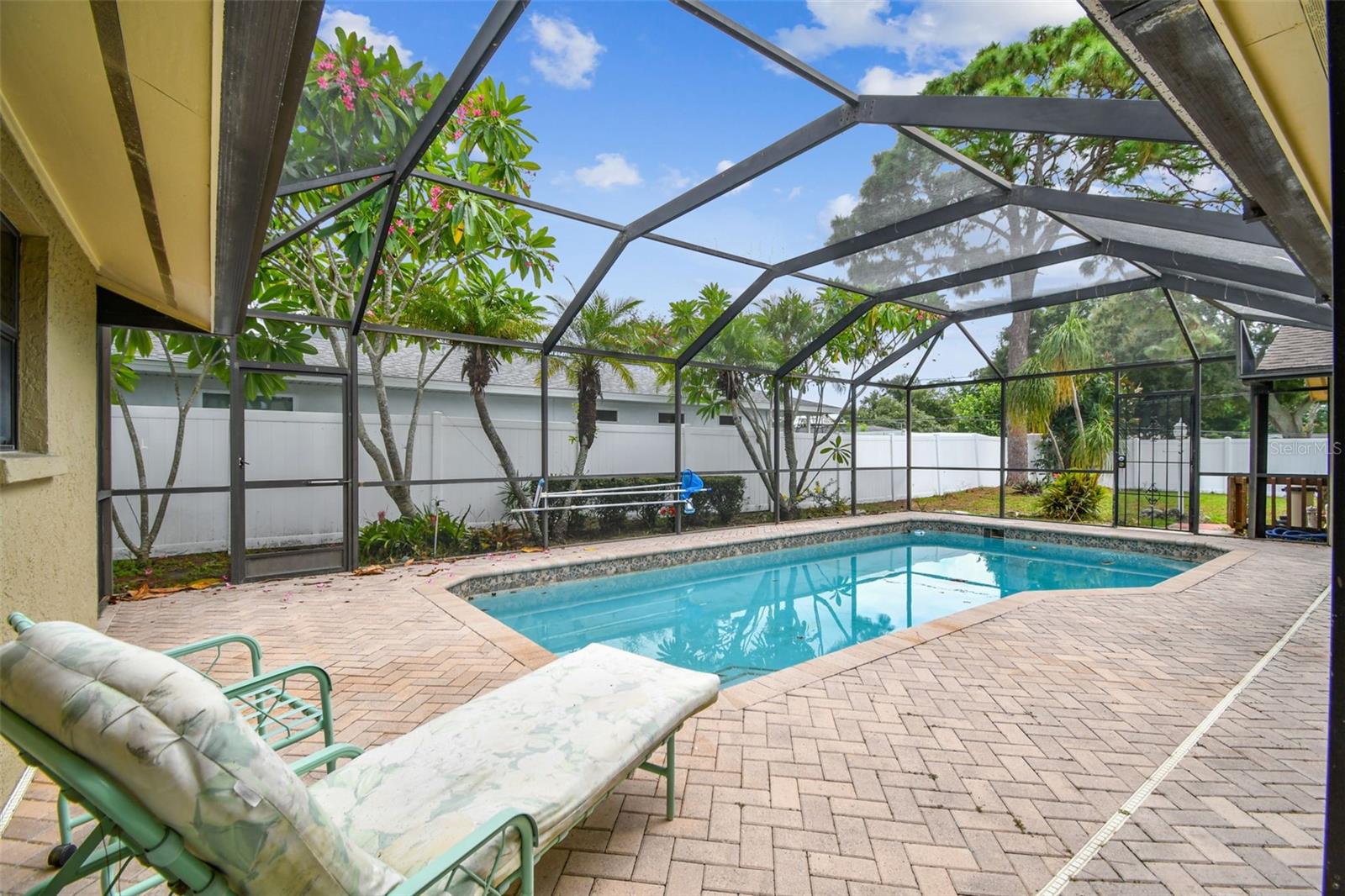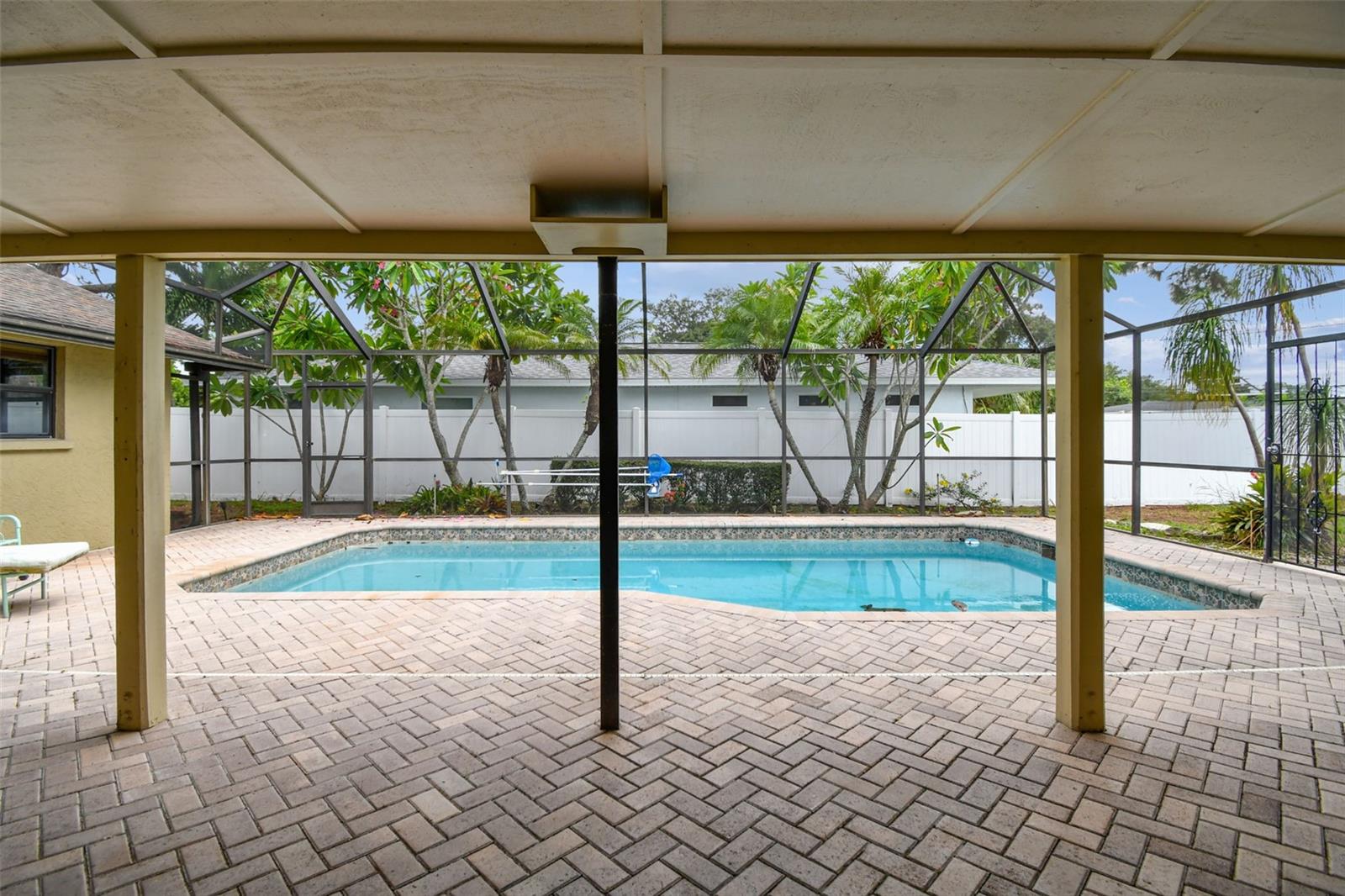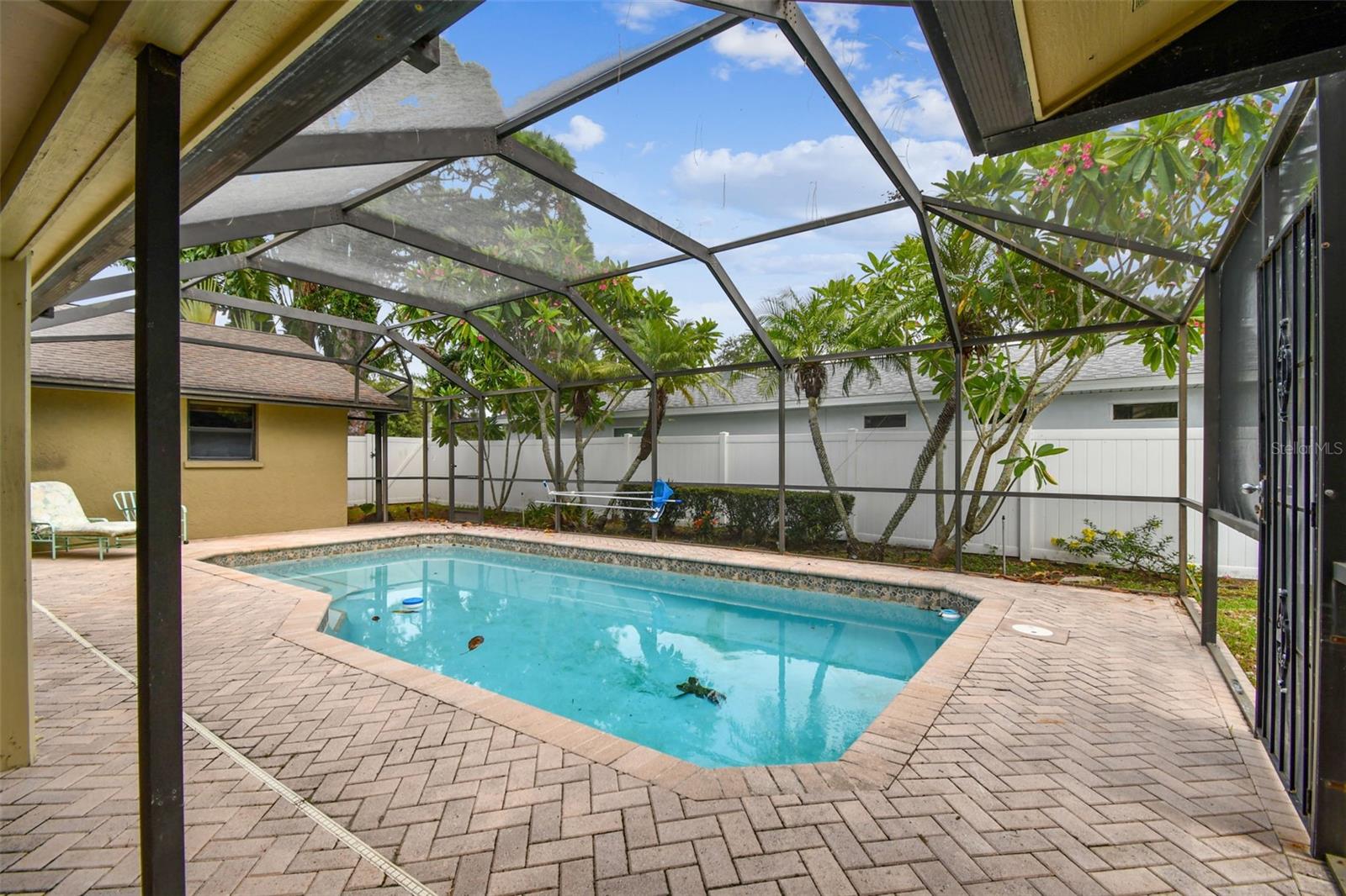 Don’t miss this opportunity! This spacious 3-bedroom, 2-bathroom pool home is perfectly situated on a peaceful cul-de-sac in West Bradenton and ready for your cosmetic improvements and personal style. Offering an ideal blend of comfort and functionality, it features a spacious great room floor plan, large dining room, vaulted ceilings and crown molding. Much of the home has newly installed luxury vinyl waterproof plank flooring with the balance being ceramic tile for easy upkeep and cleaning. Two sets of French doors lead outside to the screened enclosed brick paver lanai, where you can relax and unwind while overlooking the sparkling pool and large fenced backyard—perfect for play or entertaining. The generous primary suite is a true retreat with an oversized walk-in closet, complete with a luxurious bathroom, soaking tub, and separate shower with dual shower heads. This bathroom also leads out to the expansive pool area. This property includes an extra concrete pad for RV or boat parking, as well as a 12x12 workshop with electric, ideal for hobbies or storage. Located near several hospitals and medical facilities, the Bradenton Country Club, and G.T. Bray Park, offering tennis courts, a dog park, walking trails, and more. Plus, you're approximately 7 miles from the stunning Anna Maria Island and Bradenton beaches. An added bonus is a brand-new HVAC unit for your peace of mind for years to come. This home is positioned in one of Bradenton's most desirable areas. Don’t miss your chance to own this slice of paradise, offering the perfect blend of relaxation and convenience.