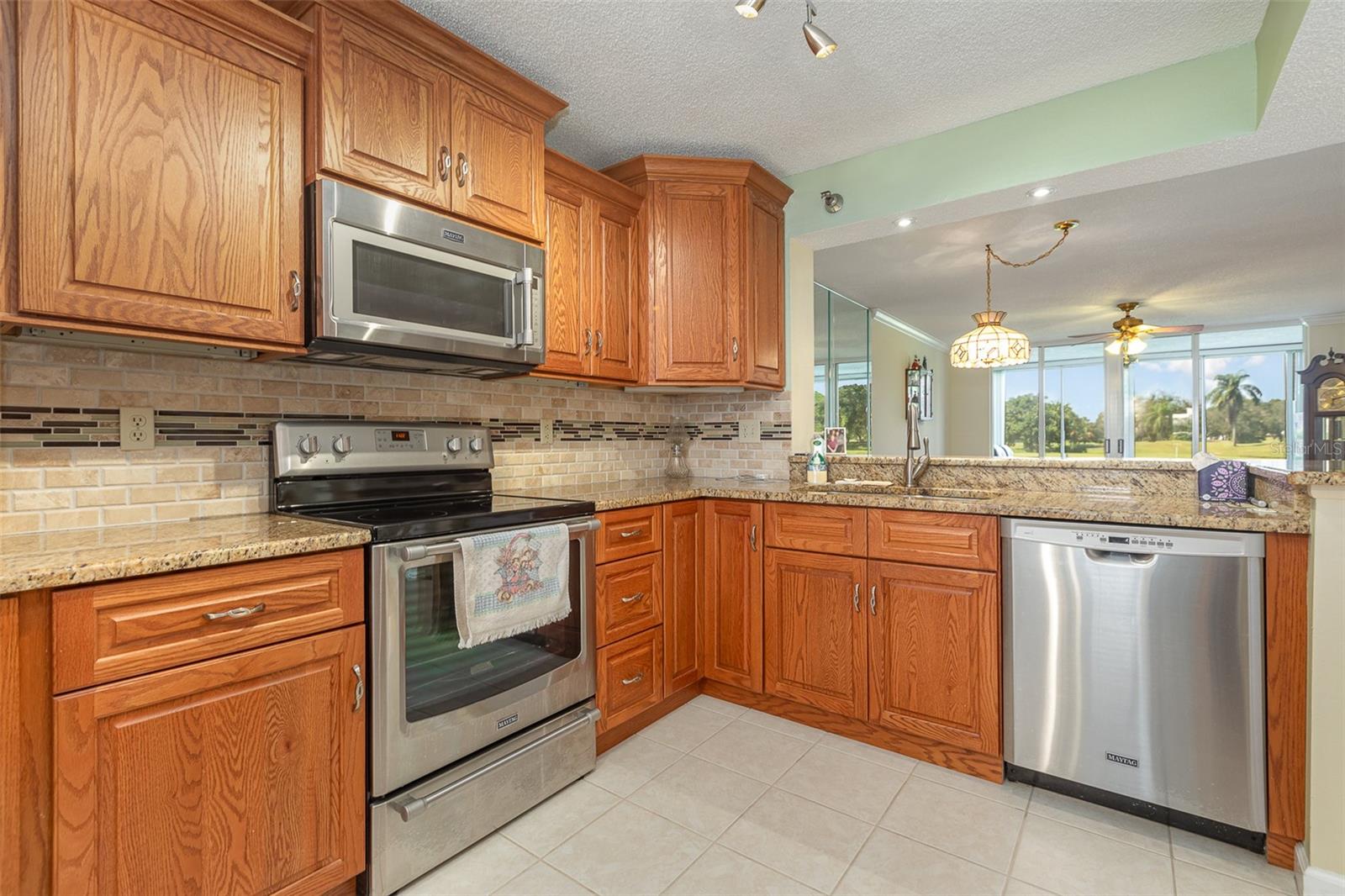 Welcome to The Links at Pinebrook, a stunning condo community nestled in the heart of Bradenton, Florida. Prepare to be captivated by this exceptional 2 bedroom, 2 bath all-age condominium, situated on the 1st floor, offering panoramic views of the lush golf course and tranquil pond. Step inside you are greeted by an open floor plan that seamlessly connects the living, dining (both with real hardwood floors), and kitchen areas. Bathed in natural light, this condo exudes an inviting and warm ambiance throughout. The well appointed kitchen features granite countertops, lots of timeless oak cabinets with crown moldings, stainless appliances, and provides the perfect space for culinary delights. Enjoy casual dining with an eat-in kitchen. Retreat to the owner’s suite, a haven of tranquility with a large walk-in closet and stunning views of the executive golf course. Wake up to picturesque scenes and immerse yourself in the natural beauty of your surroundings. The en-suite bathroom offers both style and convenience, providing a sanctuary for relaxation. This condo boasts a range of amenities for your comfort and convenience, including a carport to protect your vehicle, and an indoor storage unit for keeping your belongings organized. The low association fees cover cable, water, sewer, exterior maintenance and insurance offering exceptional value to residents. No new assessments on the horizon and the association is well funded. Florida Milestone building inspection recently performed and passed (no assessments!) HVAC, including roof condenser, replaced in 2021, 2-3 year new roof (assessment paid in full). Golf enthusiasts have the option to join the golf course, while others can enjoy the community pool, tennis courts, and clubhouse, perfect for socializing and leisure. Convenience is paramount, with the close proximity to IMG School, shopping destinations, and pristine beaches. Embrace the vibrant coastal lifestyle and take advantage of the abundant recreational opportunities that surround you. Don't miss the chance to own a piece of paradise in The Links at Pinebrook. Experience the perfect balance of luxury, natural beauty, and convenience.