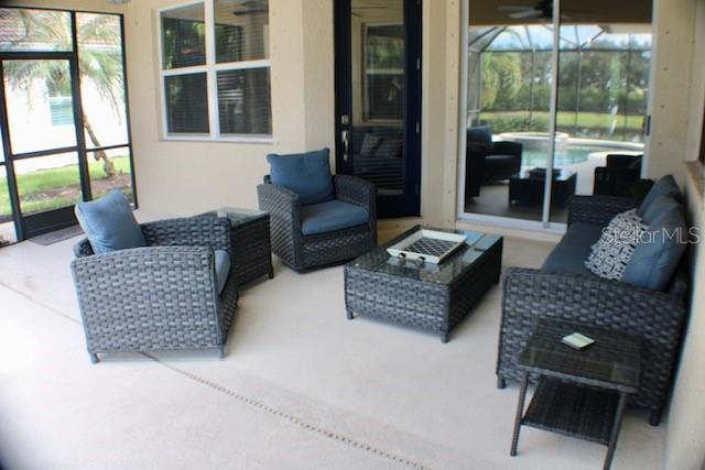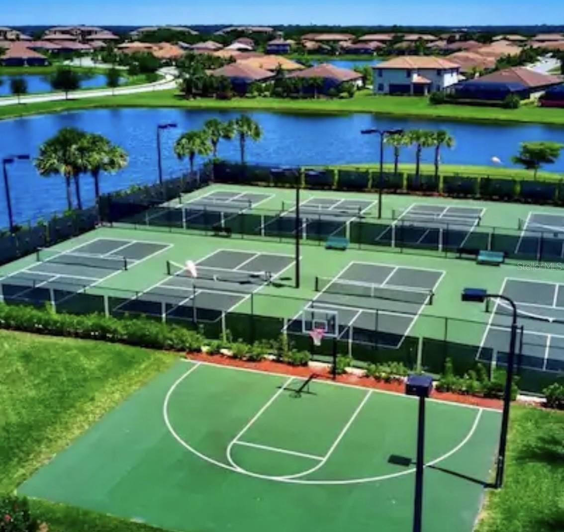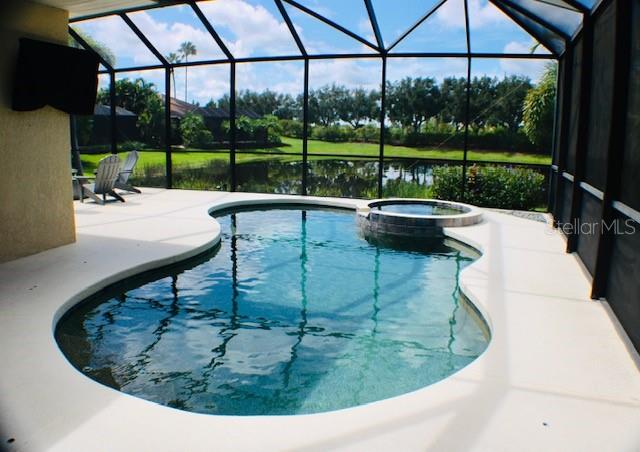 Sellers are motivated! Recent price adjustment to this turn-key dream home located in one of Florida's premier golf course communities! Nestled in River Strand at Heritage Harbour is the perfect blend of luxury and comfort. Just bring your toothbrush and personal items to this furnished home. This immaculate 4-bedroom, 3-bathroom home with GOLF MEMBERSHIP INCLUDED, features 2195 sq ft of living space. Pride of ownership is evident throughout this meticulously maintained home. Once inside you will immediately notice this home is bright and airy, boasting a spacious open floor plan perfect for entertaining guests or spending quiets night in. The 10-foot tray ceilings and paddle fans add a touch of sophistication to the living areas. The chef's kitchen complete with newer appliances, 42-inch maple cabinets, raised oven, and breakfast nook flows effortlessly into the living room. The owner's suite features dual walk-in closets and en-suite bath complete with over-sized garden tub, walk-in shower, and dual sinks. Outside, your private oasis awaits with a heated saltwater pool and spa (new saltwater system and pool heater 2024), serene pond views, and landscaping. This home also includes a 3-car garage, providing ample space for vehicles and your golf cart. Full country club membership is included with the purchase of this home and since this is an amenity-rich community you will also enjoy access to the world-class golfing, 9 tennis courts, 8 pickleball courts, 2 fitness centers, resort style pools, Tiki bar, casual and fine dining, golf pro shop, as well as numerous social events. This home is designed for those seeking the best in Florida living, with outdoor and indoor spaces that cater to relaxation and entertainment. Step inside to experience luxurious living combined with a casual welcoming atmosphere - don't miss this opportunity and schedule your showing today!