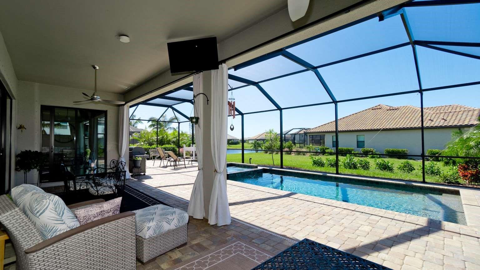 Beautiful Lorraine Lakes home ready for a new family. Very popular Sunset floor plan with pool and hot tub. Upgrades include: light fixtures, ceiling fans, main bedroom closet storage systems, pool cage lighting, natural gas line on Lani for grill or fireplace, entire home water filtration system, plus a fully insulated garage with mini split unit to provide year around conditioned storage / workshop / and parking. The low HOA includes your 24-hour gated and manned security, internet, cable, and lawn and irrigation maintenance so you can enjoy life and the extensive amenities this community provides. You will be amazed by the 25,000 square foot clubhouse with a coffee lounge, restaurant and bar, aerobic center, basketball court, arcade, and fitness center with a youth play area. Outside you will find two pools, a splash pad, a pool side bar, tennis and pickleball courts, a putting green, volleyball, bocce ball, and a playground. Don’t miss the opportunity to own this home located in the heart of Lakewood Ranch conveniently located to shopping, restaurants, A-rated schools, championship golf courses, and a short drive to the famous beaches of the Gulf coast