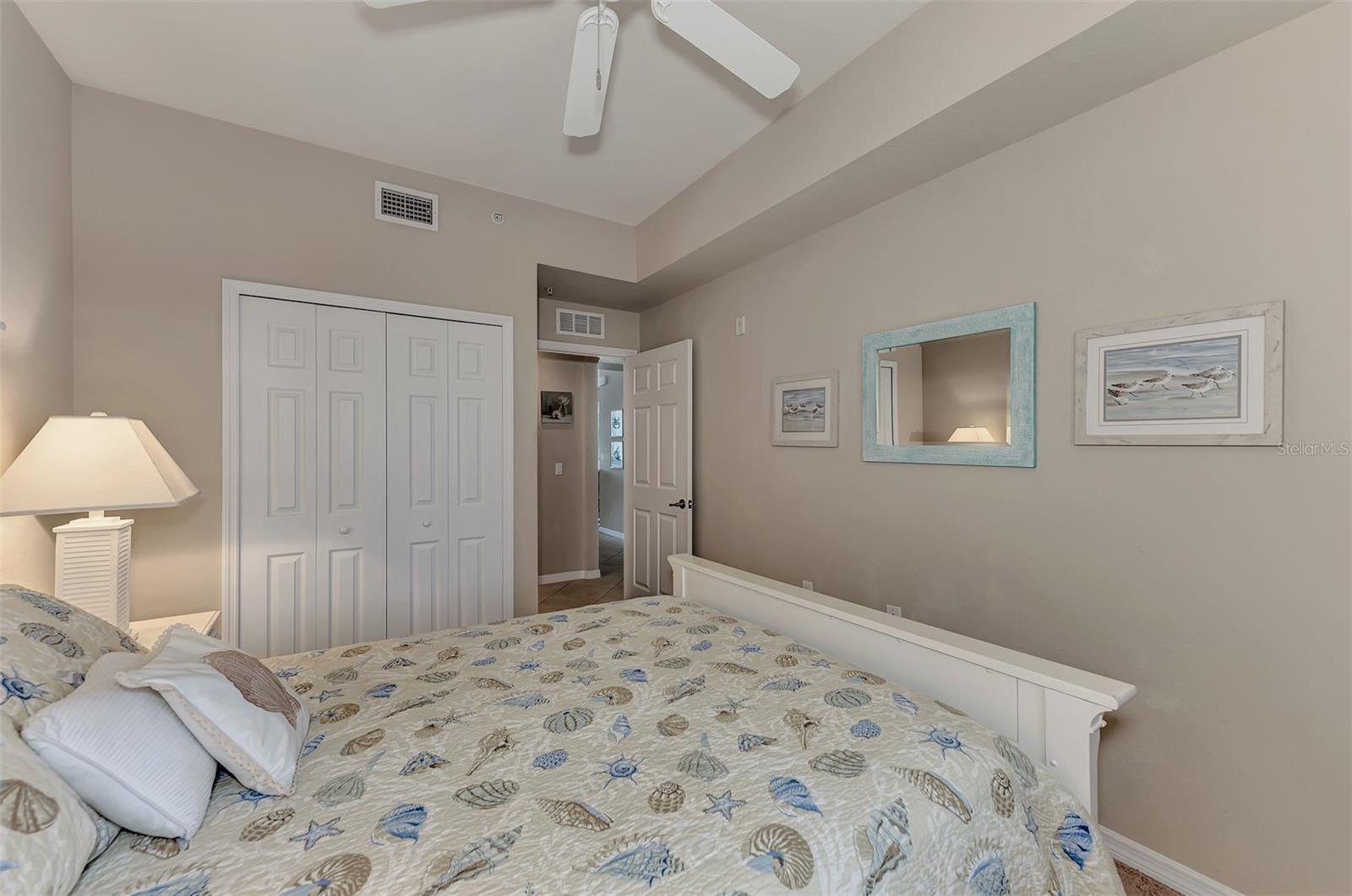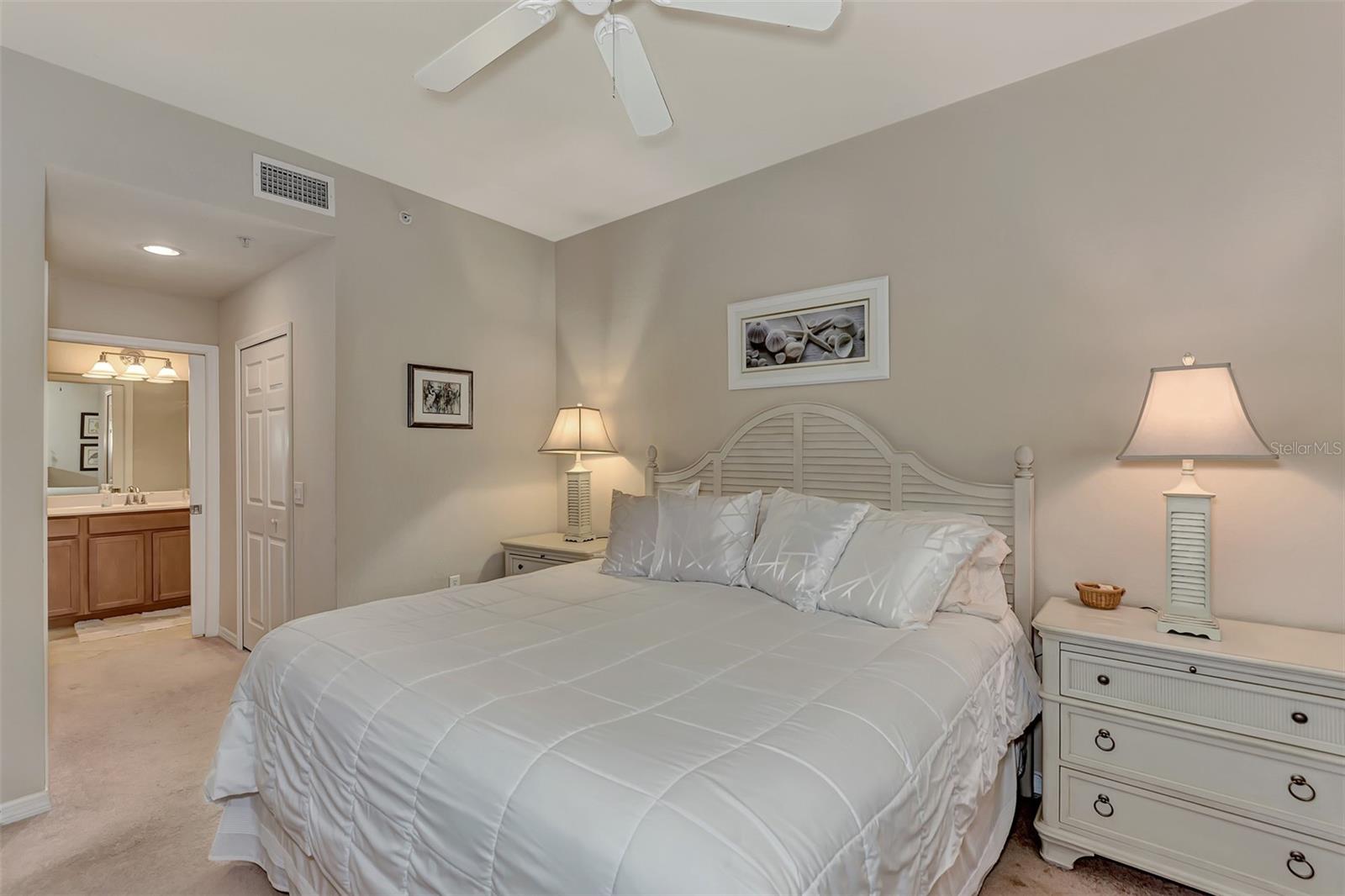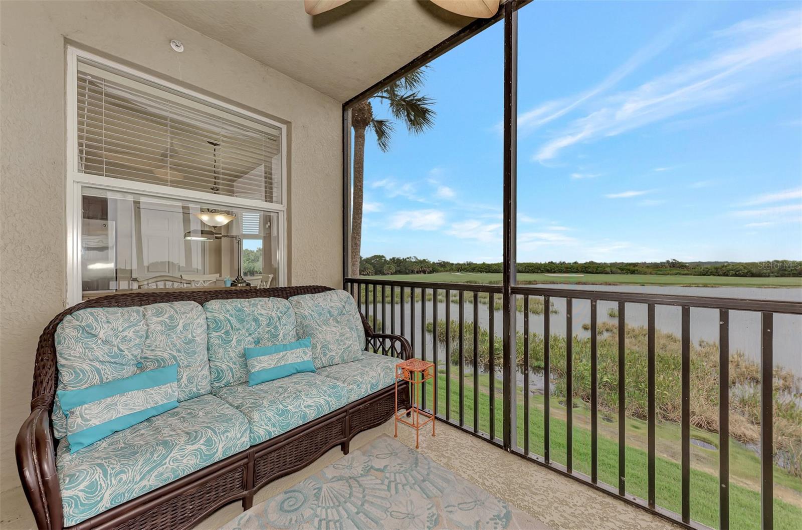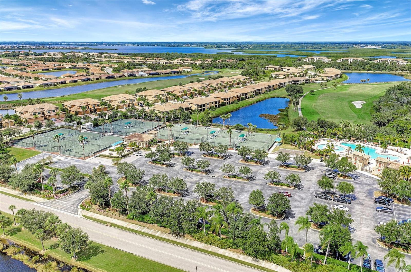 Introducing this turnkey unit at River Strand Golf and Country Club - the ultimate haven loaded with amenities that'll blow your mind. Picture this: an Arthur Hills designed golf course, 9 illuminated Har-Tru clay tennis courts, and 8 Pickleball courts. But wait, there's more! Dive into not one, but two Recreation Centers boasting resort-style pools, complete with a spa, resistance pool, and a fabulous Tiki Bar where you can order right from your poolside seat. And if that's not enough, there are 6 satellite pools sprinkled throughout the community! Keep that fitness game strong with 24/7 access to not one but two fully equipped fitness centers. Hungry? Fine dining and grill rooms await, along with billiard rooms for some after-dinner entertainment. And the fun doesn't stop there - year-round social events keep the community buzzing. Rest easy knowing your home is maintenance-free, under a transferrable home warranty until December 2024 and secured with gated entry and 24-hour guard service. Plus, pets are welcome with some restrictions. This Brookside model comes with a deeded golf membership and elevator service to the second floor, where you'll find your very own spacious locked storage area. Step inside and be greeted by a beachy vibe with soft colors and an open layout. Two bedrooms, two full bathrooms, and a washer/dryer in the hallway closet make living easy. And let's talk about that screened lanai - bug-free with a view of the pond and golf course. Don't forget about the 4 ceiling fans that will move air throughout the unit keeping you cool in the warm Florida summer. Hungry? Whip up a meal in the fully stocked kitchen with granite countertops and stainless-steel appliances, then dine in the breakfast area or entertain in the dining and living rooms. Covered assigned parking and ample guest parking make hosting a breeze. But wait, there's more! HOA fees cover cable TV with internet, water, sanitation, and sewer. Located just off I-75, River Strand is conveniently convenient to Costco, Sarasota, Lakewood Ranch, UTC Mall, airports, and, of course, the stunning beaches of Anna Maria Island and Longboat Key. Once you're part of the River Strand community, you'll never want to leave. Welcome home!