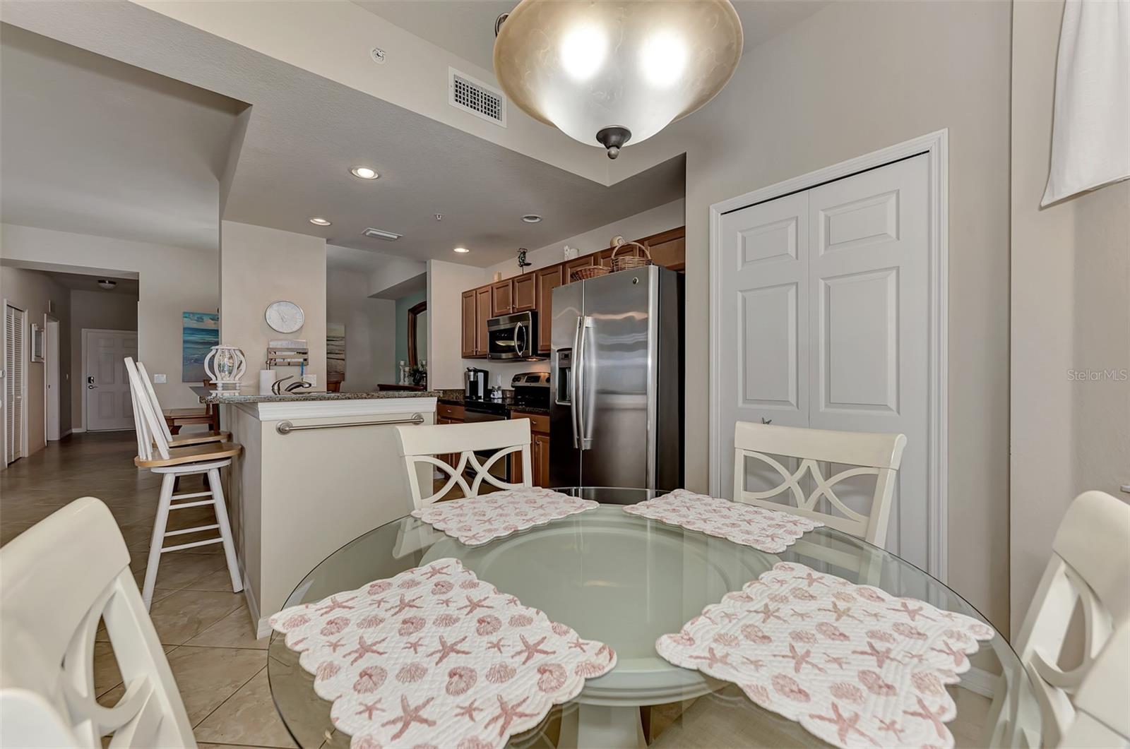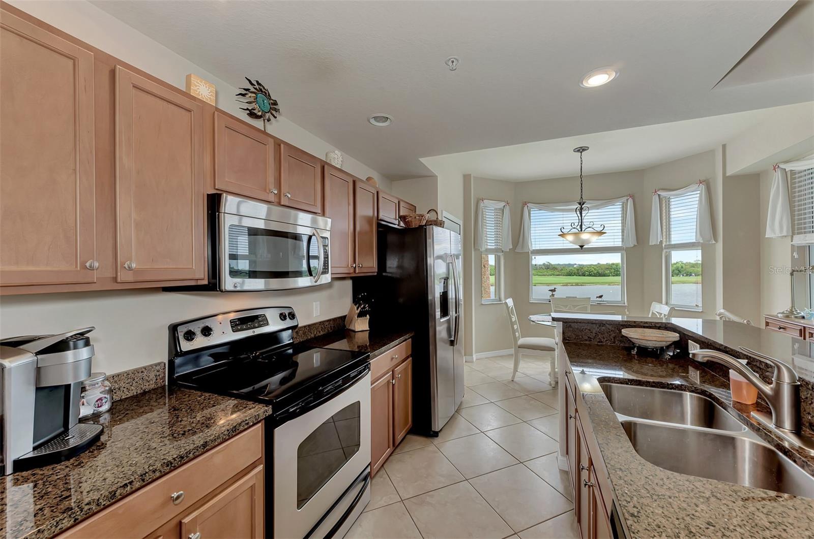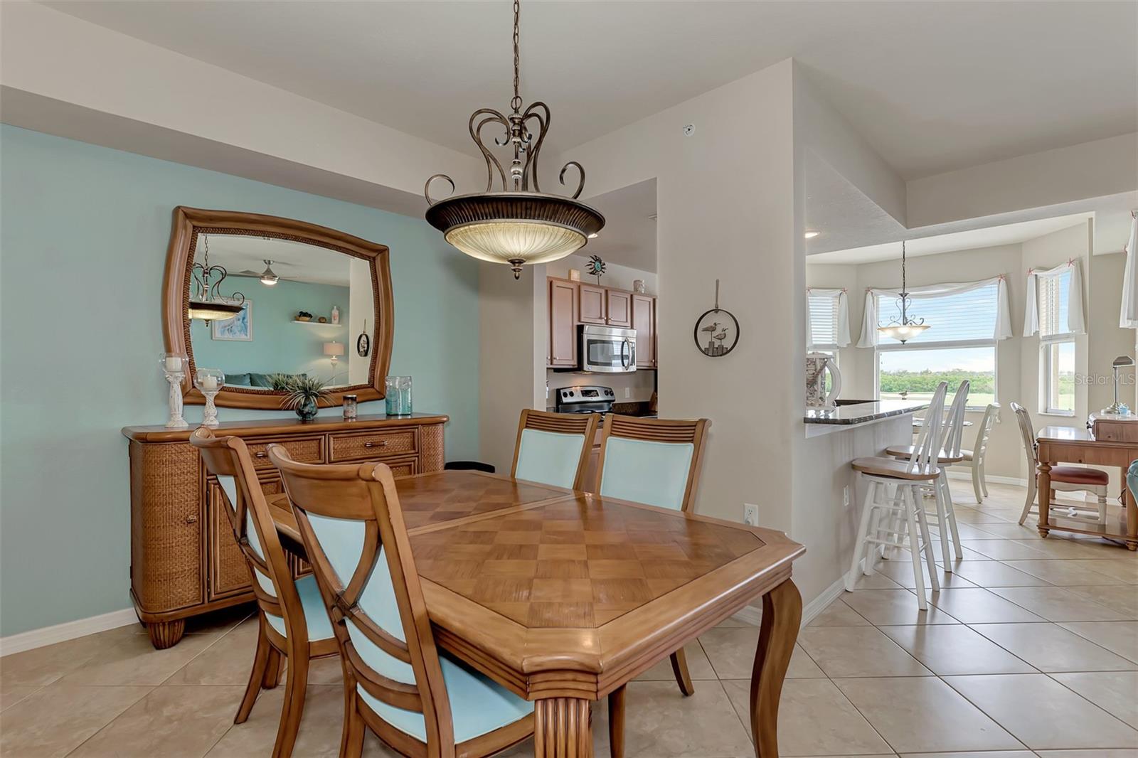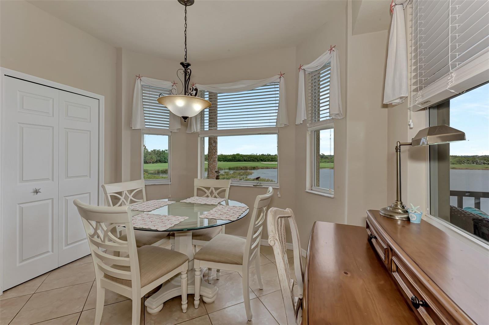 Introducing this turnkey unit at River Strand Golf and Country Club - the ultimate haven loaded with amenities that'll blow your mind. Picture this: an Arthur Hills designed golf course, 9 illuminated Har-Tru clay tennis courts, and 8 Pickleball courts. But wait, there's more! Dive into not one, but two Recreation Centers boasting resort-style pools, complete with a spa, resistance pool, and a fabulous Tiki Bar where you can order right from your poolside seat. And if that's not enough, there are 6 satellite pools sprinkled throughout the community! Keep that fitness game strong with 24/7 access to not one but two fully equipped fitness centers. Hungry? Fine dining and grill rooms await, along with billiard rooms for some after-dinner entertainment. And the fun doesn't stop there - year-round social events keep the community buzzing. Rest easy knowing your home is maintenance-free, under a transferrable home warranty until December 2024 and secured with gated entry and 24-hour guard service. Plus, pets are welcome with some restrictions. This Brookside model comes with a deeded golf membership and elevator service to the second floor, where you'll find your very own spacious locked storage area. Step inside and be greeted by a beachy vibe with soft colors and an open layout. Two bedrooms, two full bathrooms, and a washer/dryer in the hallway closet make living easy. And let's talk about that screened lanai - bug-free with a view of the pond and golf course. Don't forget about the 4 ceiling fans that will move air throughout the unit keeping you cool in the warm Florida summer. Hungry? Whip up a meal in the fully stocked kitchen with granite countertops and stainless-steel appliances, then dine in the breakfast area or entertain in the dining and living rooms. Covered assigned parking and ample guest parking make hosting a breeze. But wait, there's more! HOA fees cover cable TV with internet, water, sanitation, and sewer. Located just off I-75, River Strand is conveniently convenient to Costco, Sarasota, Lakewood Ranch, UTC Mall, airports, and, of course, the stunning beaches of Anna Maria Island and Longboat Key. Once you're part of the River Strand community, you'll never want to leave. Welcome home!