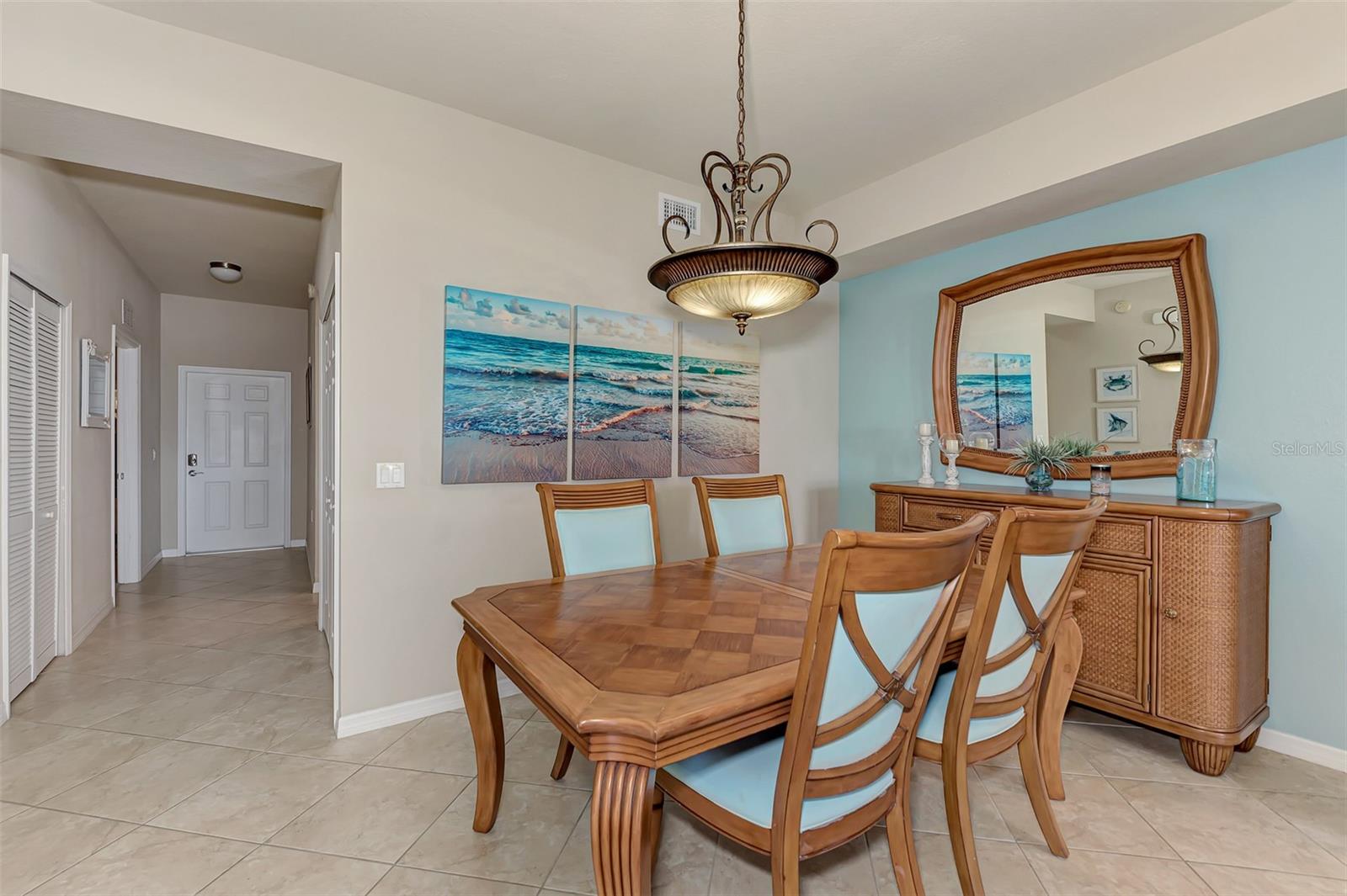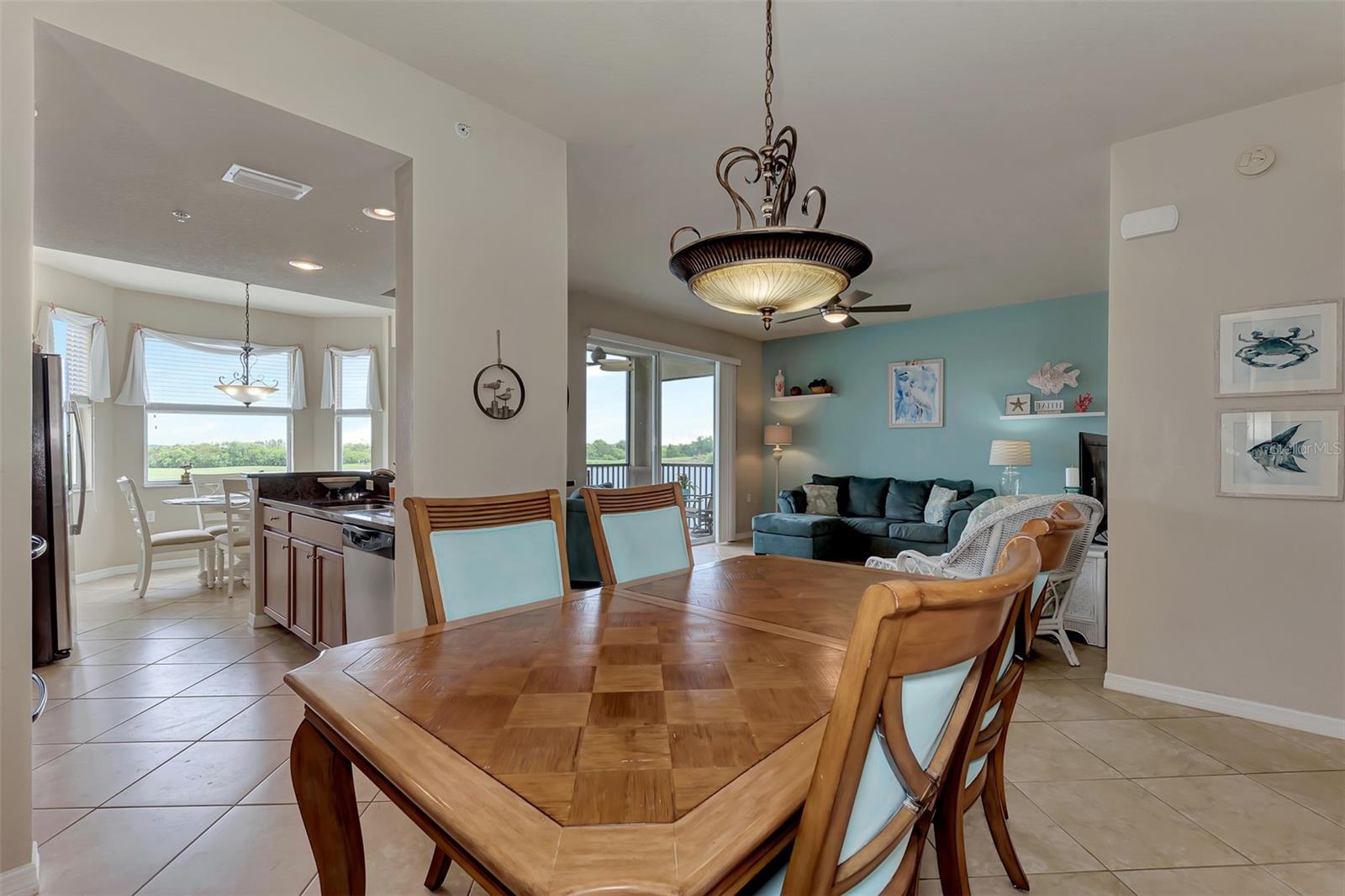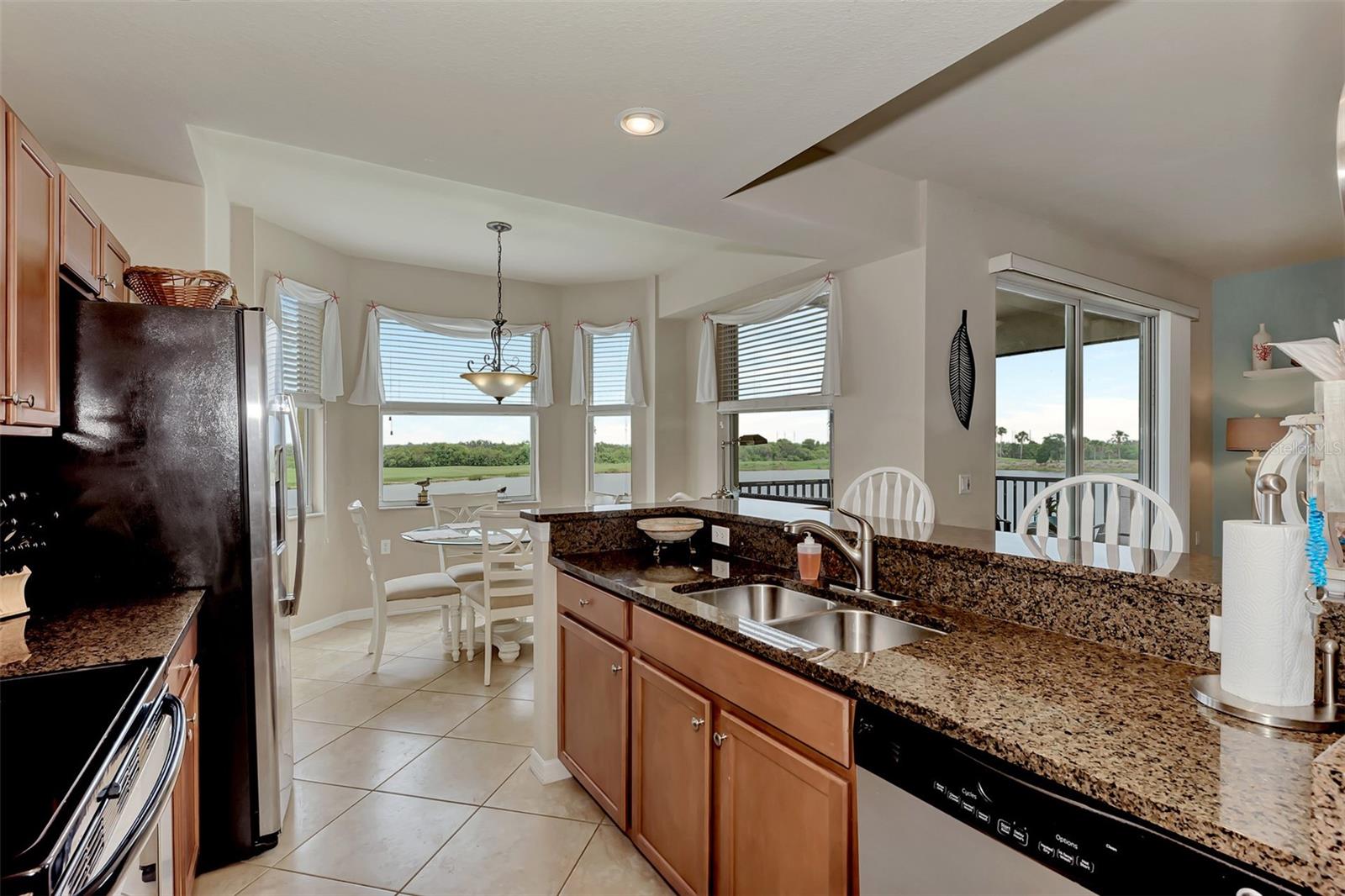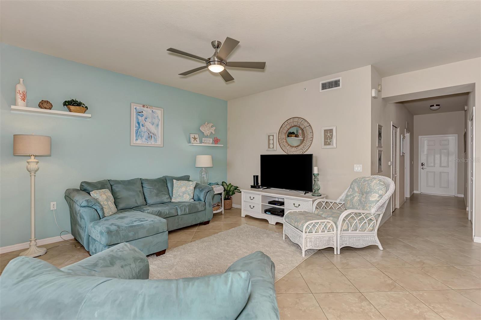 Introducing this turnkey unit at River Strand Golf and Country Club - the ultimate haven loaded with amenities that'll blow your mind. Picture this: an Arthur Hills designed golf course, 9 illuminated Har-Tru clay tennis courts, and 8 Pickleball courts. But wait, there's more! Dive into not one, but two Recreation Centers boasting resort-style pools, complete with a spa, resistance pool, and a fabulous Tiki Bar where you can order right from your poolside seat. And if that's not enough, there are 6 satellite pools sprinkled throughout the community! Keep that fitness game strong with 24/7 access to not one but two fully equipped fitness centers. Hungry? Fine dining and grill rooms await, along with billiard rooms for some after-dinner entertainment. And the fun doesn't stop there - year-round social events keep the community buzzing. Rest easy knowing your home is maintenance-free, under a transferrable home warranty until December 2024 and secured with gated entry and 24-hour guard service. Plus, pets are welcome with some restrictions. This Brookside model comes with a deeded golf membership and elevator service to the second floor, where you'll find your very own spacious locked storage area. Step inside and be greeted by a beachy vibe with soft colors and an open layout. Two bedrooms, two full bathrooms, and a washer/dryer in the hallway closet make living easy. And let's talk about that screened lanai - bug-free with a view of the pond and golf course. Don't forget about the 4 ceiling fans that will move air throughout the unit keeping you cool in the warm Florida summer. Hungry? Whip up a meal in the fully stocked kitchen with granite countertops and stainless-steel appliances, then dine in the breakfast area or entertain in the dining and living rooms. Covered assigned parking and ample guest parking make hosting a breeze. But wait, there's more! HOA fees cover cable TV with internet, water, sanitation, and sewer. Located just off I-75, River Strand is conveniently convenient to Costco, Sarasota, Lakewood Ranch, UTC Mall, airports, and, of course, the stunning beaches of Anna Maria Island and Longboat Key. Once you're part of the River Strand community, you'll never want to leave. Welcome home!
