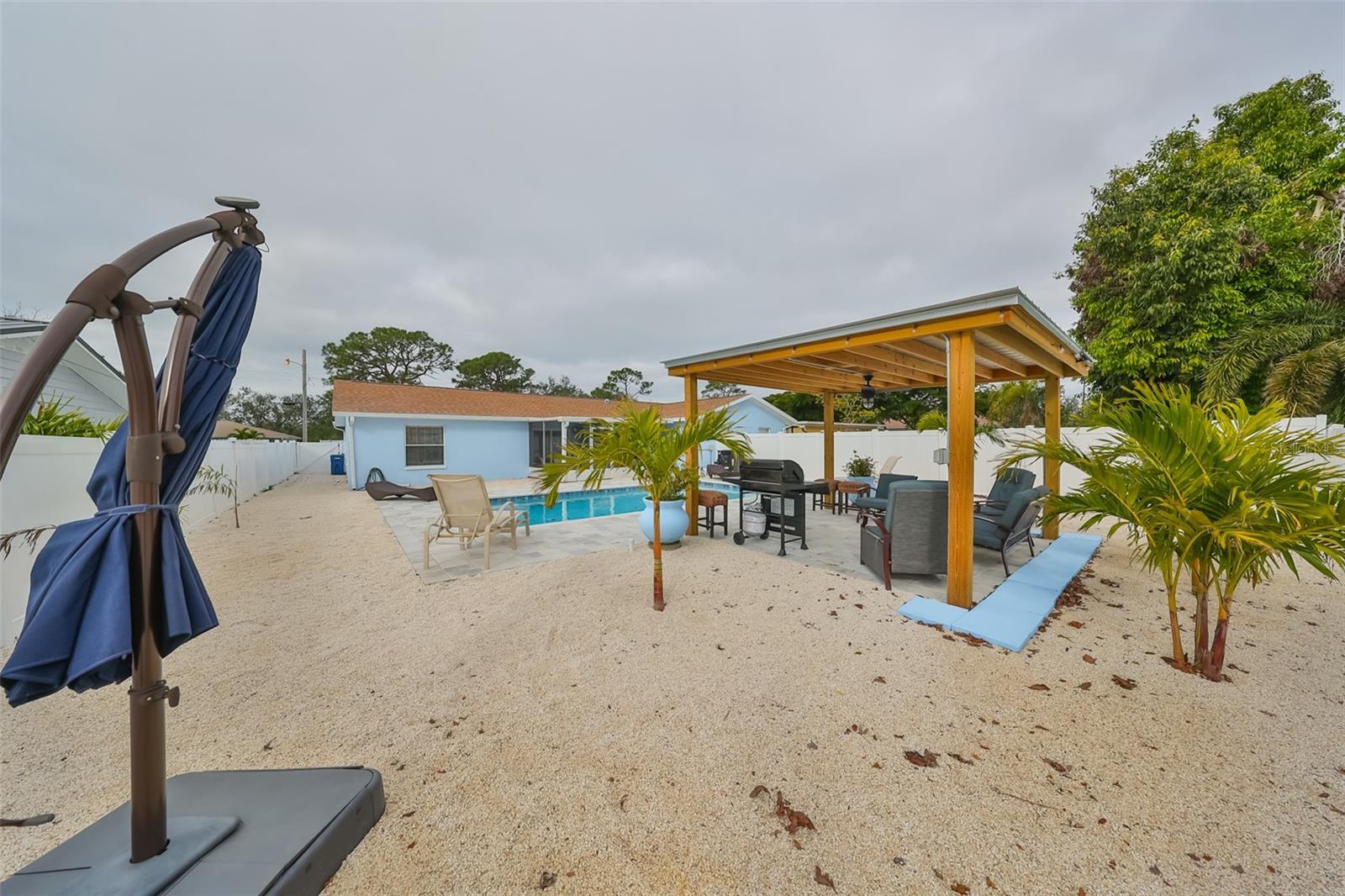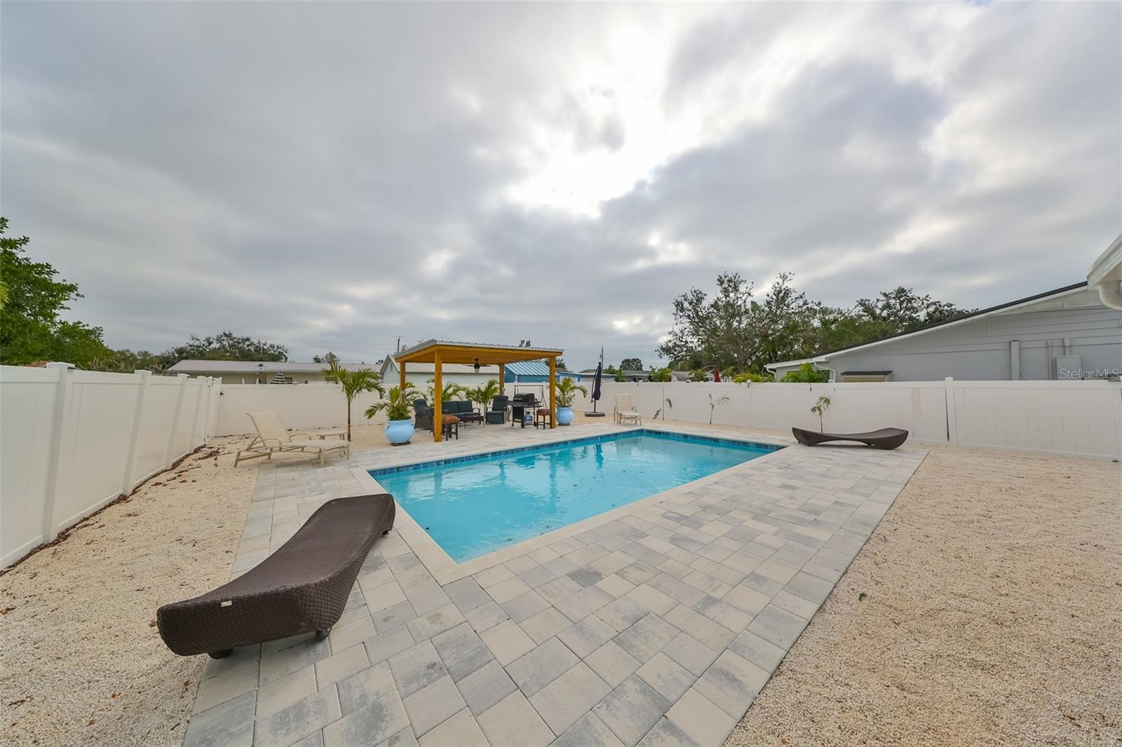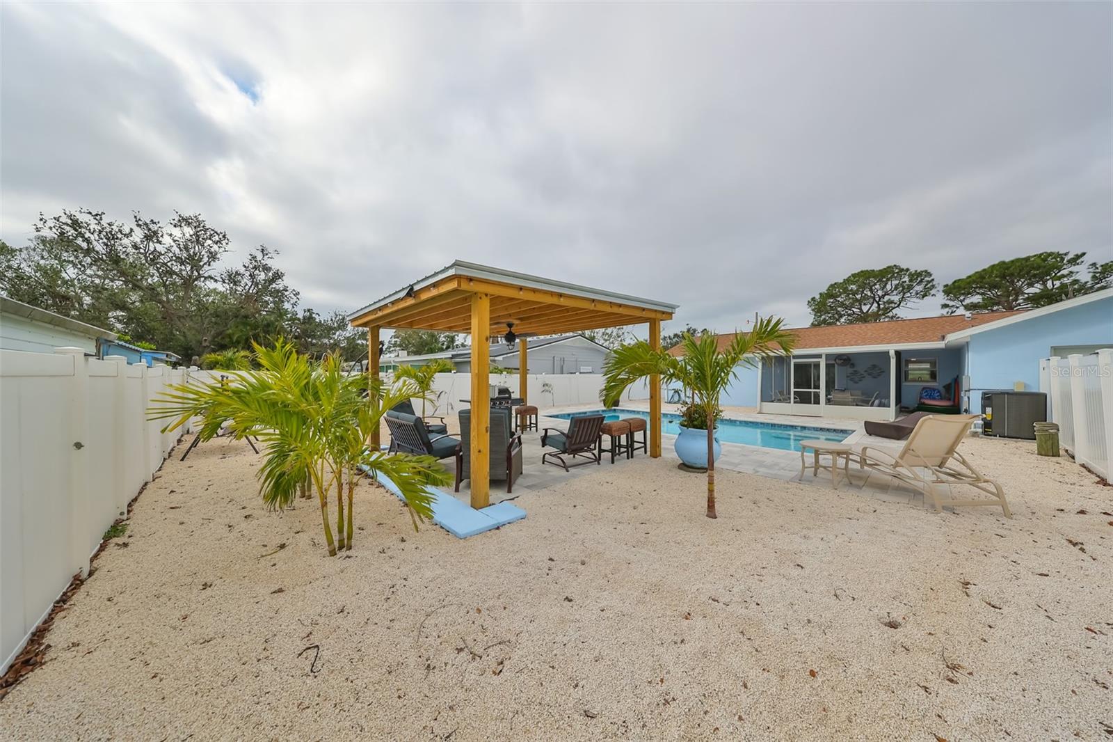 No minimum rental requirements, no flood insurance required, no HOA, no CDD! Are you searching for an oasis just minutes from the beach? Look no further! Welcome to this gorgeous pool home, offering Florida living at its finest, located just 5 miles from our pristine white sandy beaches. Whether you're looking for a beach getaway, a lucrative investment opportunity, or your very own slice of paradise, this property delivers on all fronts. Currently, the main house operates as a short-term rental, while the in-law suite is leased on a month-to-month basis. The main residence boasts 3 bedrooms and 2 full bathrooms, providing ample space for both family and guests. The open-concept living area exudes a welcoming ambiance, ideal for relaxation and entertaining. Expansive windows allow abundant natural light to pour in, enhancing the home's warmth and charm. Step outside to your private, fenced backyard retreat, complete with a screened lanai, a stunning heated pool, and a serene gazebo—perfect for cooling off, unwinding, or simply soaking up the Florida sunshine. This tranquil outdoor space is truly a standout feature of the property. For added versatility, the property includes a fully equipped in-law suite with its own private entrance and fenced backyard. This self-contained living area features 1 bedroom, 1 bathroom, a cozy living room, and a full kitchen, making it an excellent option for guests, extended family, or even as a potential rental unit. Pool added 2024, A/C replaced 2023, Roof replaced 2022. Conveniently located near the beaches, shopping, restaurants, hospitals, etc. This exceptional home offers a rare combination of prime location, luxury living, and income-generating potential. Don't miss out on the opportunity to experience everything this property has to offer—schedule your private showing today!
