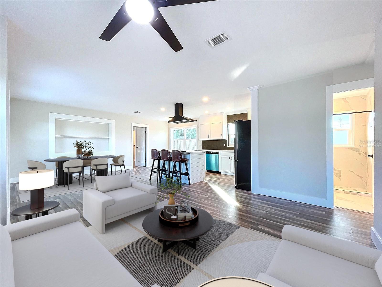One or more photo(s) has been virtually staged. Discover a rare opportunity to own an exquisite investment property in the heart of paradise. This beautifully renovated single-family residence in the sought-after transformative Bayshore Gardens neighborhood of Bradenton offers the perfect blend of luxury, convenience, and vacation rental income potential. Just minutes from top-ranked beaches, IMG Academy, and an abundance of amenities like golf, shopping, dining, and entertainment, this property is an investor’s dream with potential capitalization rate returns of 9% to 13%. Located in the popular and convenient neighborhood of Bayshore Gardens in Bradenton, this home enjoys the freedom of no HOA rules while providing resort-style amenities you'd expect from a luxury hotel. Indulge in the community pool, secure a boat slip at the marina, or enjoy the recreation facilities—all within your reach. Step inside to 1,098 square feet of thoughtfully upgraded living space under air. The home shines with new exterior paint and shutters, and the interior boasts a fully renovated layout featuring three bedrooms and two bathrooms. Enjoy peace of mind with a new shingled roof installed in 2024, soffit and fascia, updated HVAC system, and impact windows that flood the space with natural light. Elegant touches like crown baseboards and door molding add to the home's charm. The spacious open-concept kitchen and living room are perfect for entertaining. The kitchen is a chef's dream, featuring can lights, an oven/stove island with a ceiling-mounted hood vent, beautiful white Carrara quartz countertops, and wood grain flooring. The master suite offers an entirely new ensuite bathroom with ample storage and a large walk-in shower. With a split floor plan, the primary bedroom is on the opposite side of the home from the other two bedrooms and bath, providing privacy and tranquility. Outside, the shell driveway has been widened to fit four cars, and there's a gated area perfect for storing jet skis, a fishing boat, or a golf cart. The large privacy-fenced backyard offers room for pets to run and endless possibilities for adding a pool or outdoor living amenities. A custom built-in bookcase with shelves adds a touch of elegance and functionality to the living space. As part of the Bayshore Gardens Park and Recreation District, an annual fee of $417 included in your property taxes grants you access to an array of community amenities. Enjoy a Jr. Olympic-sized pool, pickleball and basketball courts, picnic and BBQ pavilions, a park, playground, and fishing pier. For small additional fees, access the community marina, boat ramp, boat slips, and recreation hall. Engage with the vibrant community through various social clubs, including a Yacht Club, Garden Club, Woodchoppers Club, Bunco, and more. This prime location offers easy access to the downtowns and attractions of Bradenton, Sarasota, and Lakewood Ranch. Surround yourself with lifestyle choices like golf, boating, fishing, live entertainment, farmer's markets, and a variety of cultural arts. And let's not forget the world-class beaches just minutes away. Convenience is key, with proximity to airports, family activities, Disney World, Mote Marine, or even catching a cruise ship from Tampa Bay.