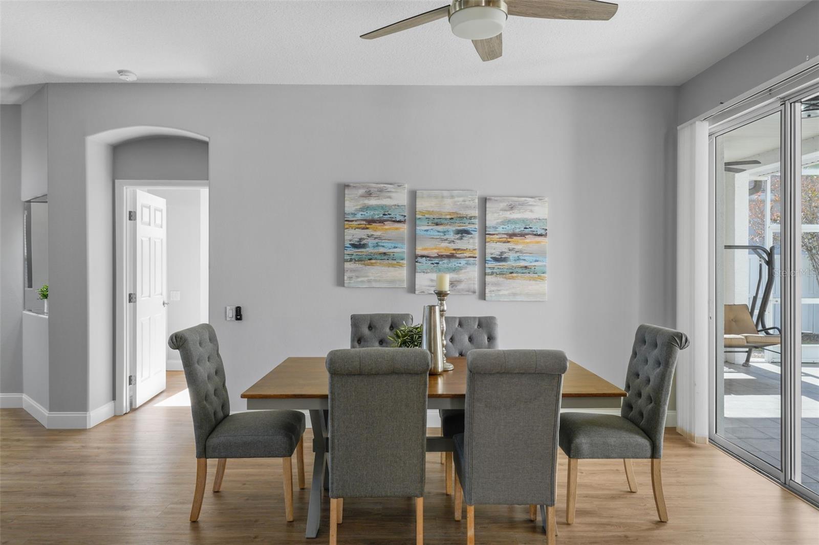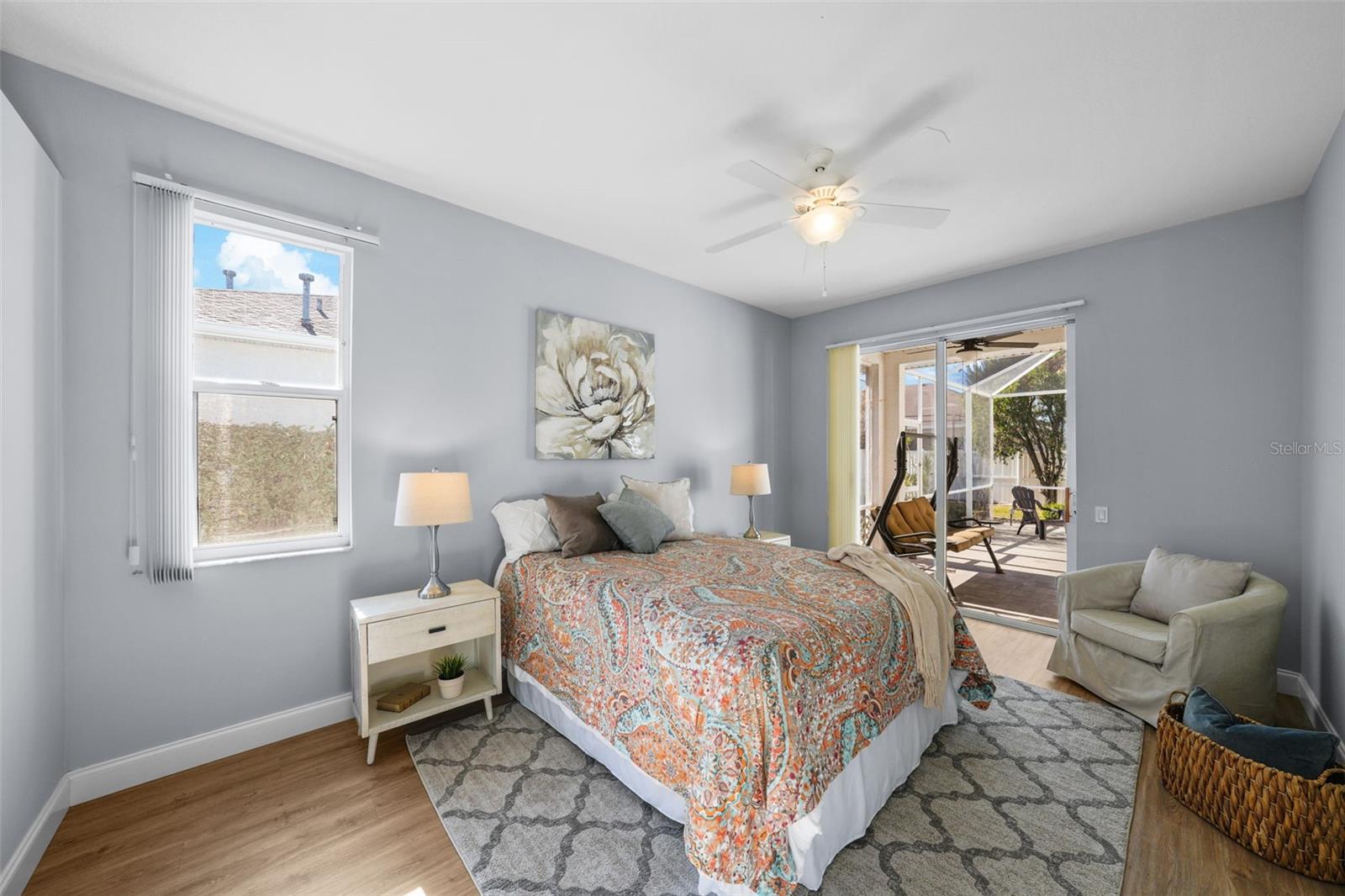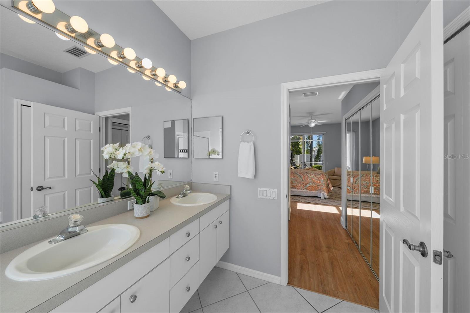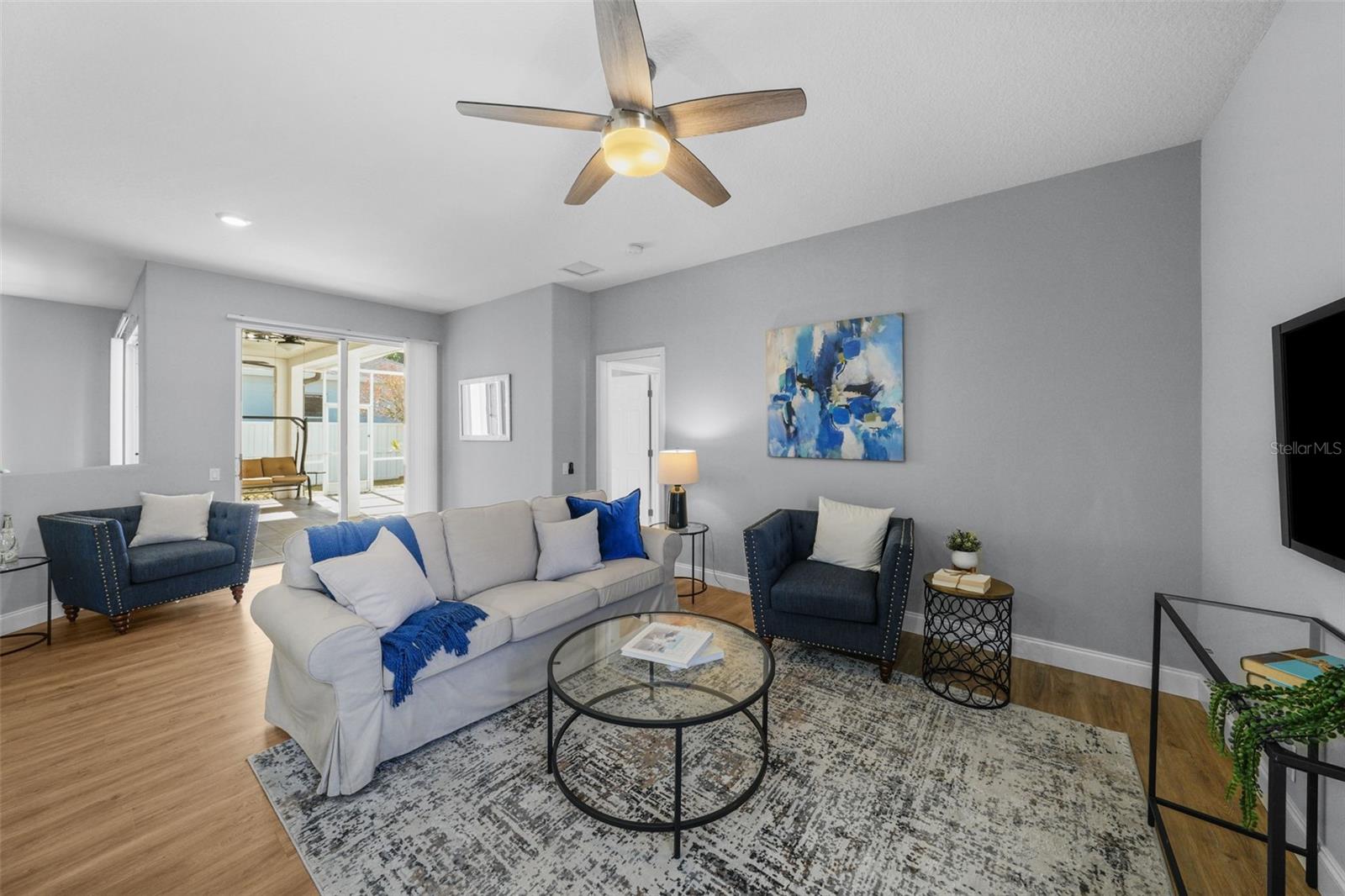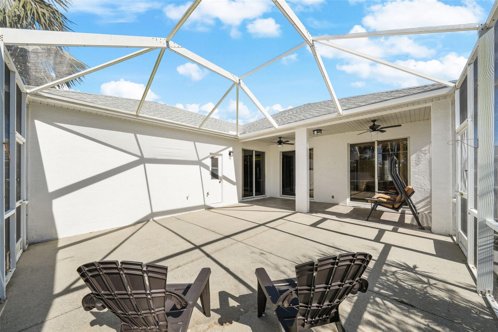 PRICE REDUCTION...GOLF COURSE HOME...PERFECT LOCATION...10 MINUTES TO I-75, COSTCO, LAKEWOOD RANCFH. This solid, concrete block, 1,797 sq ft home offers comfort and style within minutes of schools, shopping, healthcare, fitness, restaurants and Starbucks. The split floorplan includes 3 bedrooms and 2 bathrooms, laundry room and a 567 sq ft screened patio. The covered portion of the patio features 2 ceiling fans, providing comfort while enjoying your outdoor space. Sliding glass doors in the primary suite, dining area and great room provide seamless indoor/outdoor living. The screened front entry creates the option for cross ventilation The spacious kitchen, with bar-area that provides seating for 5, is part of the large great room. Perfect for entertaining. The primary suite has 2 closets, double sinks, walk-in shower and tub. The hall bath, located on the other side of the house, includes a door to the screened lanai. Are you looking for a low maintenance home in meticulous condition, located in a charming community? Schedule your showing now!