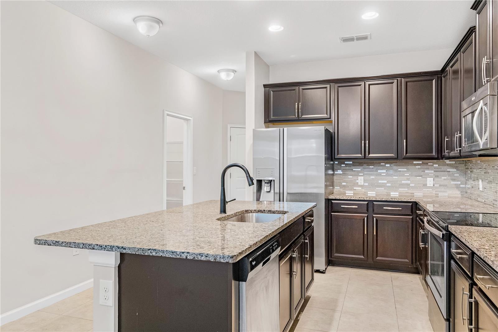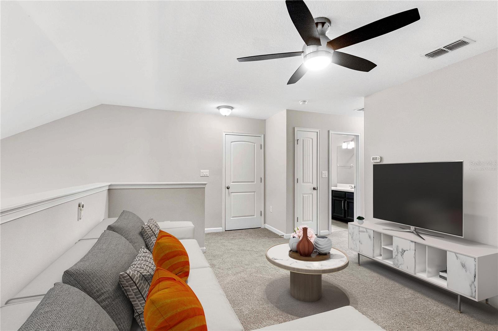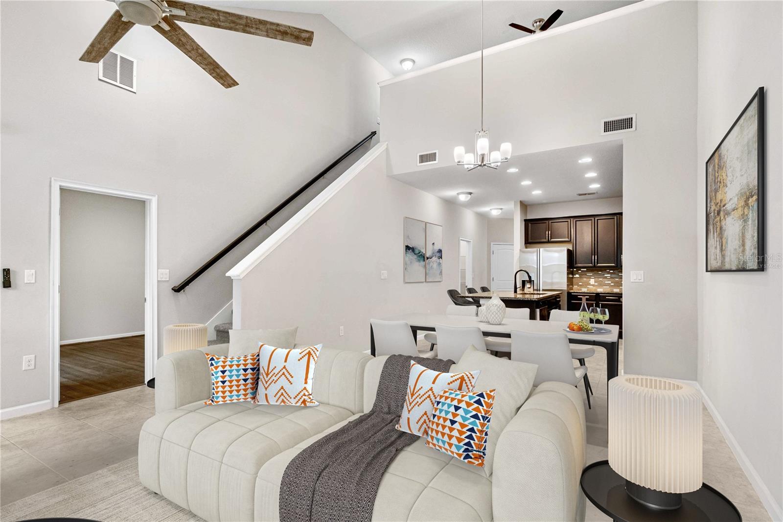 One or more photo(s) has been virtually staged. Spacious & Low-Maintenance Townhome! This 3 bedroom, 2.5-bathroom townhome is located in the sought-after Harmony at Lakewood Ranch! Enjoy a low maintenance home that combines the perfect combination of space, convenience, and an amazing location with Lakewood Ranch shops, dining, and school all nearby! Step inside to an inviting open floor plan with soaring ceilings. The kitchen is equipped with 42-inch Sonoma Cherry Java cabinetry, granite countertops with bar seating, stainless steel appliances, and a large walk-in pantry—ideal for gathering, family meals, or entertaining. Adjacent to the kitchen island, the dining space opens to a Grand Living Room with soaring vaulted ceilings. The first-floor primary suite provides a peaceful retreat, featuring newer luxury vinyl floors, a tray ceiling and sliding doors that lead directly to a covered lanai for outdoor relaxation. The spacious primary bath includes an oversized frameless glass shower, large walk-in closet, and dual vanities. Head upstairs to experience the large open loft, offering flexible space for an office, playroom, additional media area, or just a space to relax with your favorite book. The bonus upstairs storage room provides room for storing holiday decorations or extra gear from your favorite hobby! Completing the freshly carpeted 2nd floor layout are two additional bedrooms, and a full bath with a convenient hall linen closet. Enjoy the Florida lifestyle in Harmony at Lakewood Ranch. This townhome's location being in close proximity to Harmony's amenity center is ideal. Amenities include a lap pool, fitness center, playground, community clubhouse, and BBQ area. Located in Lakewood Ranch, this home is just steps from shopping, dining, parks, bike trails, UTC Mall, Waterside Place, world-class Gulf Coast beaches, and the area's top-rates schools. If you’re looking for a low-maintenance move-in-ready home in America's #1 rated multi-gen community of Lakewood Ranch, this is it! Schedule your private tour today!