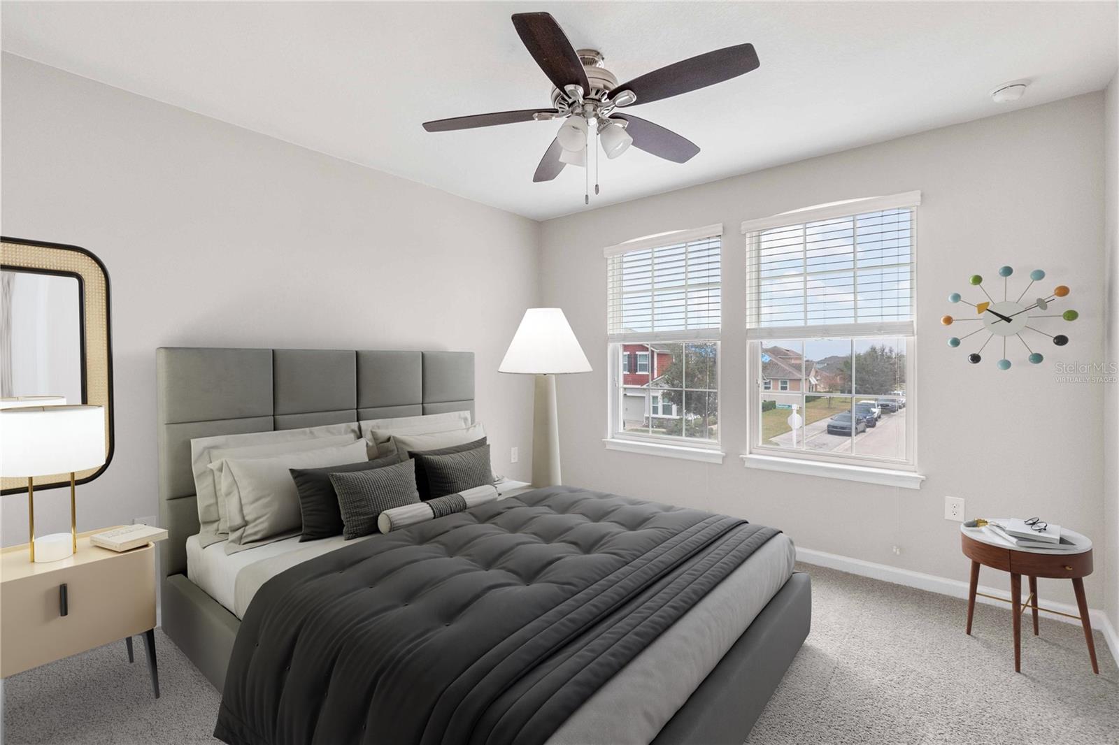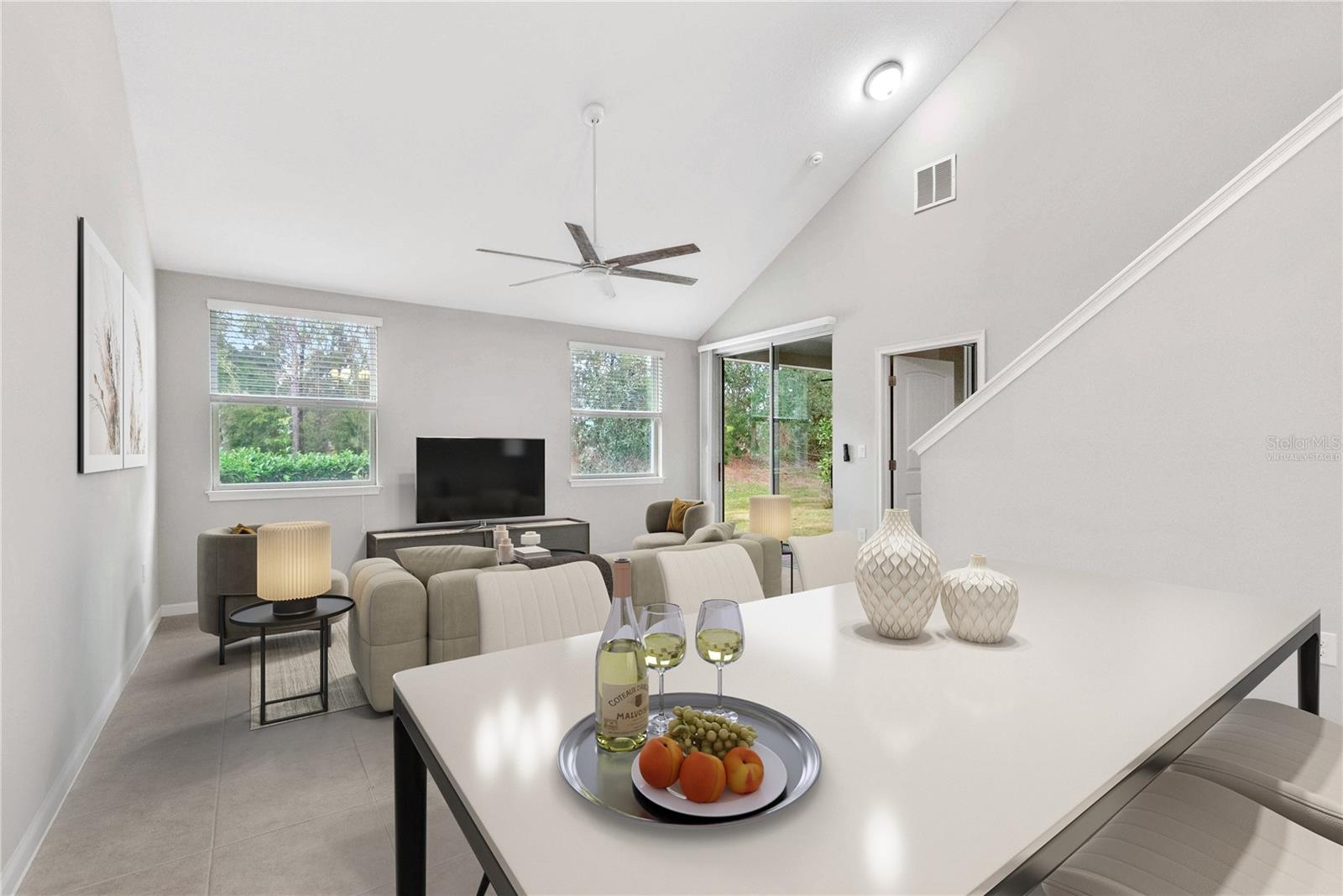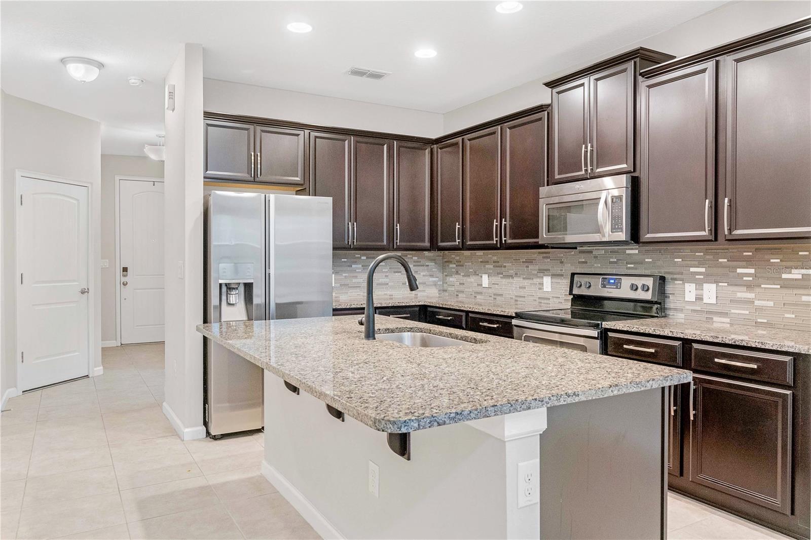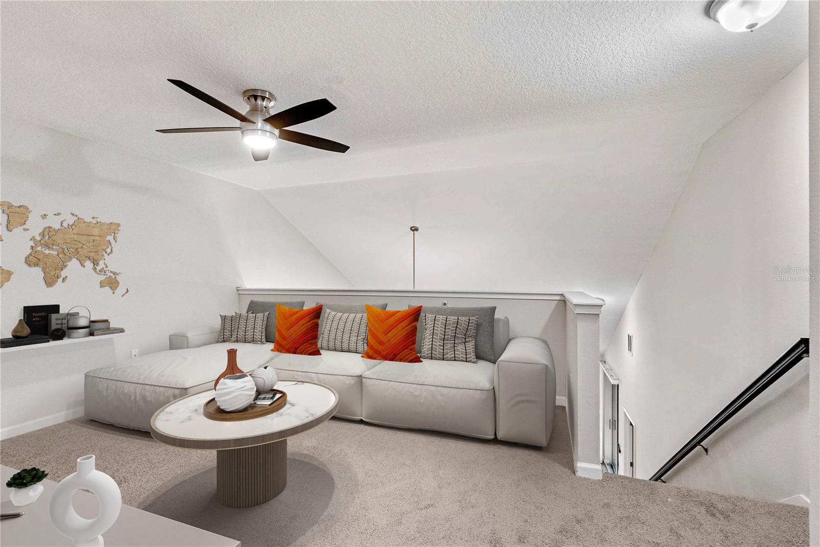 One or more photo(s) has been virtually staged. Spacious & Low-Maintenance Townhome! This 3 bedroom, 2.5-bathroom townhome is located in the sought-after Harmony at Lakewood Ranch! Enjoy a low maintenance home that combines the perfect combination of space, convenience, and an amazing location with Lakewood Ranch shops, dining, and school all nearby! Step inside to an inviting open floor plan with soaring ceilings. The kitchen is equipped with 42-inch Sonoma Cherry Java cabinetry, granite countertops with bar seating, stainless steel appliances, and a large walk-in pantry—ideal for gathering, family meals, or entertaining. Adjacent to the kitchen island, the dining space opens to a Grand Living Room with soaring vaulted ceilings. The first-floor primary suite provides a peaceful retreat, featuring newer luxury vinyl floors, a tray ceiling and sliding doors that lead directly to a covered lanai for outdoor relaxation. The spacious primary bath includes an oversized frameless glass shower, large walk-in closet, and dual vanities. Head upstairs to experience the large open loft, offering flexible space for an office, playroom, additional media area, or just a space to relax with your favorite book. The bonus upstairs storage room provides room for storing holiday decorations or extra gear from your favorite hobby! Completing the freshly carpeted 2nd floor layout are two additional bedrooms, and a full bath with a convenient hall linen closet. Enjoy the Florida lifestyle in Harmony at Lakewood Ranch. This townhome's location being in close proximity to Harmony's amenity center is ideal. Amenities include a lap pool, fitness center, playground, community clubhouse, and BBQ area. Located in Lakewood Ranch, this home is just steps from shopping, dining, parks, bike trails, UTC Mall, Waterside Place, world-class Gulf Coast beaches, and the area's top-rates schools. If you’re looking for a low-maintenance move-in-ready home in America's #1 rated multi-gen community of Lakewood Ranch, this is it! Schedule your private tour today!