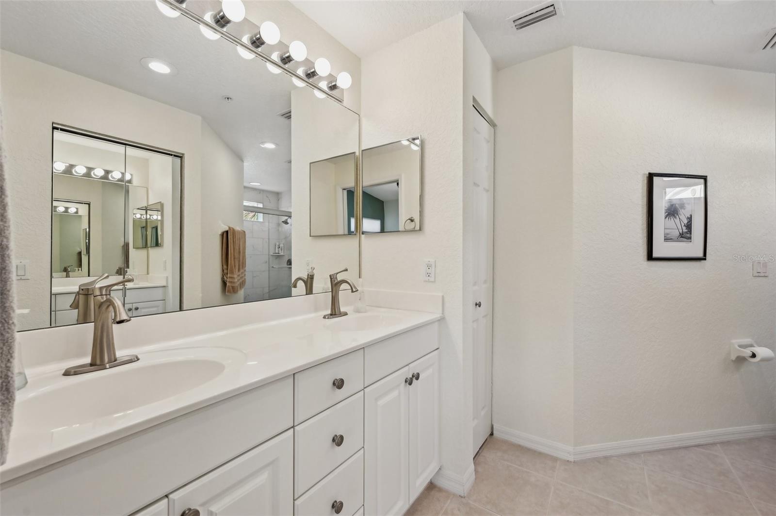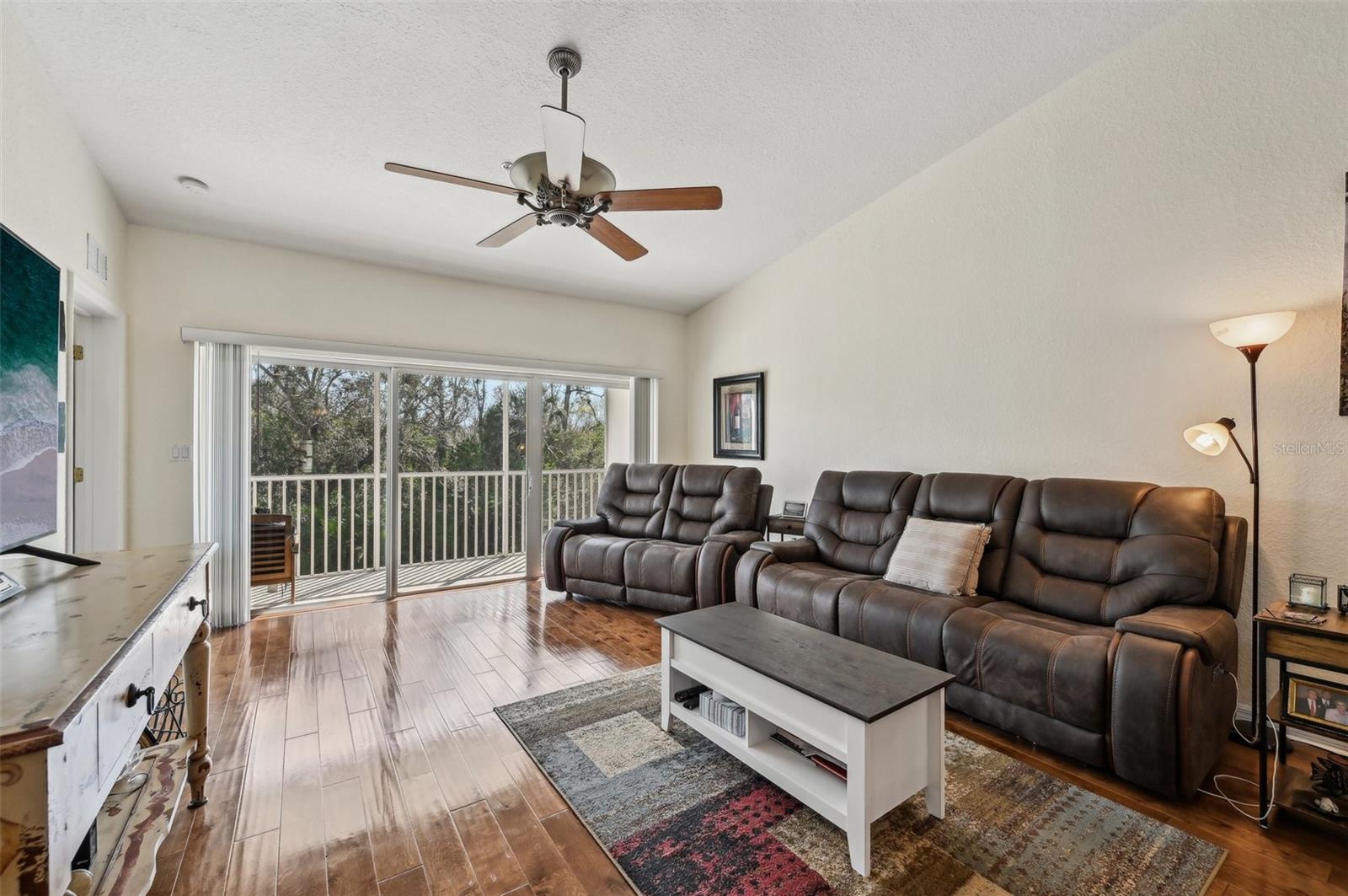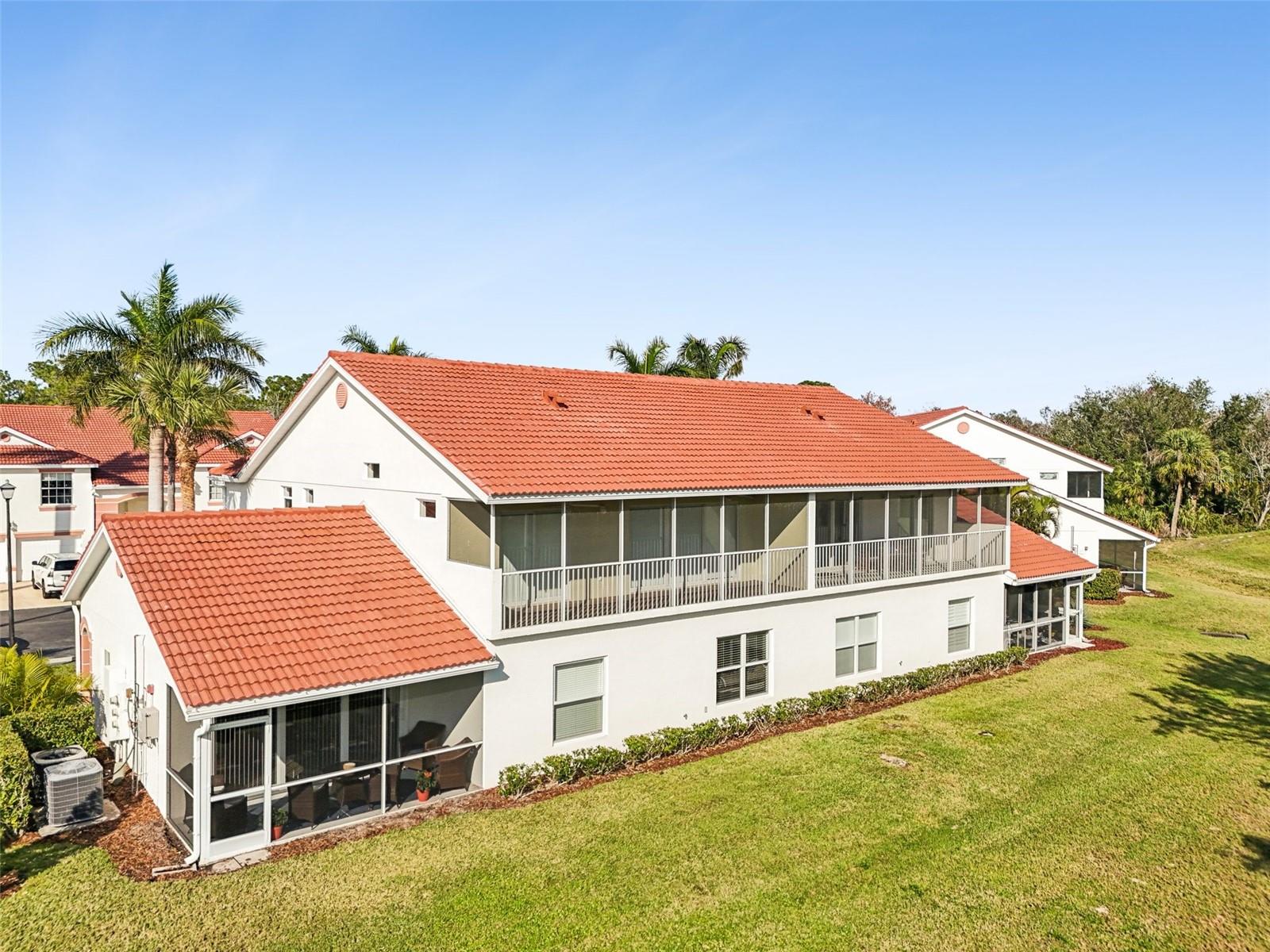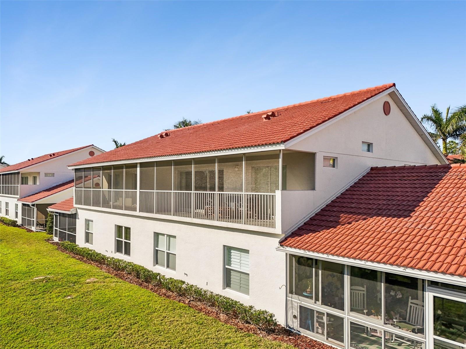 Experience the best of both worlds in this meticulously maintained 2BR/2BA, 1,398+/- sq. ft., 1-car garage home nestled in the charming Orchid Cove neighborhood within the sought-after Tara Preserve community. New Lennox, 17 seer HVAC. Newly updated primary bathroom, chandelier, new carpeting in the guest bedroom and stairs, new ROOF 2024 (assessment paid in full), fresh paint, brand new countertops, and updated window treatments recently installed. This unit has hurricane windows and sliding glass doors. As you ascend the steps from the foyer, you'll be greeted by an inviting open layout with high ceilings and beautiful wood flooring throughout most of the home. The kitchen has been thoughtfully designed, featuring recessed lighting, pristine white cabinetry and countertops, a built-in desk area, modern appliances, and both an eat-in area and a breakfast bar for your convenience. The split bedroom plan ensures added privacy, with the primary suite boasting soaring ceilings and windows, balcony access, and a primary bath equipped with dual vanities and a walk-in shower. Step onto your expansive screened balcony, where you'll find serene views of the preserve, pond, and golf course, creating a tranquil outdoor oasis perfect for unwinding or hosting guests. Living in Tara Preserve/Orchid Grove comes with an abundance of amenities, including a clubhouse, two pools, a golf course, high-speed Internet, a premier cable package, a community center, tennis and pickleball courts, and much more. The Orchid Cove community has its own community pool. It's totally maintenance free living for $1375 quarterly. CDD's fees of $434 are included in the taxes. There is a yearly fee of $1053 that includes Comcast Cable TV with voice activated remotes, HBO, ESPN, music and expansive channels, and High-speed internet. Plus, you're just a short drive away from I-75, the UTC mall, dining, shopping, and beautiful beaches. Revel in the spaciousness, privacy, and convenience of a single-family home with all the low-maintenance perks of condominium living.