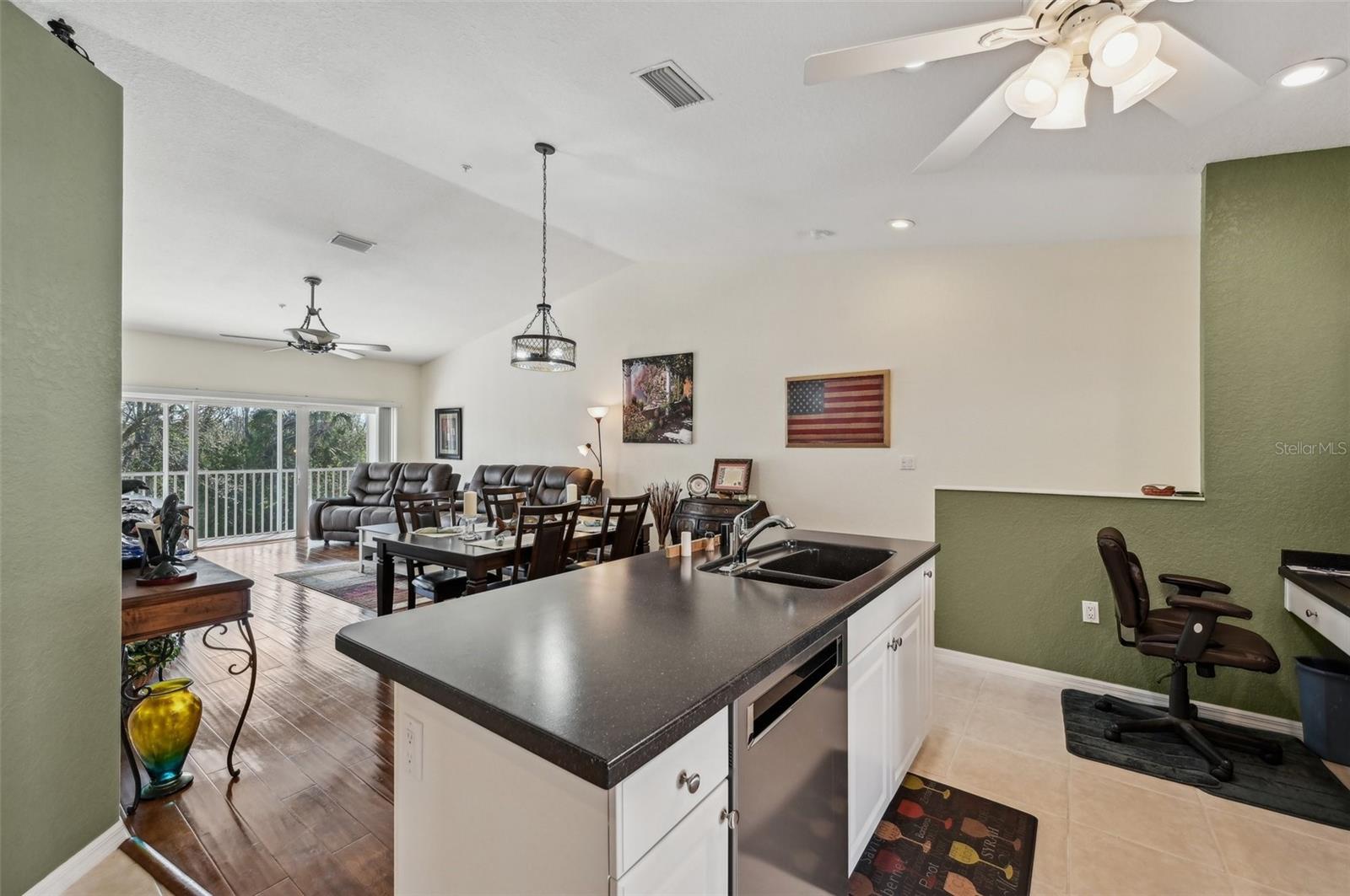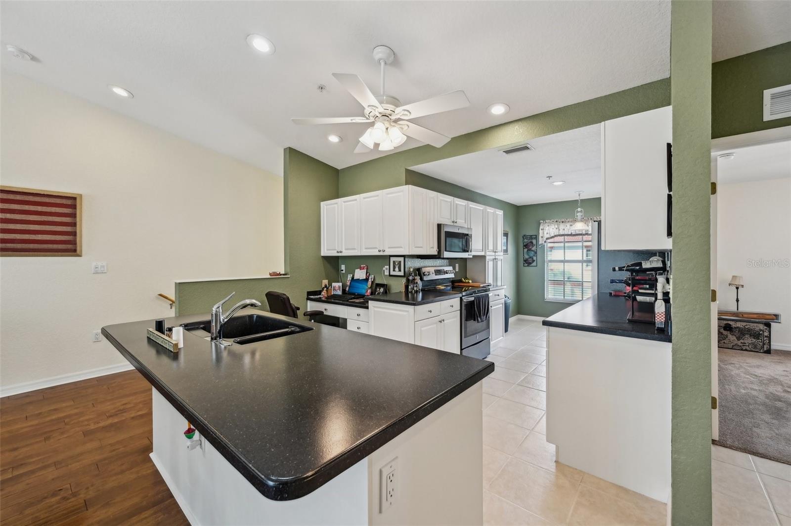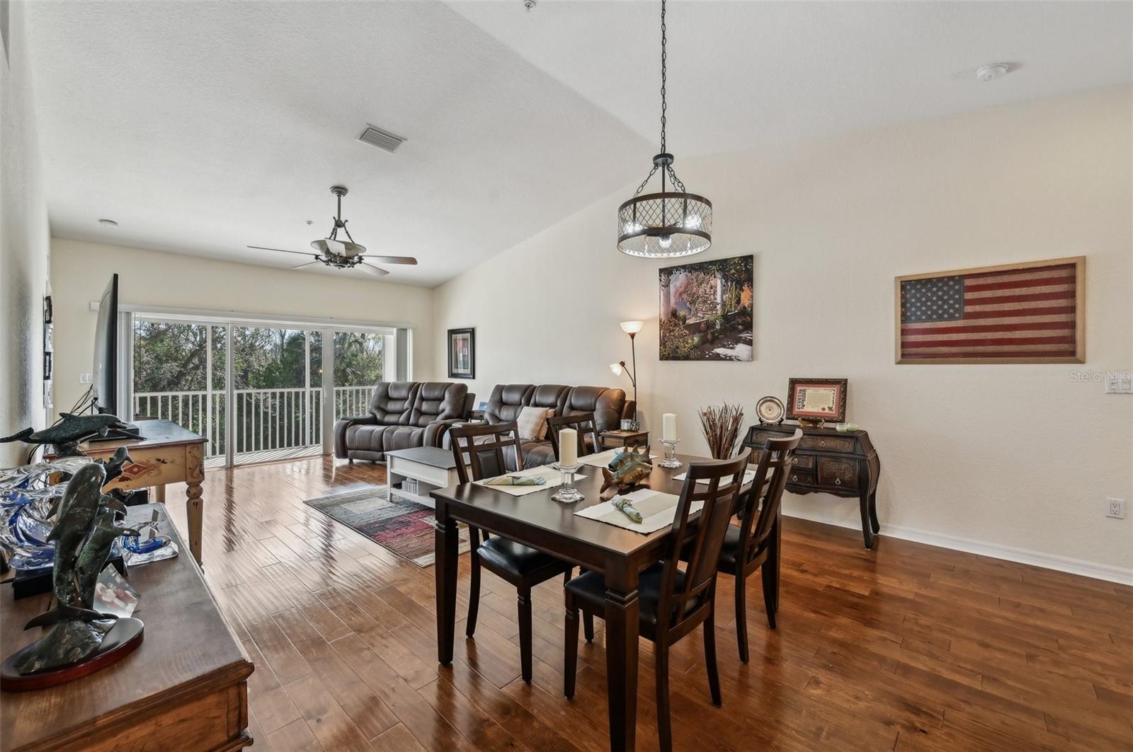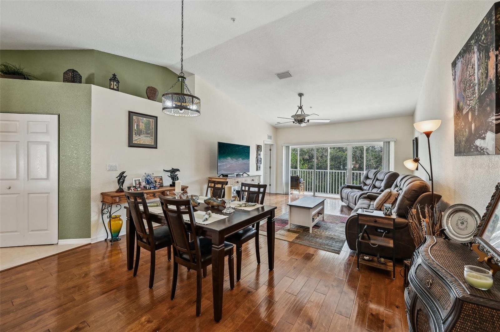 Experience the best of both worlds in this meticulously maintained 2BR/2BA, 1,398+/- sq. ft., 1-car garage home nestled in the charming Orchid Cove neighborhood within the sought-after Tara Preserve community. New Lennox, 17 seer HVAC. Newly updated primary bathroom, chandelier, new carpeting in the guest bedroom and stairs, new ROOF 2024 (assessment paid in full), fresh paint, brand new countertops, and updated window treatments recently installed. This unit has hurricane windows and sliding glass doors. As you ascend the steps from the foyer, you'll be greeted by an inviting open layout with high ceilings and beautiful wood flooring throughout most of the home. The kitchen has been thoughtfully designed, featuring recessed lighting, pristine white cabinetry and countertops, a built-in desk area, modern appliances, and both an eat-in area and a breakfast bar for your convenience. The split bedroom plan ensures added privacy, with the primary suite boasting soaring ceilings and windows, balcony access, and a primary bath equipped with dual vanities and a walk-in shower. Step onto your expansive screened balcony, where you'll find serene views of the preserve, pond, and golf course, creating a tranquil outdoor oasis perfect for unwinding or hosting guests. Living in Tara Preserve/Orchid Grove comes with an abundance of amenities, including a clubhouse, two pools, a golf course, high-speed Internet, a premier cable package, a community center, tennis and pickleball courts, and much more. The Orchid Cove community has its own community pool. It's totally maintenance free living for $1375 quarterly. CDD's fees of $434 are included in the taxes. There is a yearly fee of $1053 that includes Comcast Cable TV with voice activated remotes, HBO, ESPN, music and expansive channels, and High-speed internet. Plus, you're just a short drive away from I-75, the UTC mall, dining, shopping, and beautiful beaches. Revel in the spaciousness, privacy, and convenience of a single-family home with all the low-maintenance perks of condominium living.