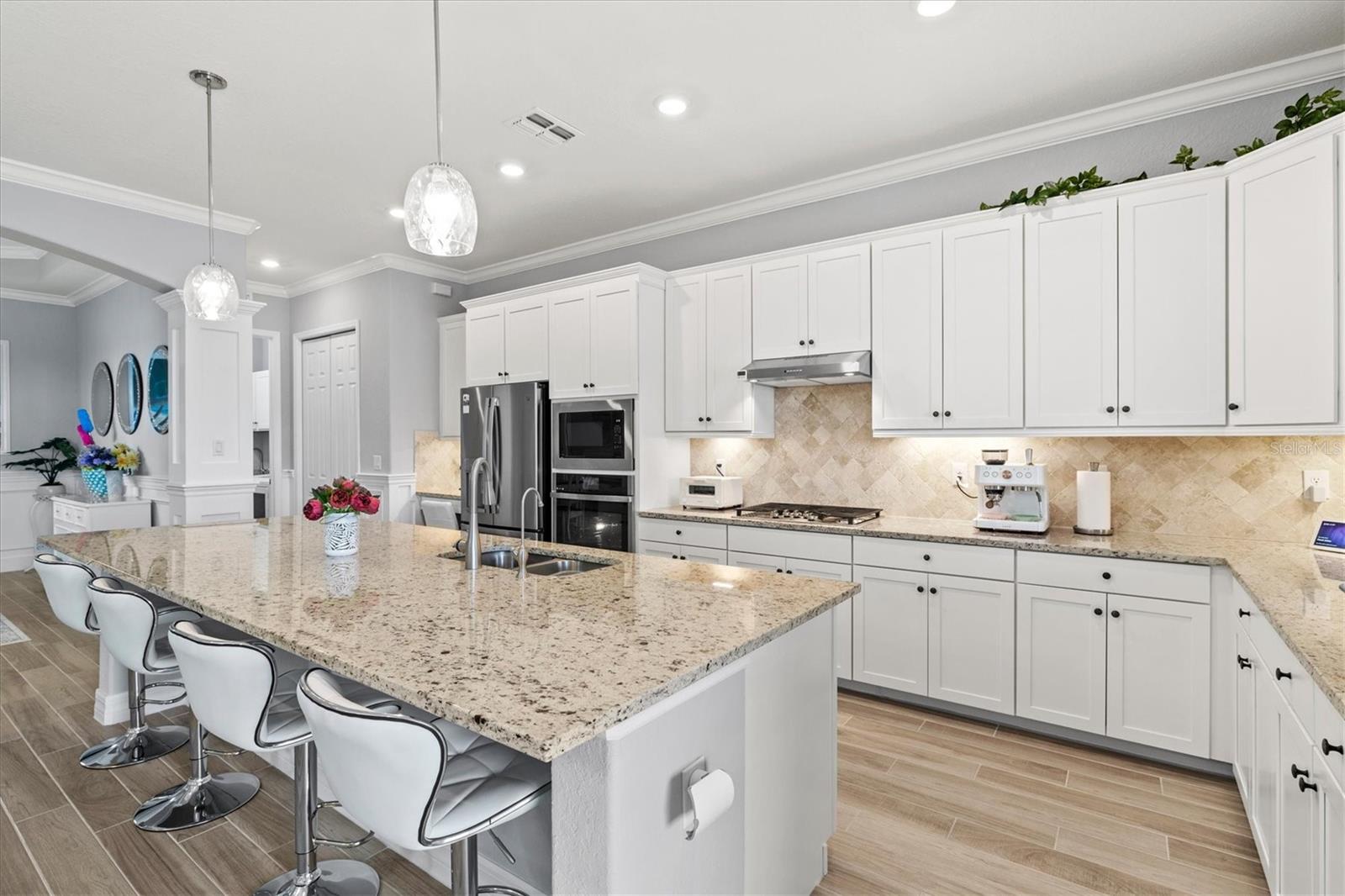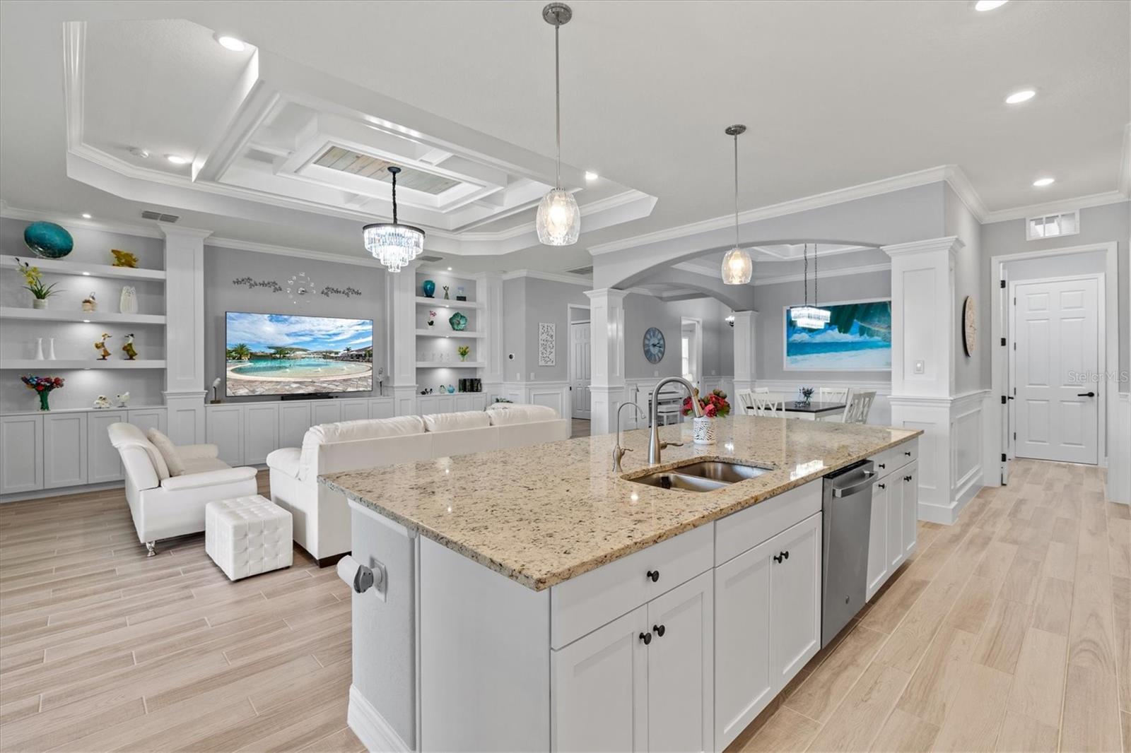New Price 6/10 EXECUTIVE RANCH HOME – Located in the prestigious Lakewood National Golf community, this home offers serene pond views and access to two championship golf courses (36 holes)................................................................................................................................................ EXPANSIVE LANAI – Extended patio with a picture-view cage screen, hot tub, and spacious recreation area — ideal for outdoor entertainment. The Outdoor Kitchen features a gas grill, powerful vent hood, and beverage fridge........................................................................................................................................................................................... GOURMET KITCHEN – Marble granite countertops, wood cabinetry, and top-tier GE appliances, including a gas cooktop, vent hood, stove, refrigerator, dishwasher, microwave, washer and dryer, Whole-house purification system + an in-sink drinking filter ................................................................................................................................................................................................... GRAND LIVING SPACES – A sprawling living room flows into an elegant dining hall adorned with ornamental pillars for a refined yet inviting ambiance.................................................................................................................................................................................... UPGRADES – Crown molding, wooden wall panels, custom LED-lit TV and deco shelves and cabinets, stylish fixtures................................ COMMUNITY HIGHLIGHTS__________________________________________________________________________________________ CHAMPIONSHIP GOLF – Two internationally recognized golf courses (36-hole) for enthusiasts................................................................ RESORT STYLE AMENITIES – Luxurious clubhouse, multiple heated pools (including a waterfall pool, lap pool, and 6 additional community pools), a state-of-the-art fitness center with sauna, spa services, locker rooms, plus tennis, pickle ball, and bocce courts............................. LIFESTYLE - Dining & Social Scene – Enjoy the poolside Tiki Bar or dine at the Clubhouse’s fine Italian restaurant, Landscaped sidewalks for a walkable lifestyle, plus gated entry with 24/7 security...................................................................................................................... HOA ($812/month) – Covers gated community security access, landscaping and irrigation, amenities (gym, locker rooms, all 7 pools), and – amazingly – Lifetime Golf Membership for the entire family........................................................................................................................................................................................... CONVENIENCES – Quick access to major highways (I-75, SR-70, SR-64), daily essentials, and top destinations like UTC Town Center, COSTCO, and stunning Florida beaches (St. Pete Beach, Sarasota Bayfront, Siesta Key, Anna Maria Beach, Venice Beach ................................................................................................................................................................................................... This isn’t just a home—it’s a luxury retreat combining convenience, nature, and vibrant community living !