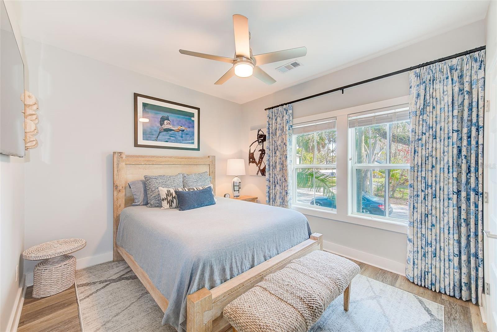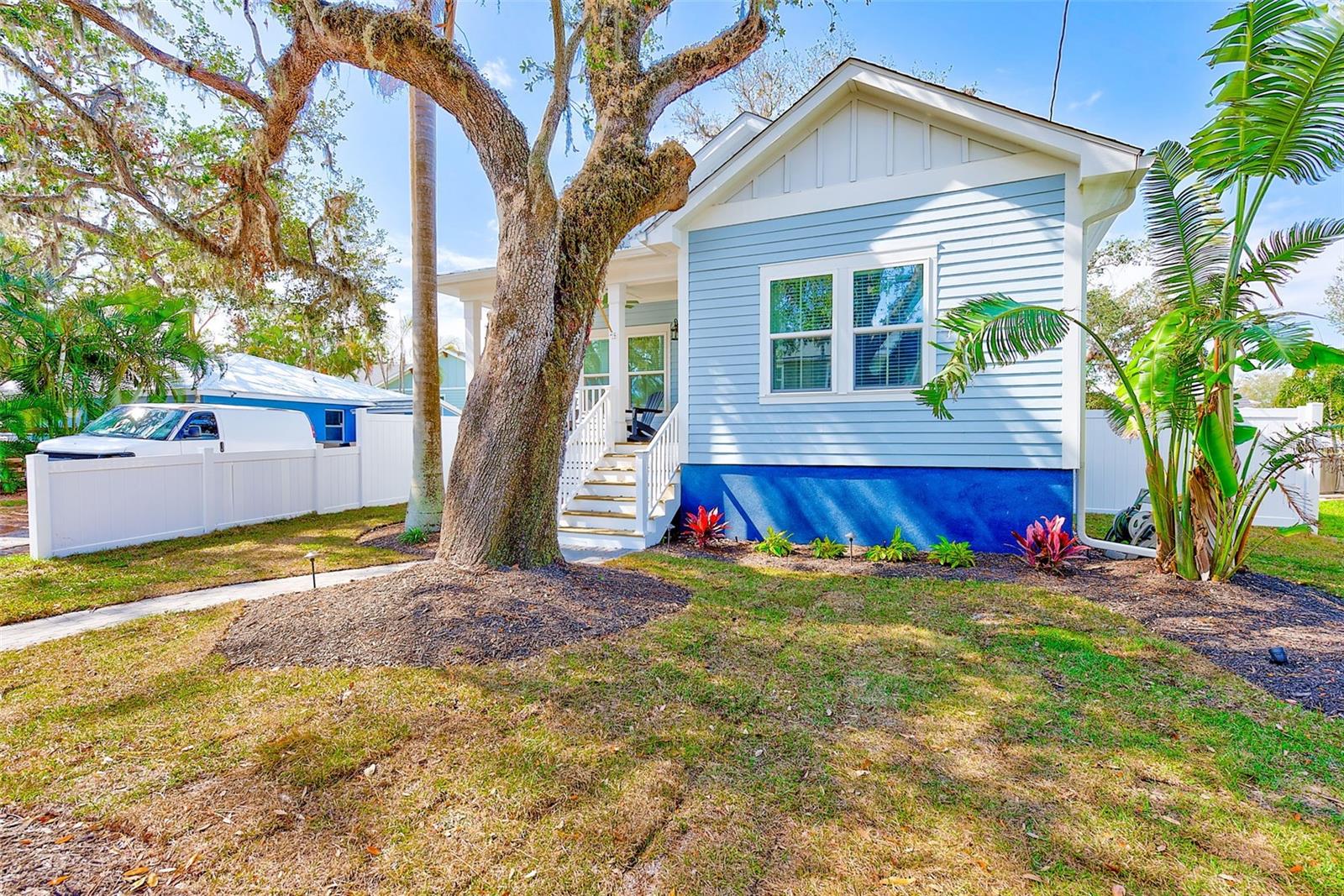 Step into a stunningly remodeled, FULLY FURNISHED, 3-bedroom, 2-bathroom smart home where cutting-edge luxury fuses with effortless convenience—your dream lifestyle awaits! Professionally landscaped with elegant lighting, this home boasts hurricane impact windows, plantation shutters, and a full vinyl fence for privacy and security. Inside, enjoy a fully integrated Sonos surround sound and stereo system, a state-of-the-art security system with cameras, and new, top-of-the-line appliances & washer and dryer. The beautifully remodeled bathrooms showcase high-end finishes, while the walk-in designer closets and spacious walk-in pantry provide ample storage. Luxury furnishings are included, making this home move-in ready. Additional upgrades include new gutters and drainage, a new shed, and a thoughtfully designed outdoor space. Every detail has been carefully curated to offer a perfect blend of sophistication, comfort, and security—a true must-see! Near-by waterfront bike trail leads right downtown in minutes!