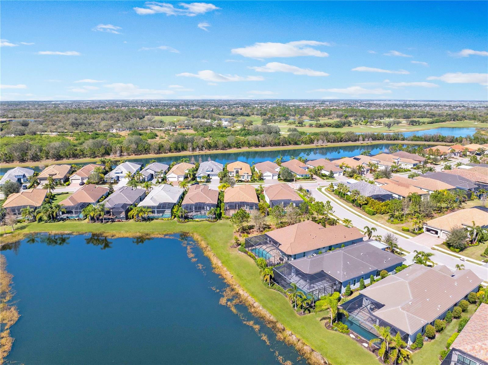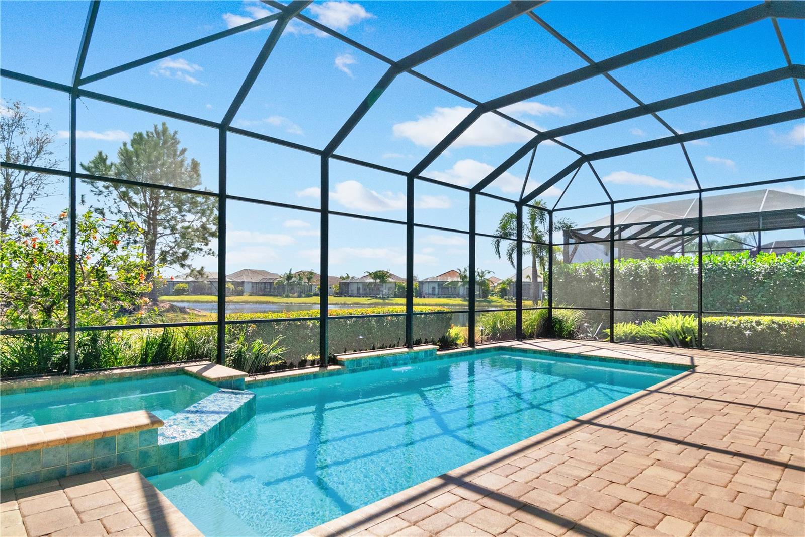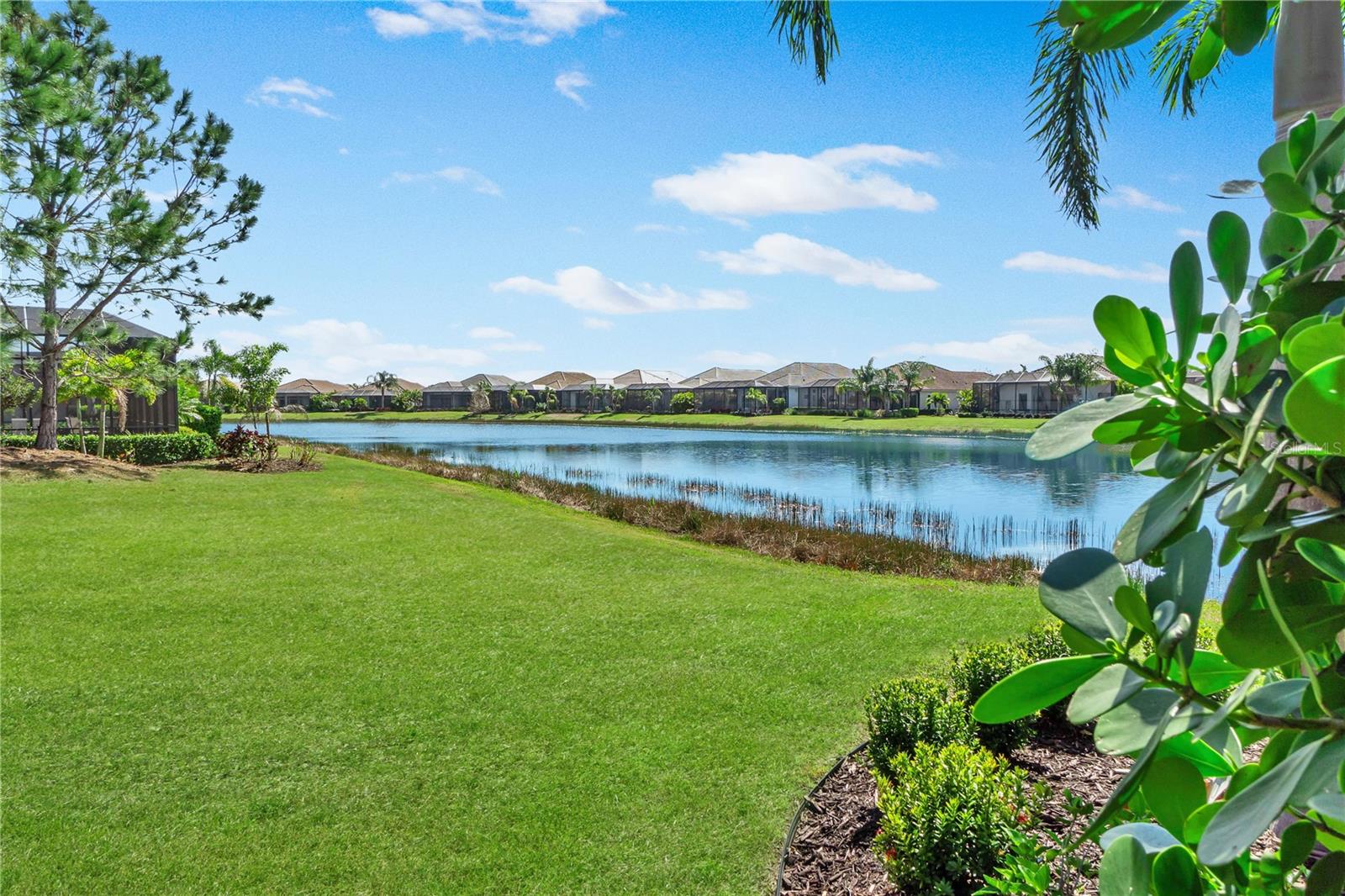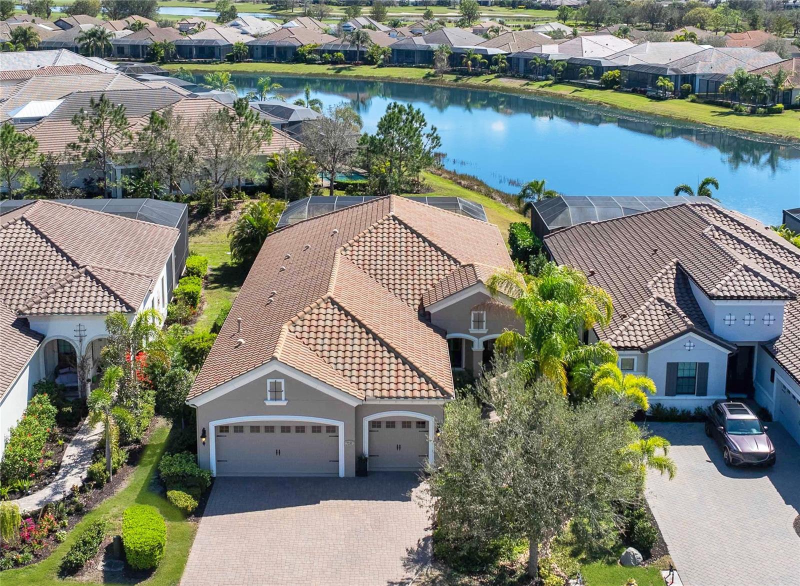 One or more photo(s) has been virtually staged. Experience luxury living at its finest in this stunning 3-bedroom, 3.5-bathroom Neal Signature home, perfectly situated in the highly sought-after neighborhood, Country Club East of Lakewood Ranch. As you enter the main foyer, you’re drawn in by the open, light-filled floor plan. Soaring 12 and 14 foot ceilings create an inviting and airy atmosphere that seamlessly connects to the OUTDOOR LIVING space via pocket sliders and transom windows, providing a clear sight line to the heated saltwater pool/spa and peaceful LAKE VIEW. The covered lanai provides shade year-round and is pre-plumbed for an outdoor kitchen, making it easy to dine alfresco or unwind with your favorite shows on the outdoor TV. The POOL BATH is a major plus! Accessible from the covered lanai, the pool bath adds a layer of convenience for Florida days spent pool-side. As the sun sets each evening, the outdoor landscape lighting illuminates the palms for a truly serene atmosphere. Now let’s step back inside, as this luxurious floorplan elevates at each turn. At the center of the home, the GOURMET KITCHEN and large island with seating and additional cabinet storage is ideal for daily meals, food prep, and social gatherings. Upgraded kitchen features include soft-close cabinetry, quartz countertops, stainless steel GE appliances, a five-burner gas cooktop, and a cabinet-faced vent hood that extends to the 12’ ceiling. There is certainly no shortage of STORAGE, with abundant cabinetry, a pantry closet, as well as an additional BUTLER’S PANTRY adjacent to the kitchen with a wine fridge and coffee bar. As you make your way to the PRIMARY SUITE, you’re immediately drawn to the many windows bringing in natural light through custom plantation shutters. The serene sitting area overlooks the pool and lake view out back. The primary’s en-suite bath features dual sinks, a walk-in shower, and is filled with natural light. Dual walk-in closets provide plentiful room for your clothing, shoes, luggage, and all the extras! Toward the front of the home are two private guest suites each include walk-in closets, an en-suite bath, and ample space for furnishings as well as storage. And for those in need of a work-from-home space… the DEN with wood flooring and pocket doors is ideal for a home office, reading nook, or hobby room. The separate laundry room allows for extra storage with upper & lower cabinets, a laundry sink, and front-loading GE washer and dryer. The 3-car garage is the perfect place to store your ride(s), golf cart(s), or even to be used for extra storage space. Are there any UPGRADES that you may not ‘see’ but certainly benefit from? Yes! This home also features a reverse osmosis water filter and a whole-house water softener. Located in the gated, maintenance-free community of Country Club East, residents enjoy resort-style amenities, including three pools, a fitness center, clubhouse, dog park, and miles of scenic walking and biking trails. Membership to the Lakewood Ranch Golf & Country Club is optional. Enjoy nearby championship golf courses, fine dining at Lakewood Ranch Main St, shopping at Waterside Place, and world-class beaches along the Gulf Coast. Sarasota International Airport is just a short ride away, making travel effortless. See why Lakewood Ranch is the nation’s top-selling Multi-gen Community. If you’re looking for luxury, convenience, and the best of Florida living, this home is a must-see!