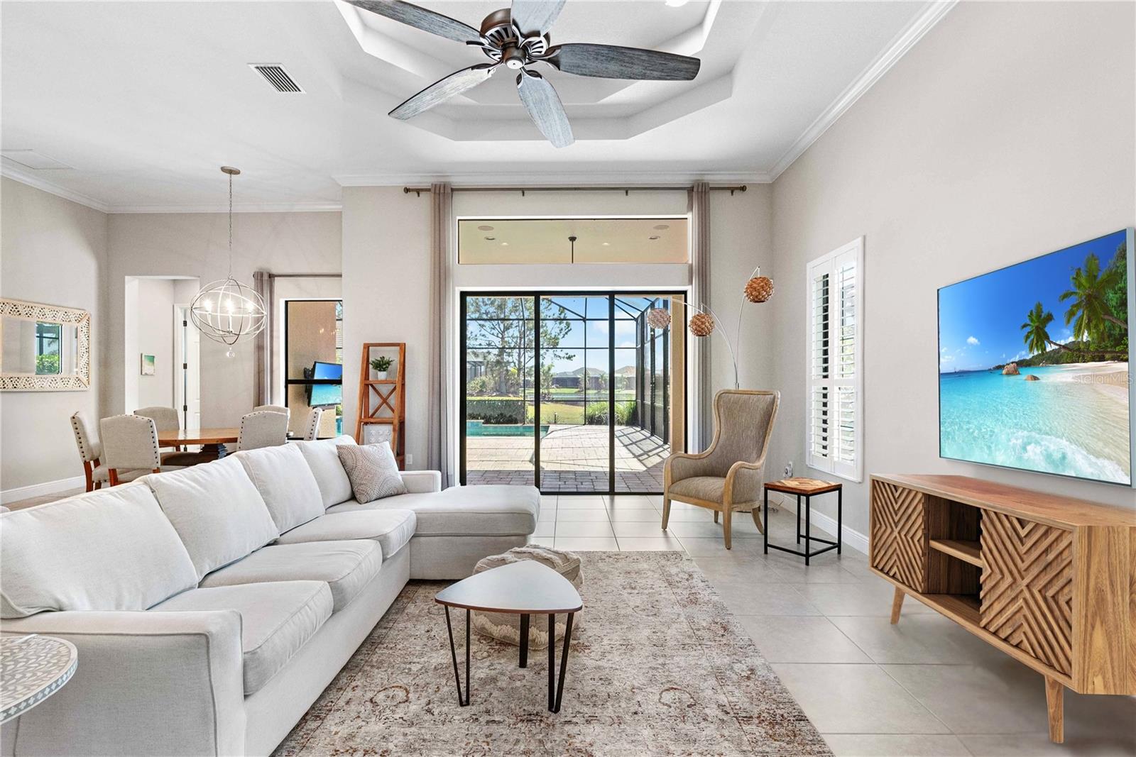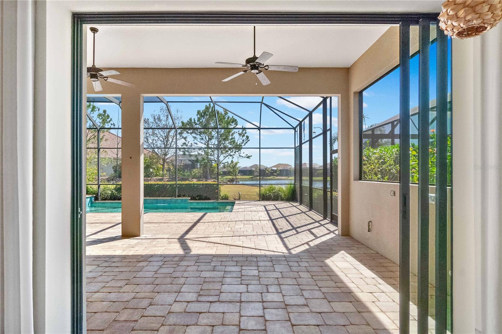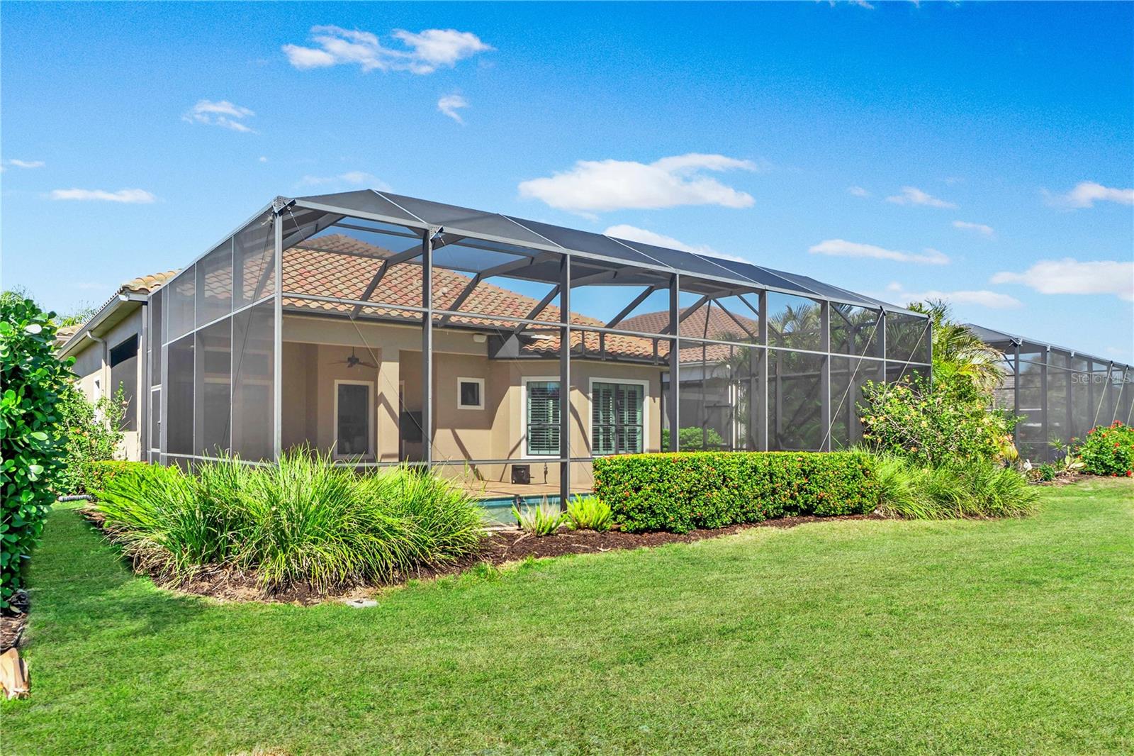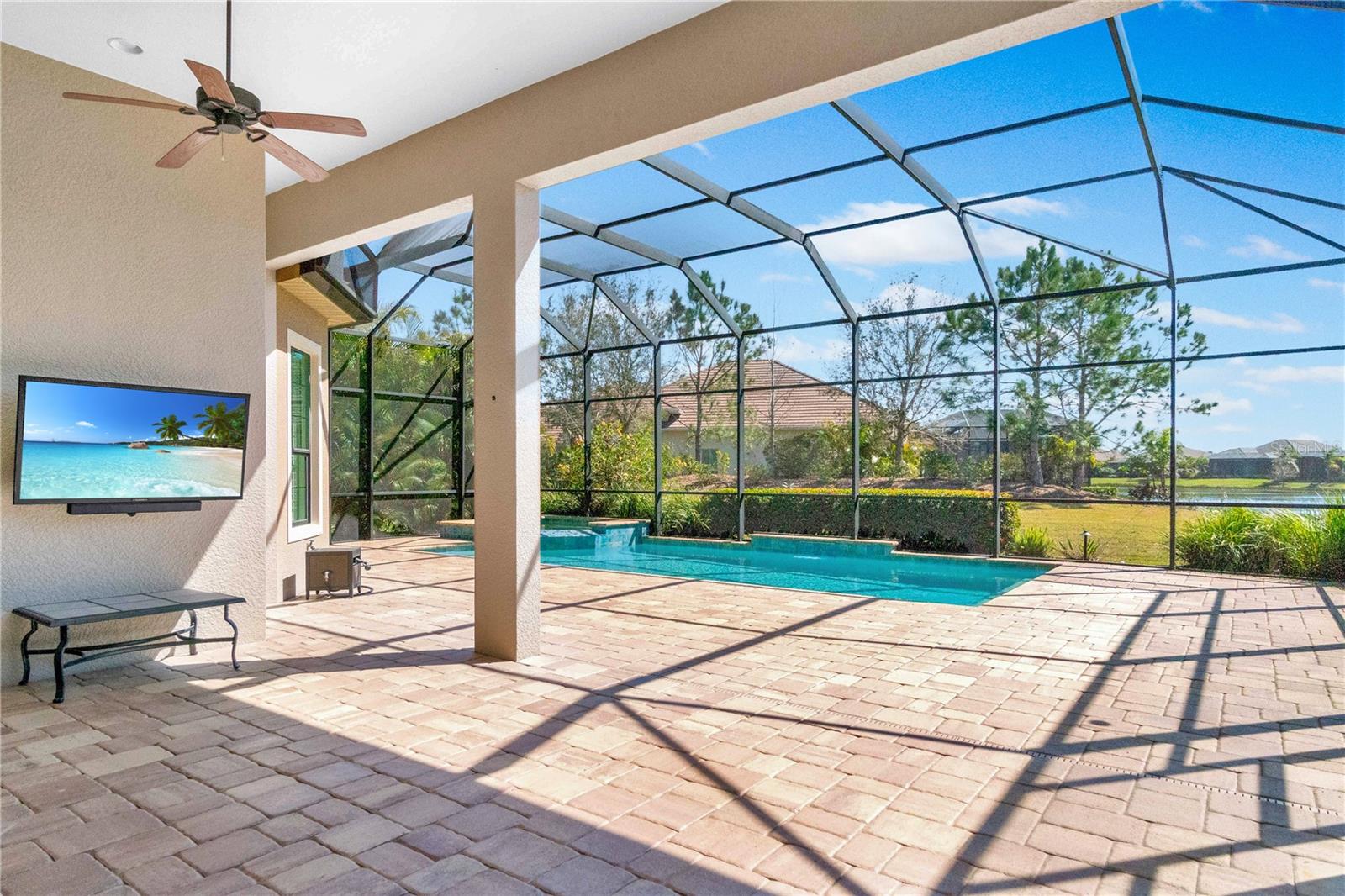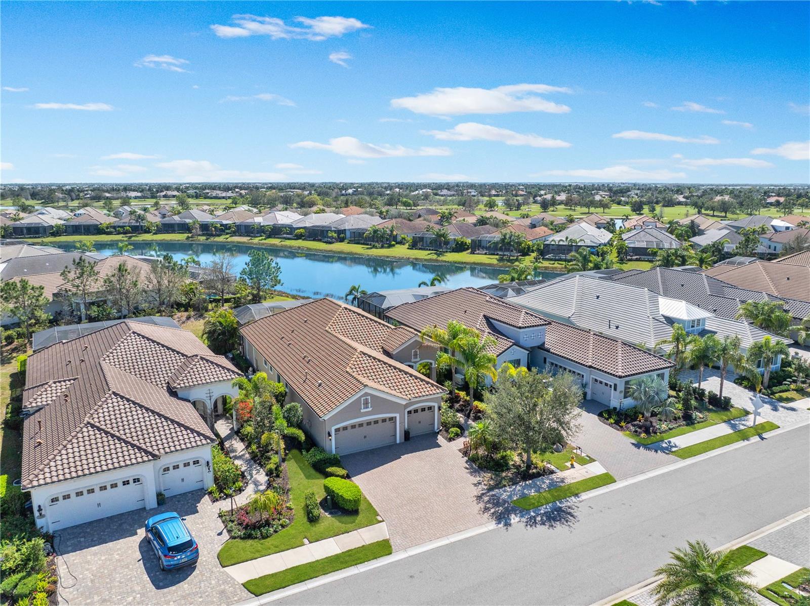 One or more photo(s) has been virtually staged. Experience luxury living at its finest in this stunning 3-bedroom, 3.5-bathroom Neal Signature home, perfectly situated in the highly sought-after neighborhood, Country Club East of Lakewood Ranch. As you enter the main foyer, you’re drawn in by the open, light-filled floor plan. Soaring 12 and 14 foot ceilings create an inviting and airy atmosphere that seamlessly connects to the OUTDOOR LIVING space via pocket sliders and transom windows, providing a clear sight line to the heated saltwater pool/spa and peaceful LAKE VIEW. The covered lanai provides shade year-round and is pre-plumbed for an outdoor kitchen, making it easy to dine alfresco or unwind with your favorite shows on the outdoor TV. The POOL BATH is a major plus! Accessible from the covered lanai, the pool bath adds a layer of convenience for Florida days spent pool-side. As the sun sets each evening, the outdoor landscape lighting illuminates the palms for a truly serene atmosphere. Now let’s step back inside, as this luxurious floorplan elevates at each turn. At the center of the home, the GOURMET KITCHEN and large island with seating and additional cabinet storage is ideal for daily meals, food prep, and social gatherings. Upgraded kitchen features include soft-close cabinetry, quartz countertops, stainless steel GE appliances, a five-burner gas cooktop, and a cabinet-faced vent hood that extends to the 12’ ceiling. There is certainly no shortage of STORAGE, with abundant cabinetry, a pantry closet, as well as an additional BUTLER’S PANTRY adjacent to the kitchen with a wine fridge and coffee bar. As you make your way to the PRIMARY SUITE, you’re immediately drawn to the many windows bringing in natural light through custom plantation shutters. The serene sitting area overlooks the pool and lake view out back. The primary’s en-suite bath features dual sinks, a walk-in shower, and is filled with natural light. Dual walk-in closets provide plentiful room for your clothing, shoes, luggage, and all the extras! Toward the front of the home are two private guest suites each include walk-in closets, an en-suite bath, and ample space for furnishings as well as storage. And for those in need of a work-from-home space… the DEN with wood flooring and pocket doors is ideal for a home office, reading nook, or hobby room. The separate laundry room allows for extra storage with upper & lower cabinets, a laundry sink, and front-loading GE washer and dryer. The 3-car garage is the perfect place to store your ride(s), golf cart(s), or even to be used for extra storage space. Are there any UPGRADES that you may not ‘see’ but certainly benefit from? Yes! This home also features a reverse osmosis water filter and a whole-house water softener. Located in the gated, maintenance-free community of Country Club East, residents enjoy resort-style amenities, including three pools, a fitness center, clubhouse, dog park, and miles of scenic walking and biking trails. Membership to the Lakewood Ranch Golf & Country Club is optional. Enjoy nearby championship golf courses, fine dining at Lakewood Ranch Main St, shopping at Waterside Place, and world-class beaches along the Gulf Coast. Sarasota International Airport is just a short ride away, making travel effortless. See why Lakewood Ranch is the nation’s top-selling Multi-gen Community. If you’re looking for luxury, convenience, and the best of Florida living, this home is a must-see!