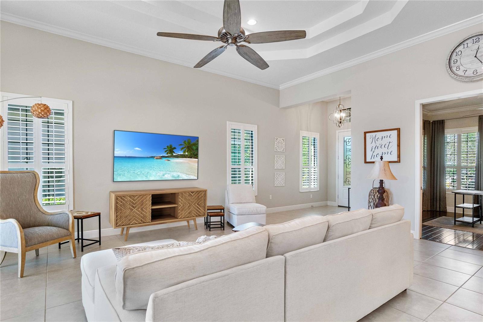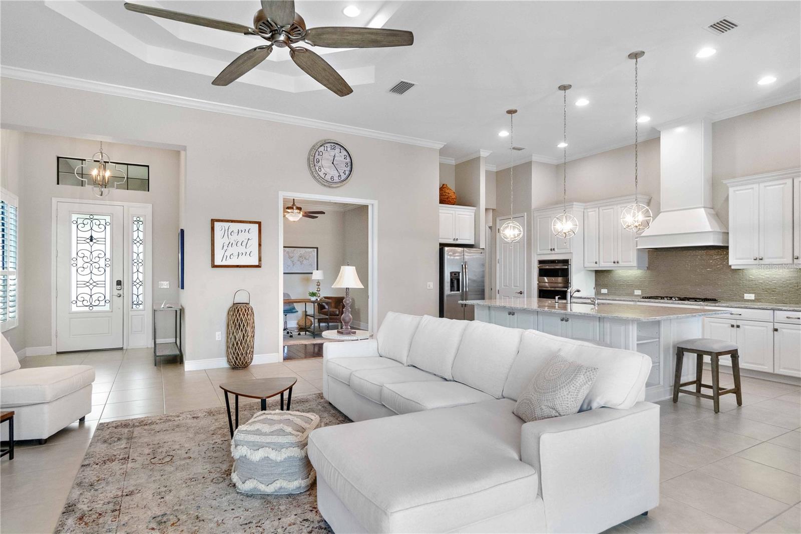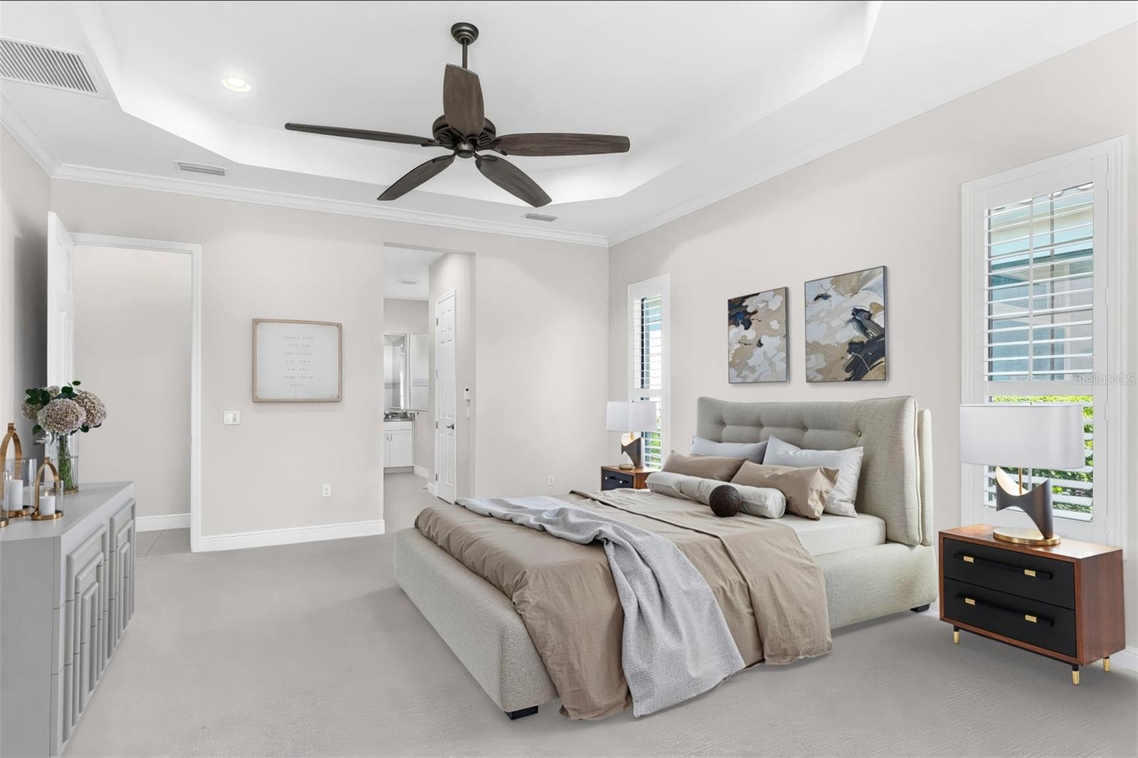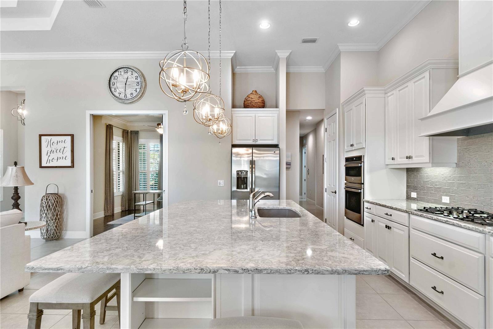 One or more photo(s) has been virtually staged. Experience luxury living at its finest in this stunning 3-bedroom, 3.5-bathroom Neal Signature home, perfectly situated in the highly sought-after neighborhood, Country Club East of Lakewood Ranch. As you enter the main foyer, you’re drawn in by the open, light-filled floor plan. Soaring 12 and 14 foot ceilings create an inviting and airy atmosphere that seamlessly connects to the OUTDOOR LIVING space via pocket sliders and transom windows, providing a clear sight line to the heated saltwater pool/spa and peaceful LAKE VIEW. The covered lanai provides shade year-round and is pre-plumbed for an outdoor kitchen, making it easy to dine alfresco or unwind with your favorite shows on the outdoor TV. The POOL BATH is a major plus! Accessible from the covered lanai, the pool bath adds a layer of convenience for Florida days spent pool-side. As the sun sets each evening, the outdoor landscape lighting illuminates the palms for a truly serene atmosphere. Now let’s step back inside, as this luxurious floorplan elevates at each turn. At the center of the home, the GOURMET KITCHEN and large island with seating and additional cabinet storage is ideal for daily meals, food prep, and social gatherings. Upgraded kitchen features include soft-close cabinetry, quartz countertops, stainless steel GE appliances, a five-burner gas cooktop, and a cabinet-faced vent hood that extends to the 12’ ceiling. There is certainly no shortage of STORAGE, with abundant cabinetry, a pantry closet, as well as an additional BUTLER’S PANTRY adjacent to the kitchen with a wine fridge and coffee bar. As you make your way to the PRIMARY SUITE, you’re immediately drawn to the many windows bringing in natural light through custom plantation shutters. The serene sitting area overlooks the pool and lake view out back. The primary’s en-suite bath features dual sinks, a walk-in shower, and is filled with natural light. Dual walk-in closets provide plentiful room for your clothing, shoes, luggage, and all the extras! Toward the front of the home are two private guest suites each include walk-in closets, an en-suite bath, and ample space for furnishings as well as storage. And for those in need of a work-from-home space… the DEN with wood flooring and pocket doors is ideal for a home office, reading nook, or hobby room. The separate laundry room allows for extra storage with upper & lower cabinets, a laundry sink, and front-loading GE washer and dryer. The 3-car garage is the perfect place to store your ride(s), golf cart(s), or even to be used for extra storage space. Are there any UPGRADES that you may not ‘see’ but certainly benefit from? Yes! This home also features a reverse osmosis water filter and a whole-house water softener. Located in the gated, maintenance-free community of Country Club East, residents enjoy resort-style amenities, including three pools, a fitness center, clubhouse, dog park, and miles of scenic walking and biking trails. Membership to the Lakewood Ranch Golf & Country Club is optional. Enjoy nearby championship golf courses, fine dining at Lakewood Ranch Main St, shopping at Waterside Place, and world-class beaches along the Gulf Coast. Sarasota International Airport is just a short ride away, making travel effortless. See why Lakewood Ranch is the nation’s top-selling Multi-gen Community. If you’re looking for luxury, convenience, and the best of Florida living, this home is a must-see!